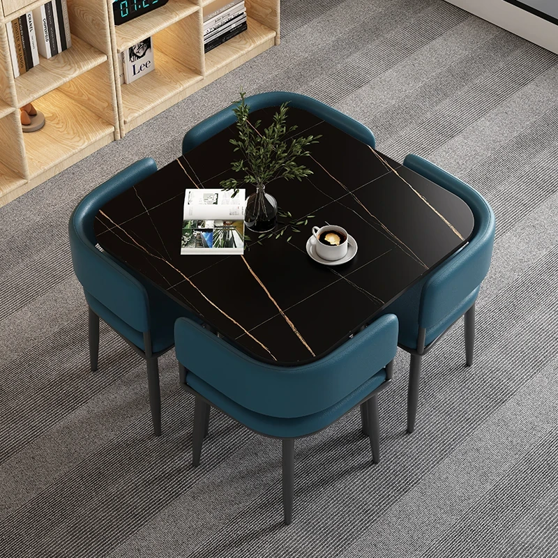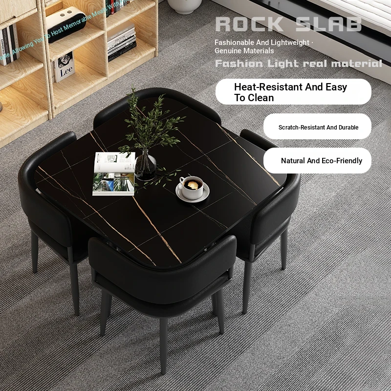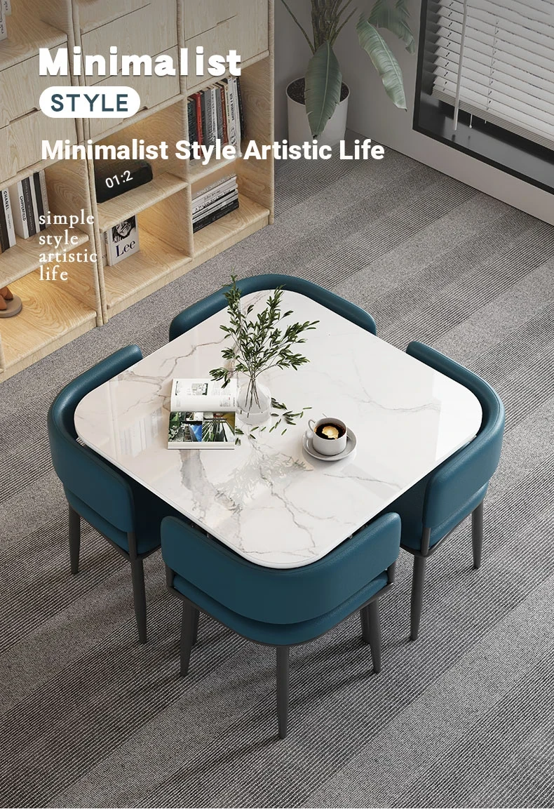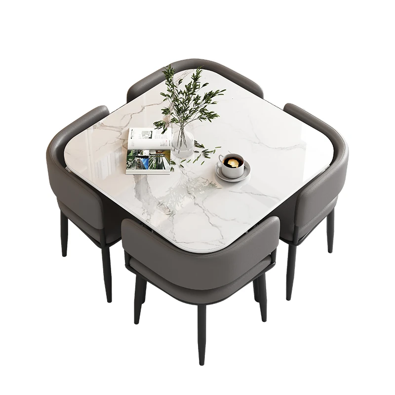Modern Compact Dining Table for Small Spaces - Stylish Square Ceramic Table Set for Home, Cafés, and Office Meetings, Perfect for Casual Dining and Client Discussions