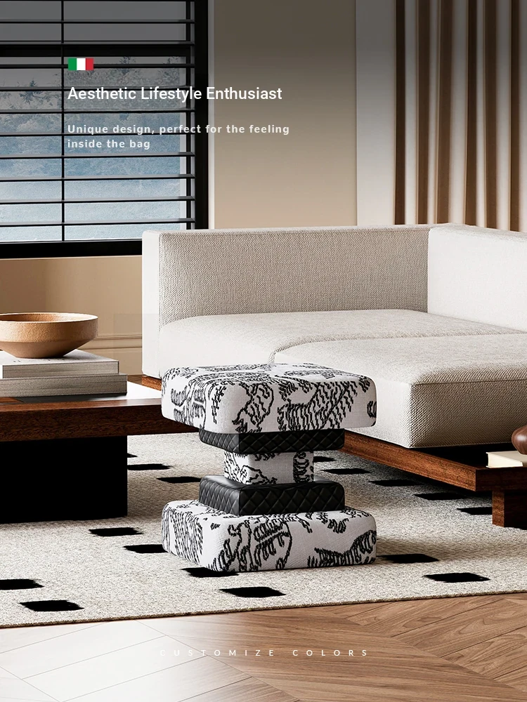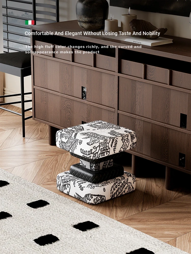 Modern Minimalist Small Home Velvet Stool - Unique Solid Wood Dressing Square Stool for Hotels, Cafes, and Entryway Shoe Changing Seat