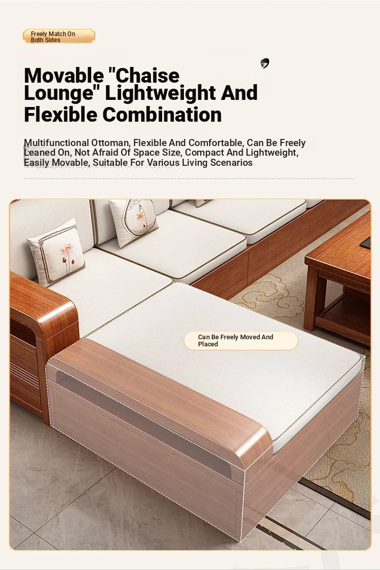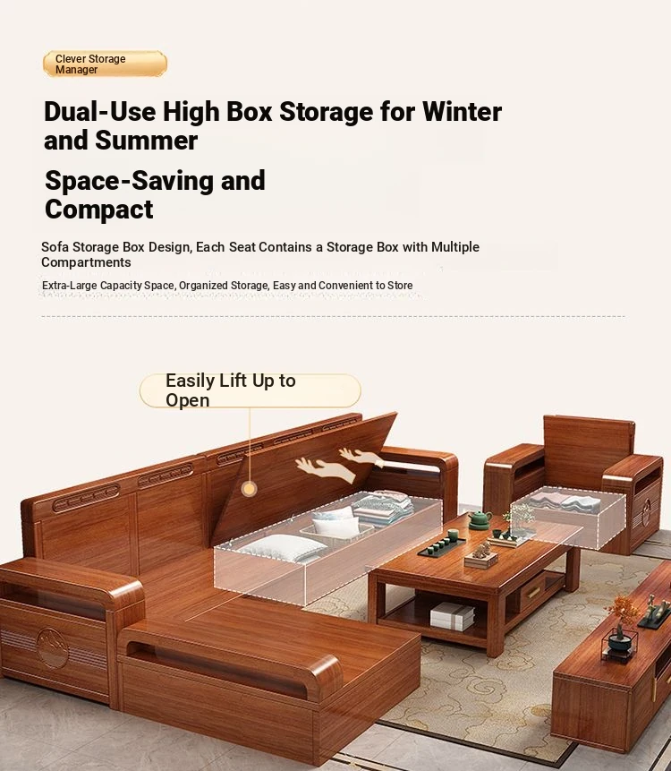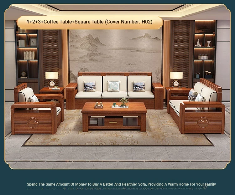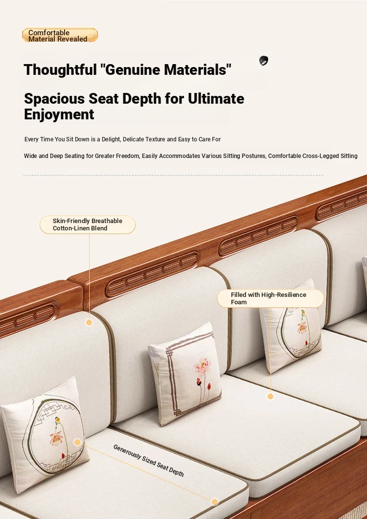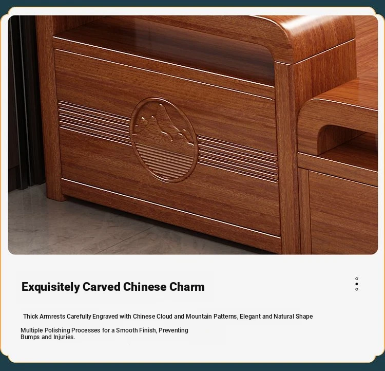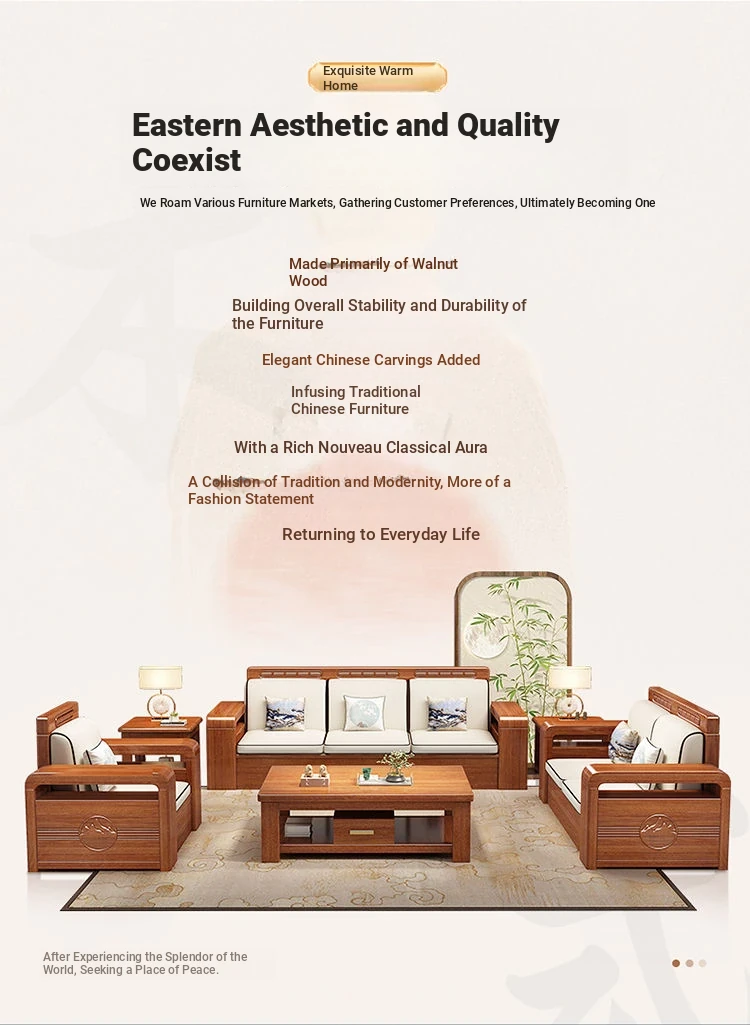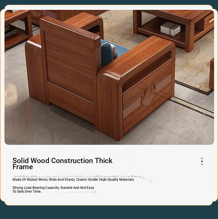 Modern Walnut Solid Wood Sofa Set - Versatile Design for Small Spaces, Suitable for All Seasons, with Elegant Chinese Carvings - Affordable Furniture for Your Living Room