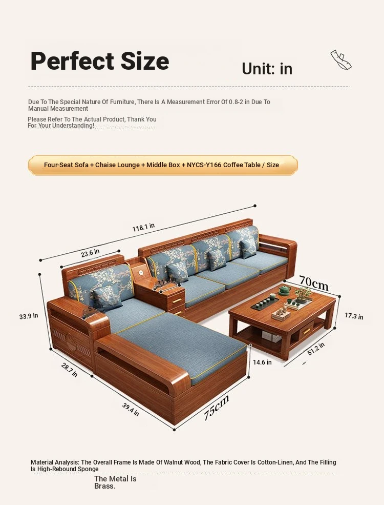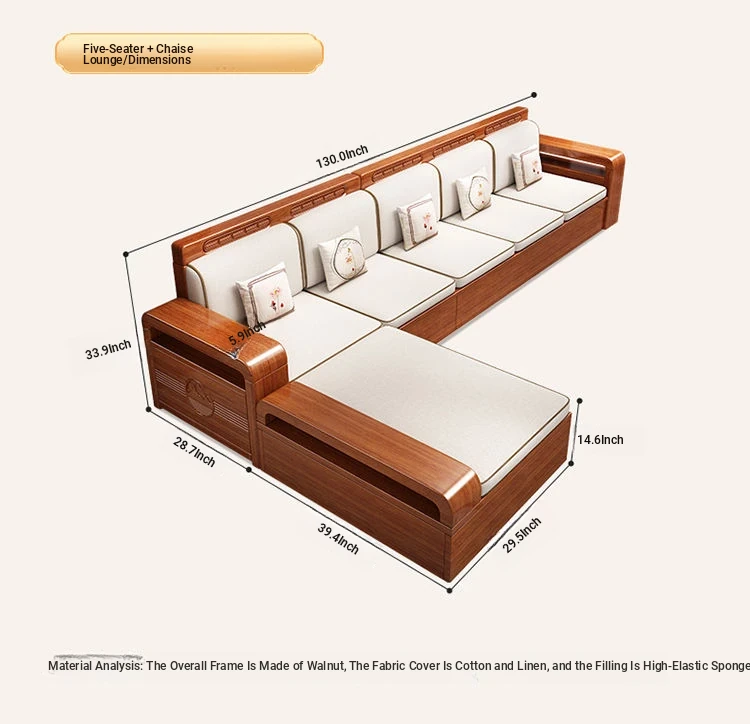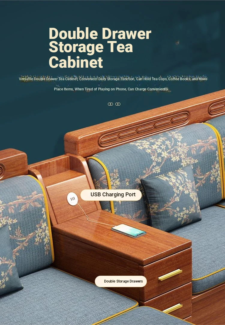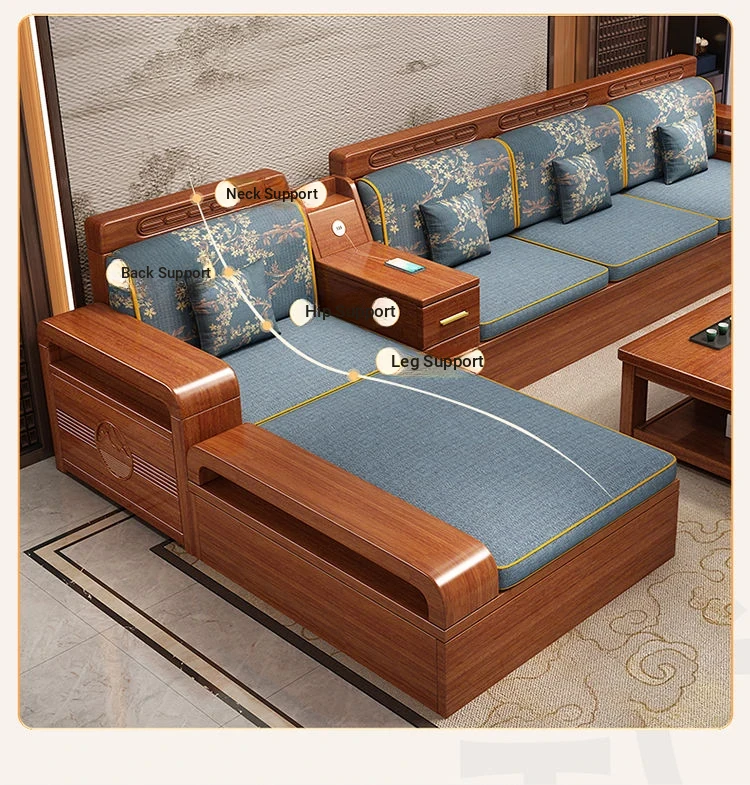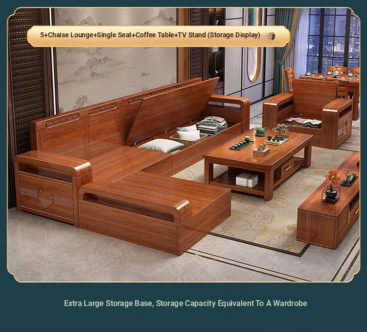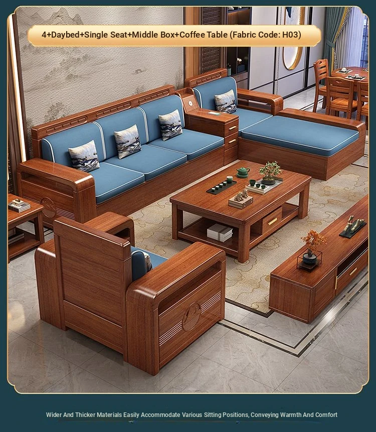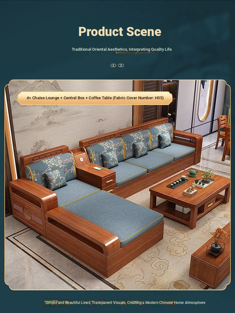 Modern Walnut Solid Wood Sofa Set - Versatile Design for Small Spaces, Suitable for All Seasons, with Elegant Chinese Carvings - Affordable Furniture for Your Living Room
