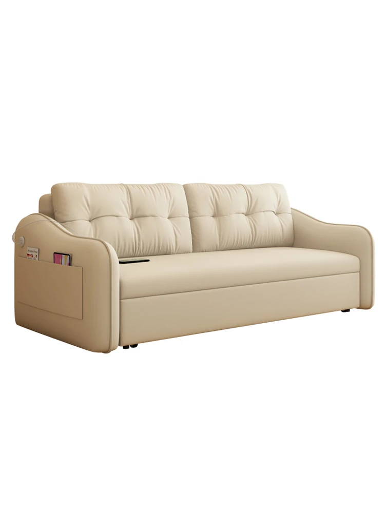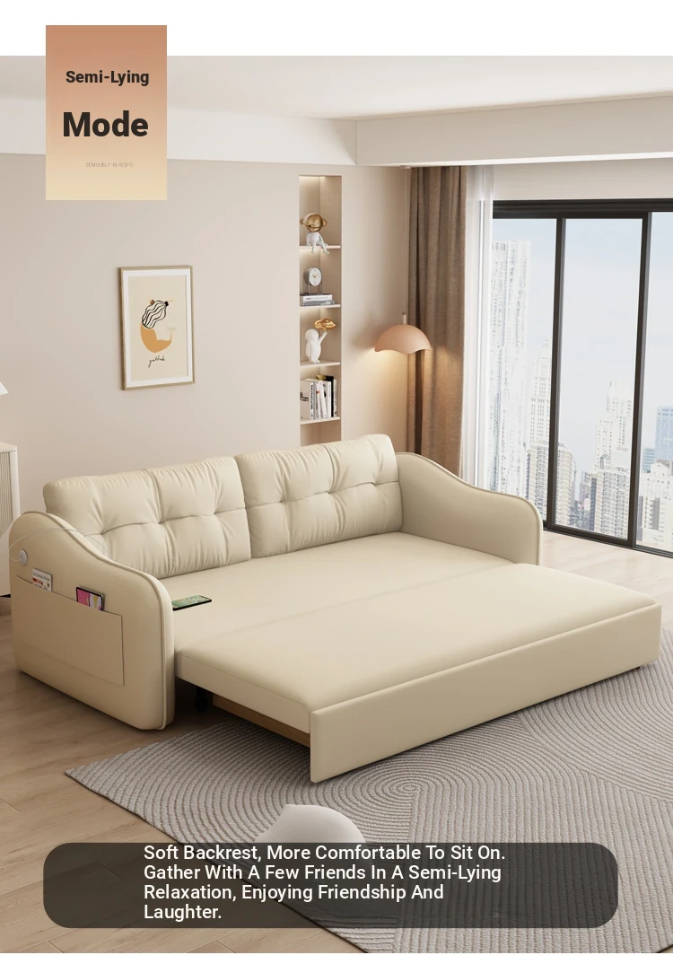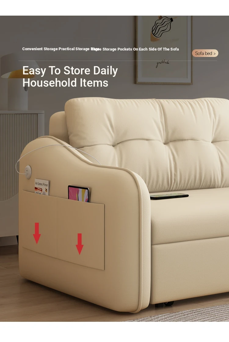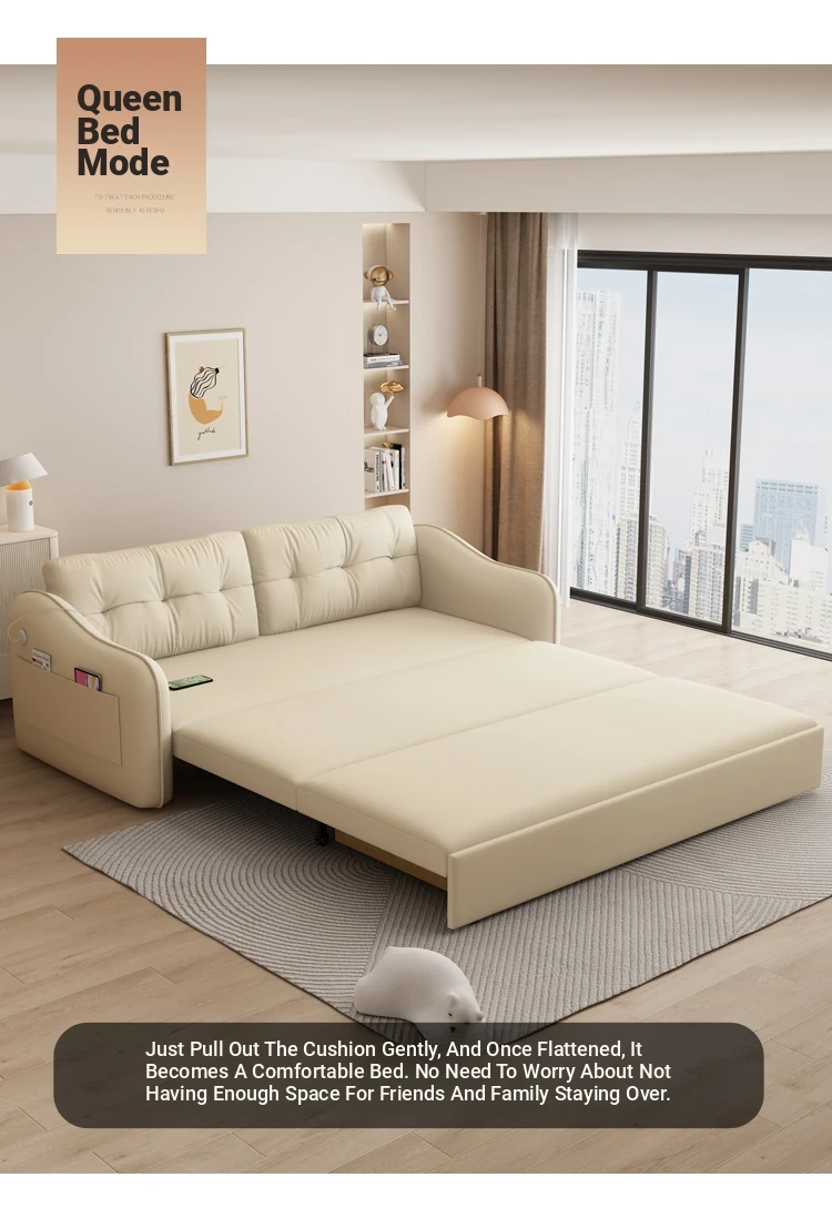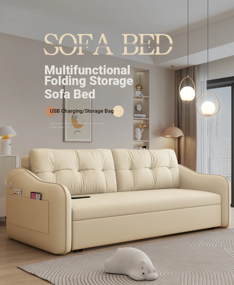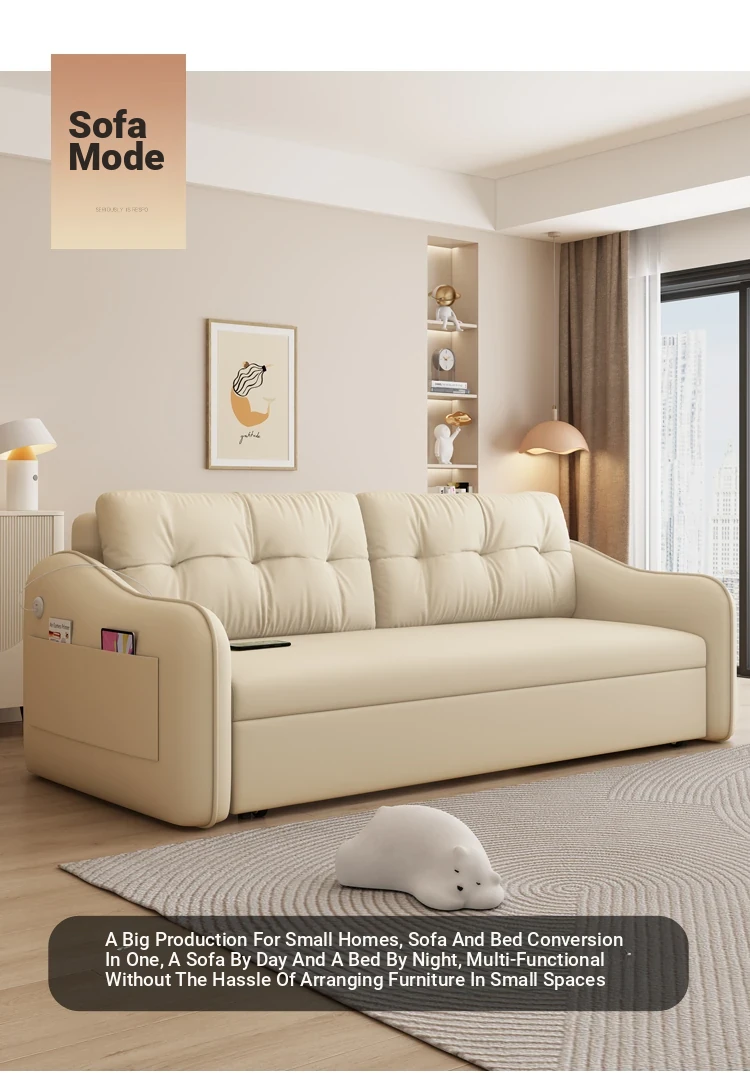 Nordic French Cream Fabric Sofa Bed - Stylish and Space-Saving Foldable Design for Small Apartments, Trendy Double Sofa for Modern Living Spaces