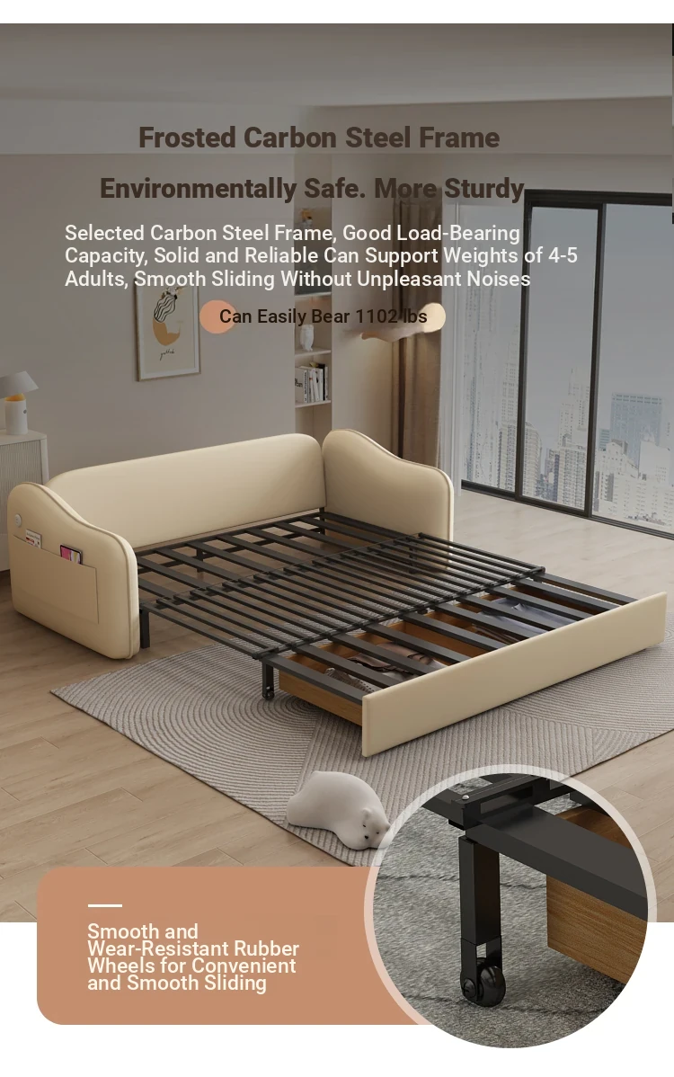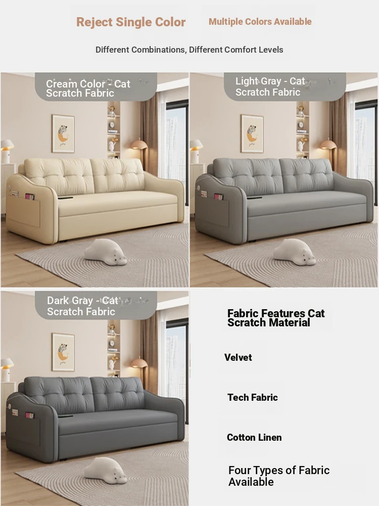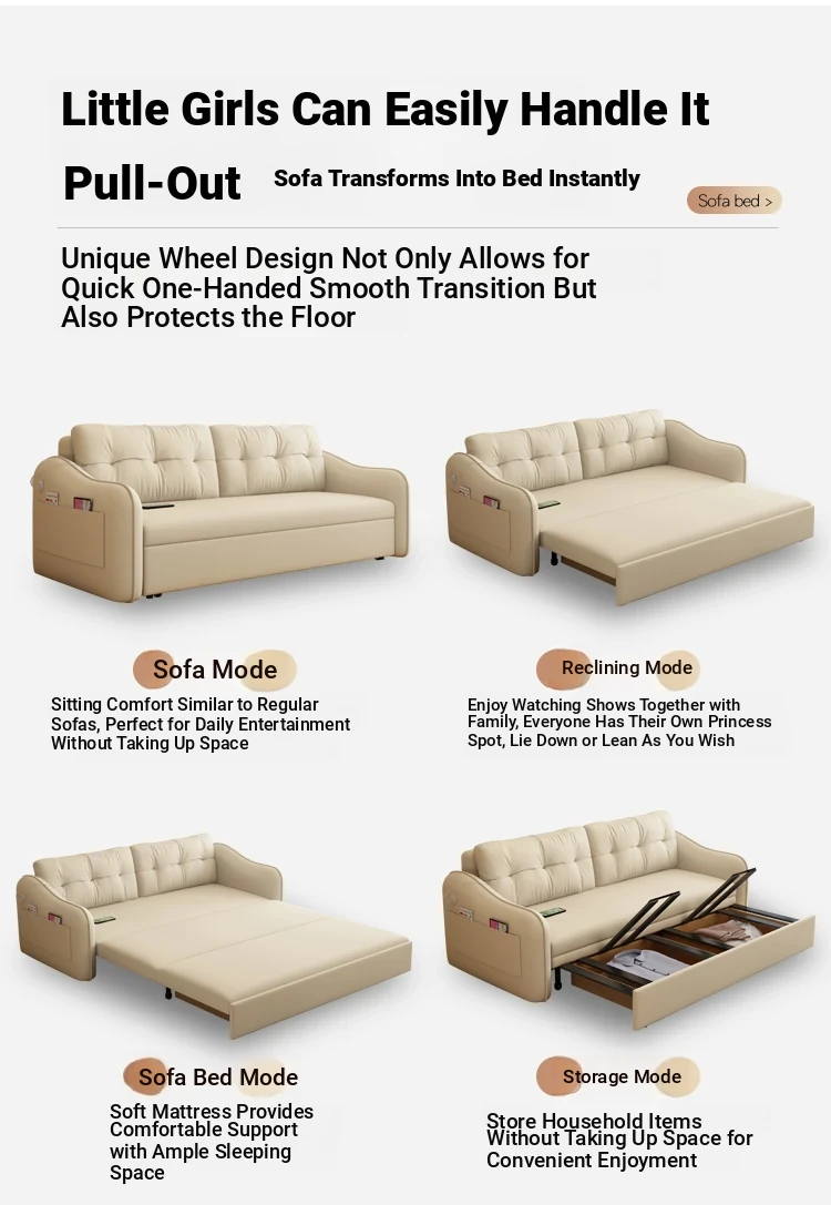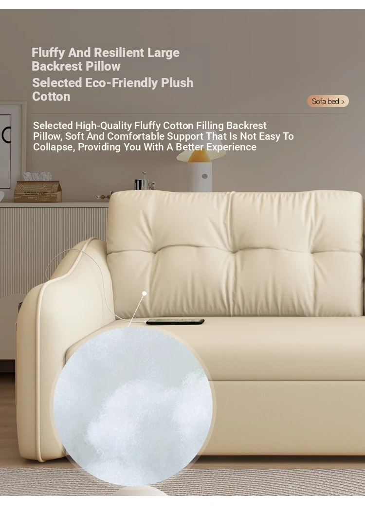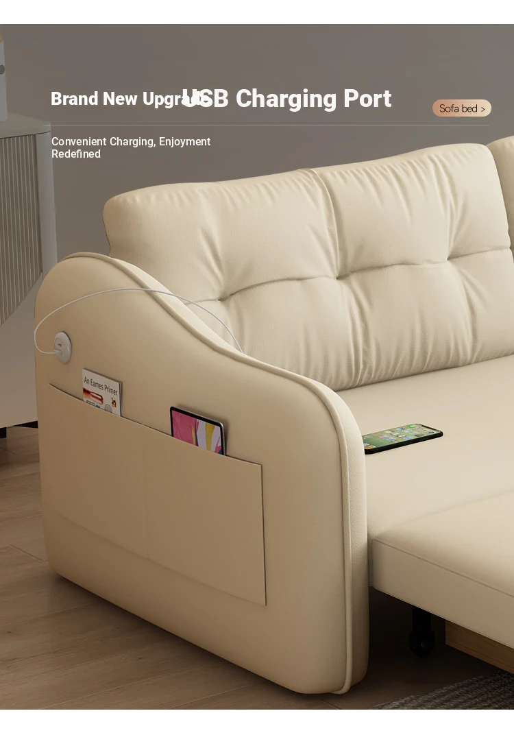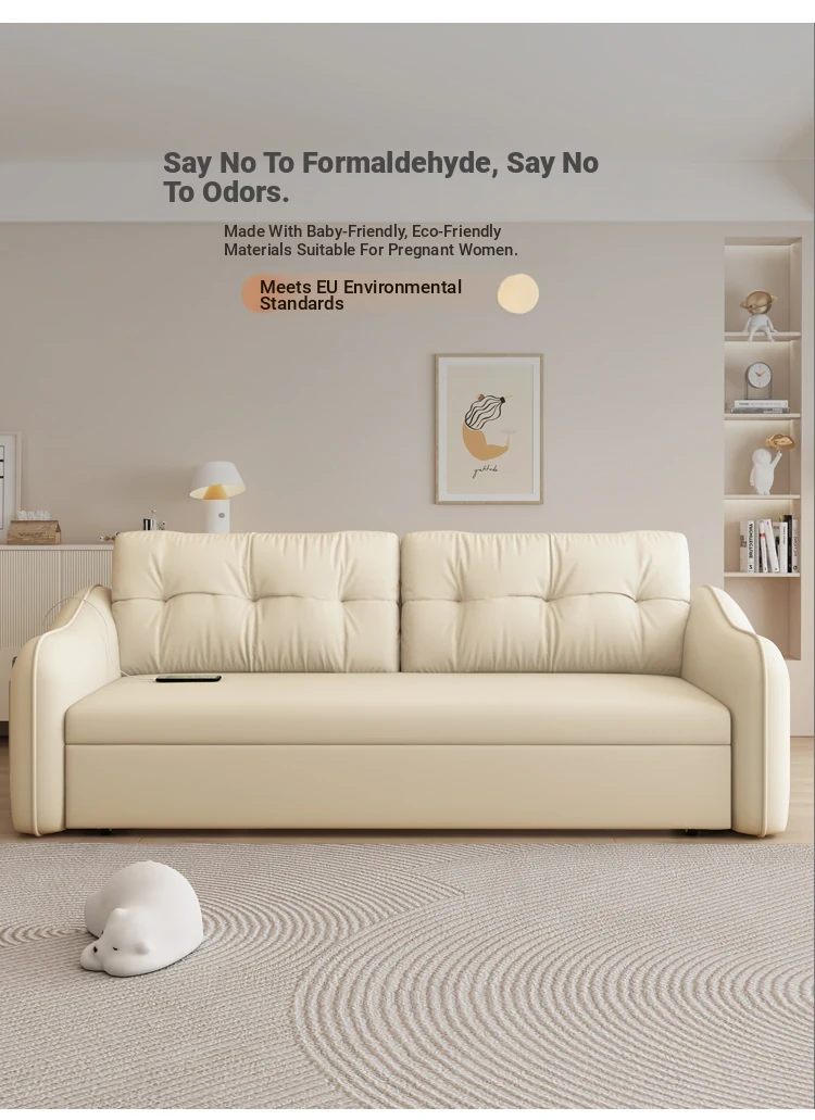 Nordic French Cream Fabric Sofa Bed - Stylish and Space-Saving Foldable Design for Small Apartments, Trendy Double Sofa for Modern Living Spaces
