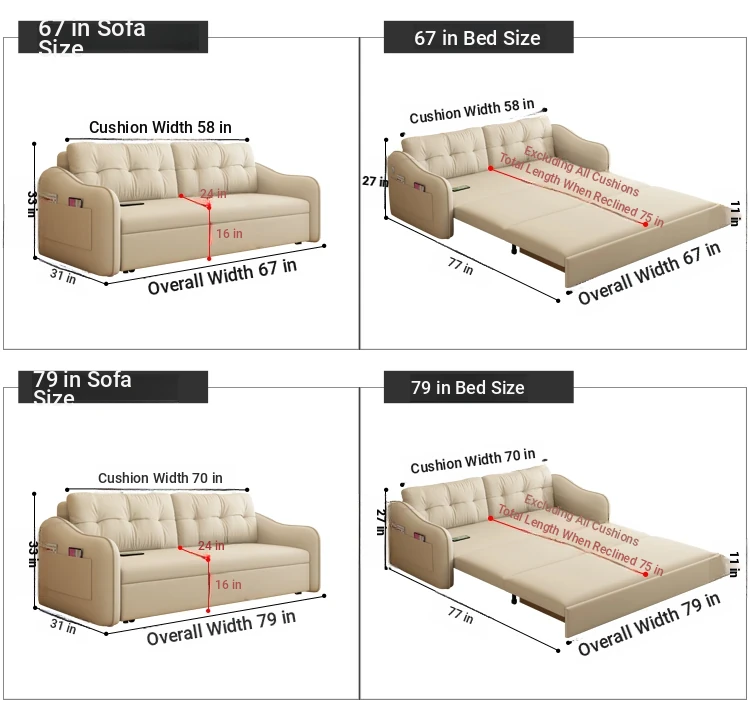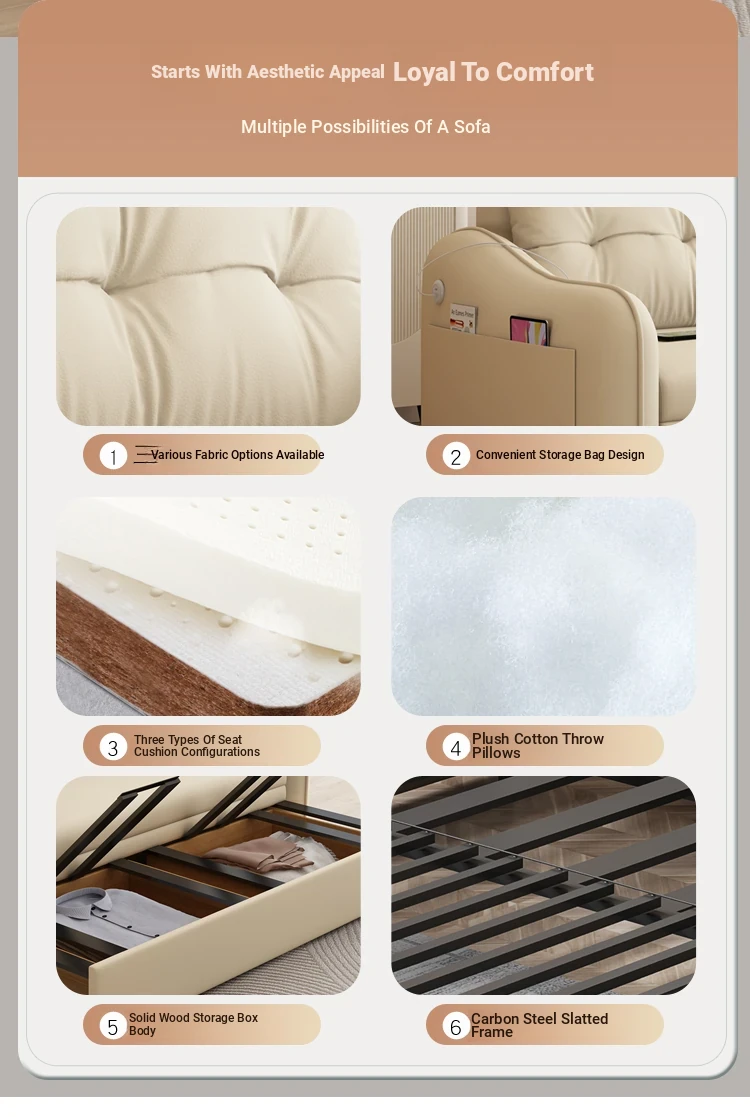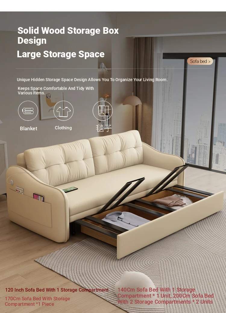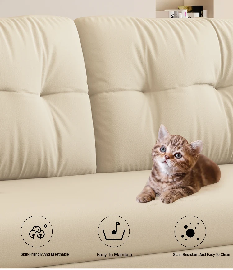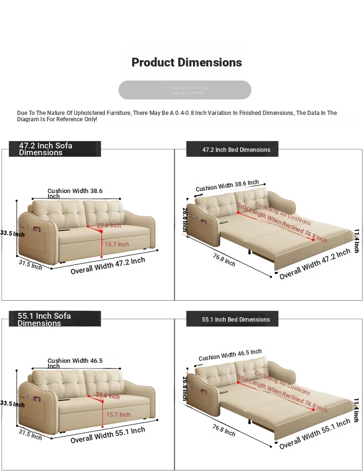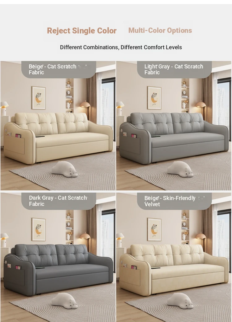 Nordic French Cream Fabric Sofa Bed - Stylish and Space-Saving Foldable Design for Small Apartments, Trendy Double Sofa for Modern Living Spaces