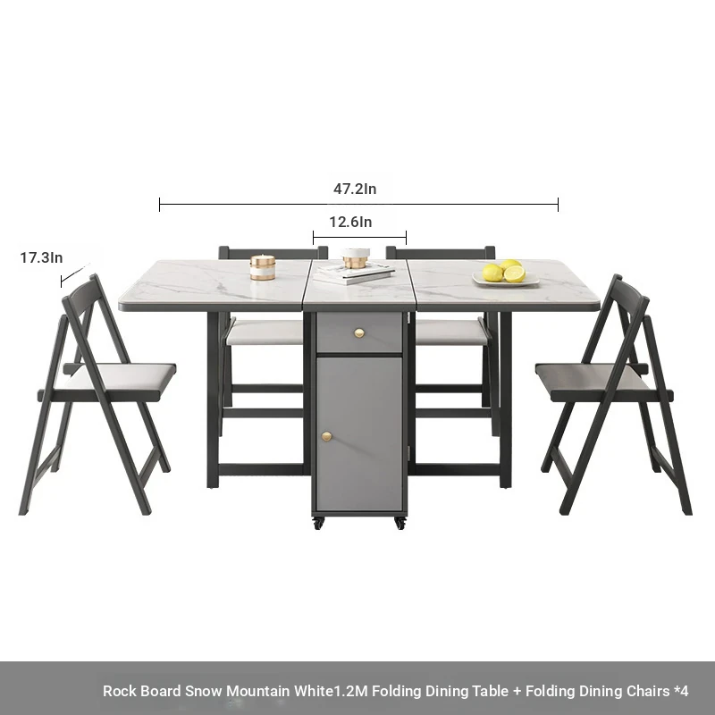 Import rock plate Foldable dining table 47.24 in + solid wood dining chair * 4 (snow mountain stone)