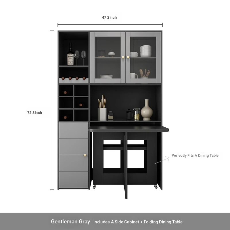 Foldable dining table 47.24 in + leather chair * 6 (gentleman Gray)