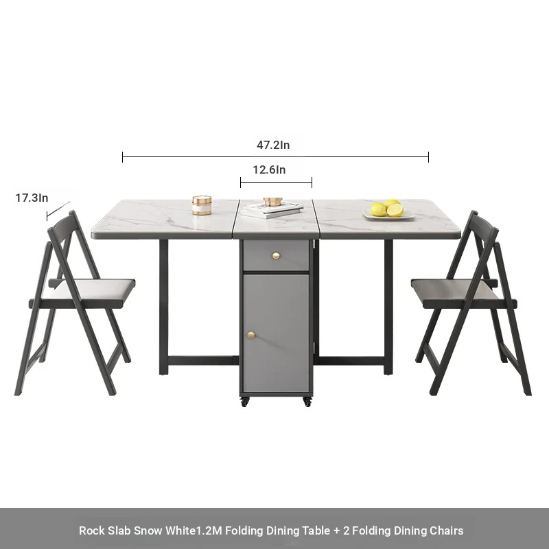 Import rock plate Foldable dining table 47.24 in + solid wood dining chair * 2 (snow mountain stone)