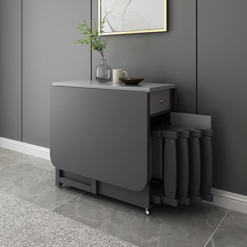 Foldable dining table 47.24 in + leather chair * 4 (gentleman Gray)