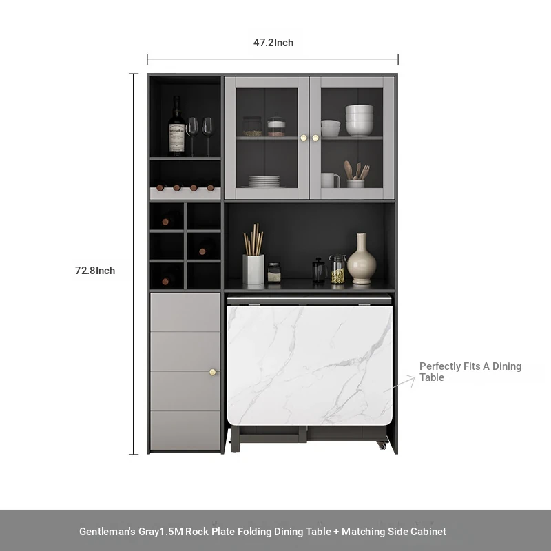 Import rock plate Foldable dining table 47.24 in (snow mountain stone) + matching sideboard