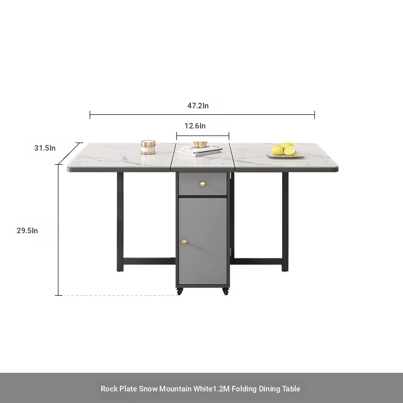 Import Rock Slab Foldable Dining Table 47.24 in (Snow Mountain Stone)