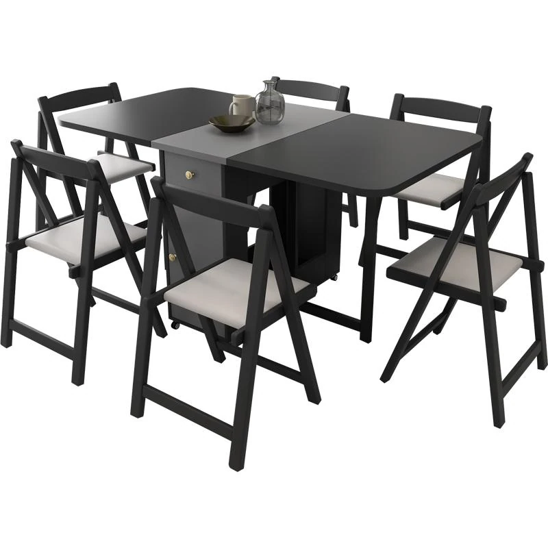 Foldable dining table 59.06 in + solid wood chair * 6 (optional in two colors)