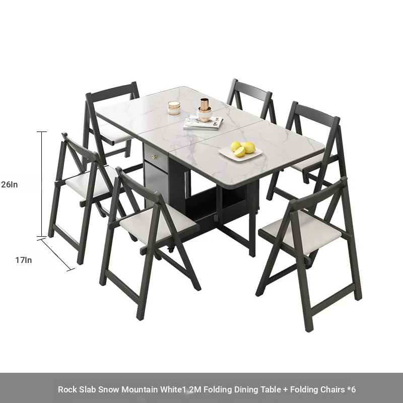 Import rock plate Foldable dining table 47.24 in + solid wood dining chair * 6 (snow mountain stone)