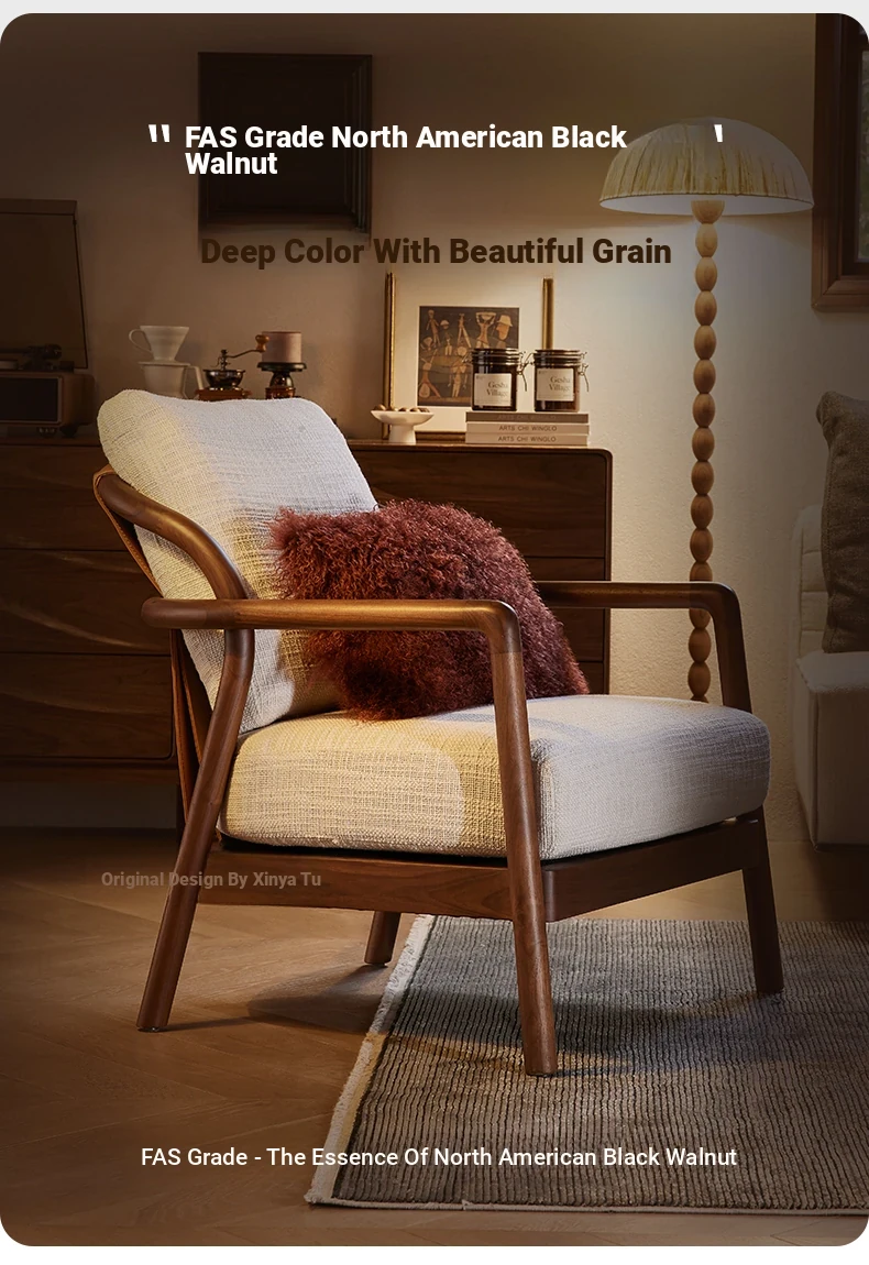 Premium North American Black Walnut Designer Lounge Chair - Elegant Italian-Style Armchair for Living Room, Perfect for Relaxation and Style