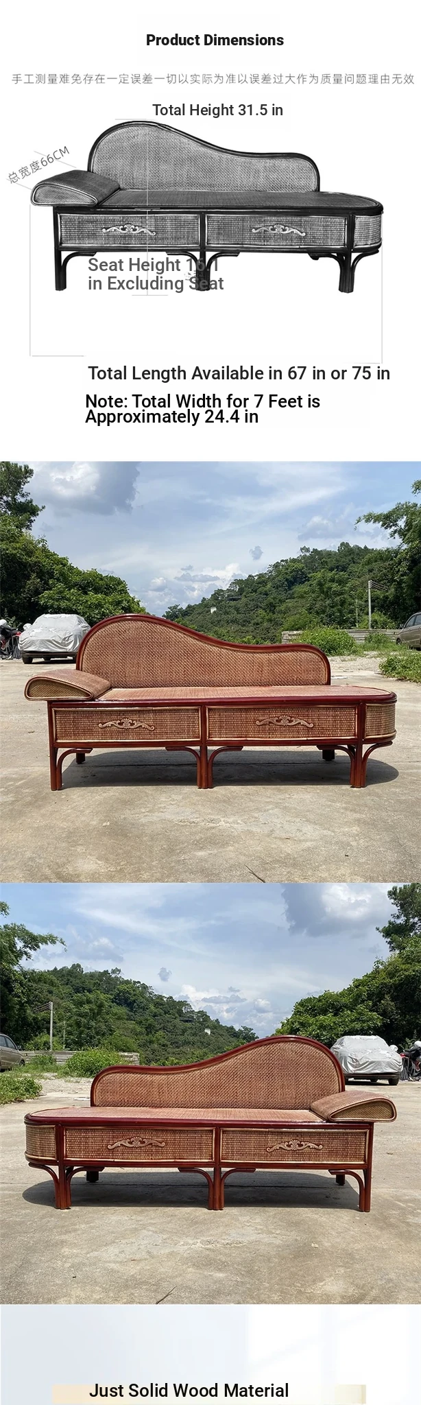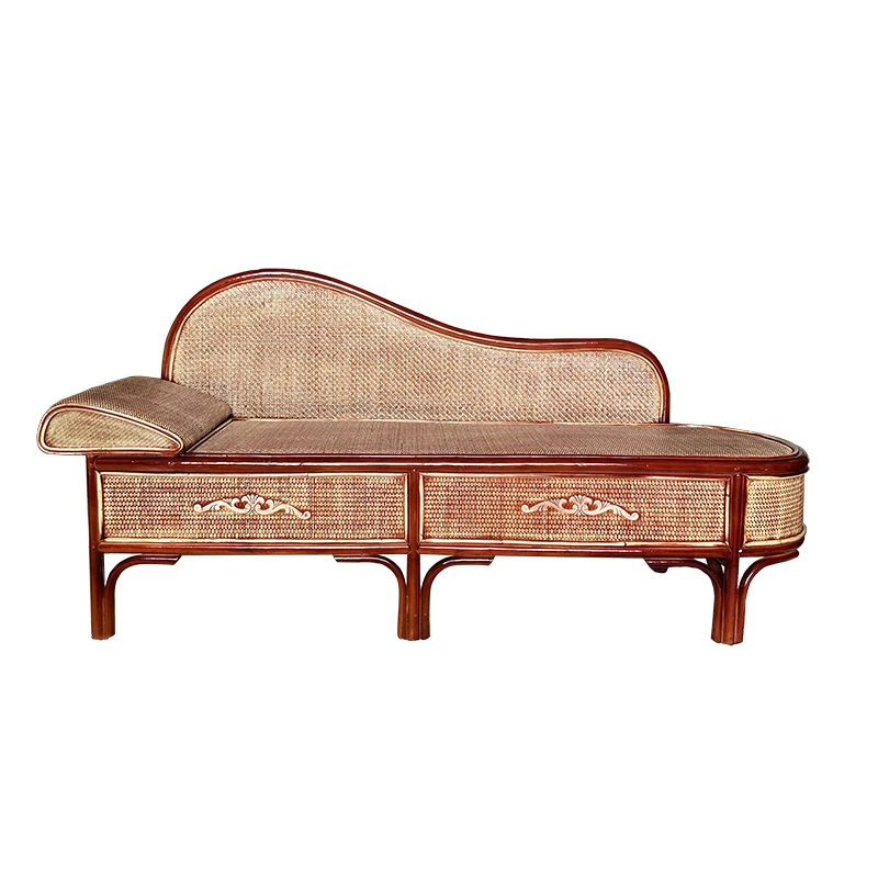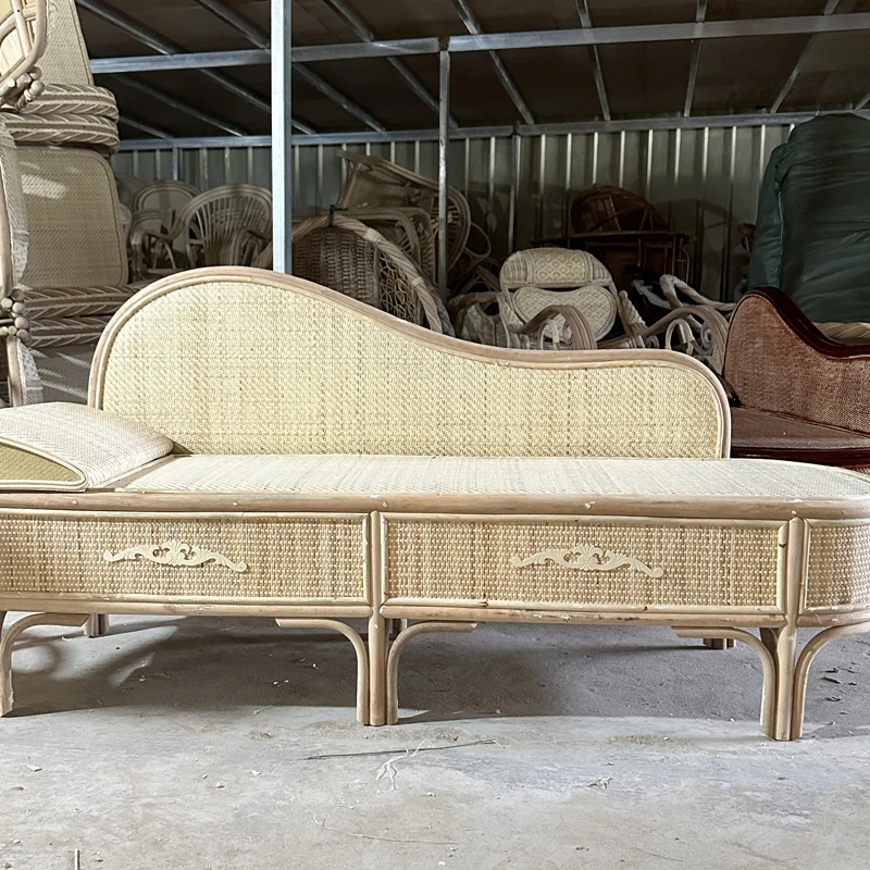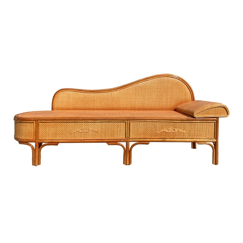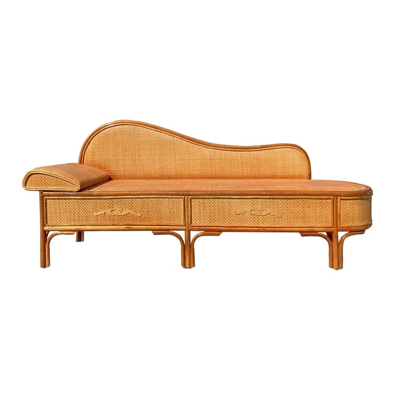 Wicker Chaise Lounge - Elegant Rattan Daybed for Small Spaces, Perfect for Living Room Relaxation, Stylish Rattan Craftsmanship, Comfortable and Chic Design