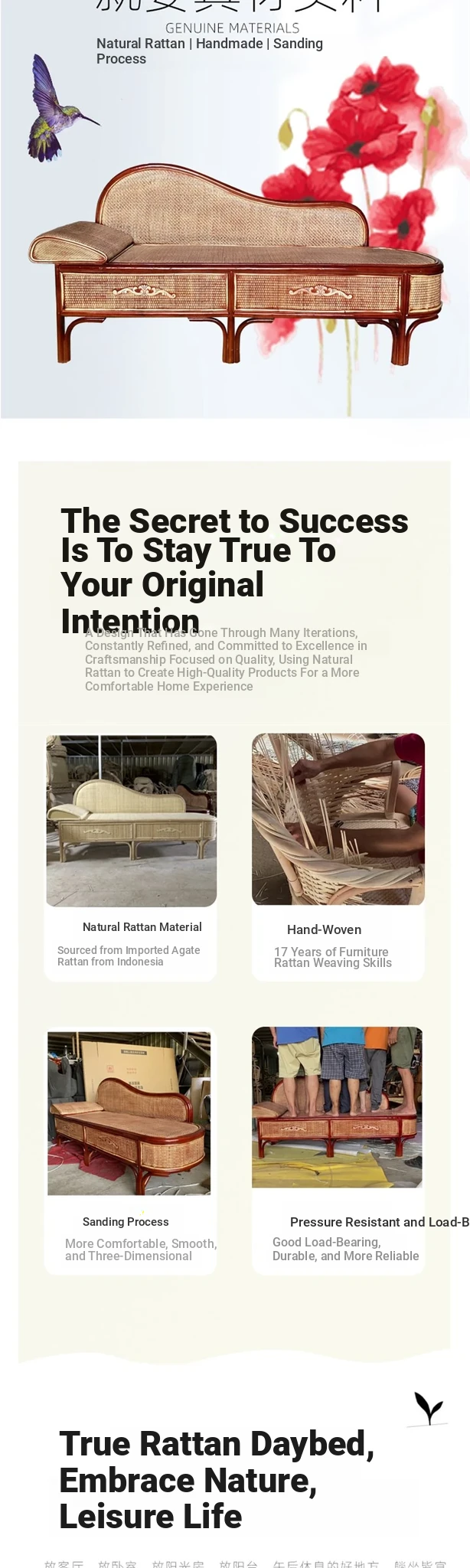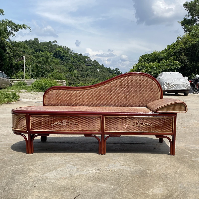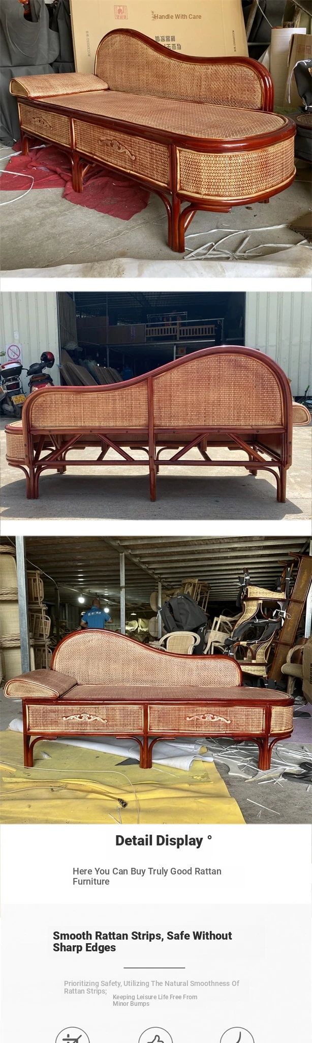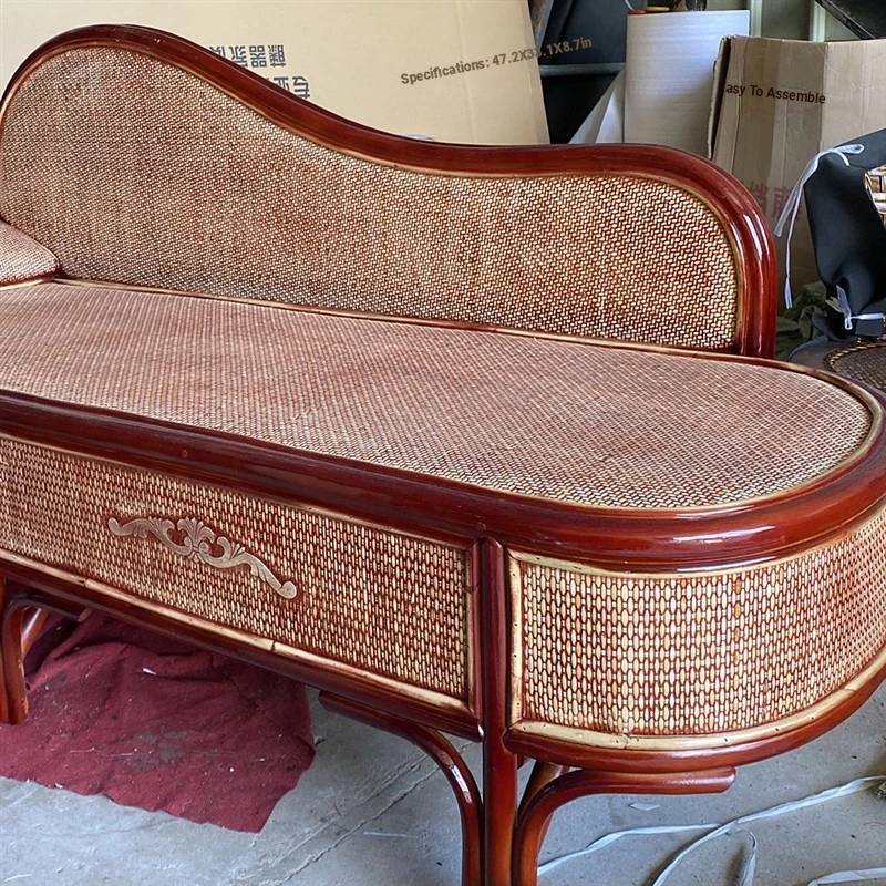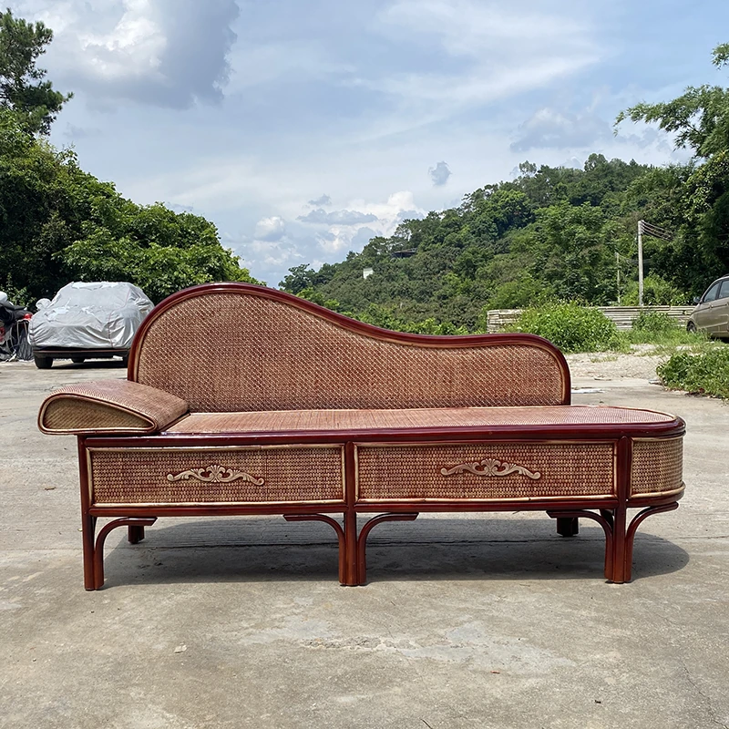 Wicker Chaise Lounge - Elegant Rattan Daybed for Small Spaces, Perfect for Living Room Relaxation, Stylish Rattan Craftsmanship, Comfortable and Chic Design