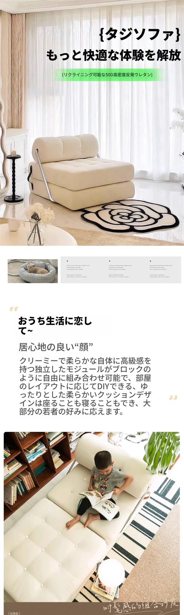 2024年新作!多機能タジサファー – 寝転びもできる一人用ソファベッド。小さなスペースでも大活躍!折りたたみ式で、リビングをスタイリッシュに変身!
