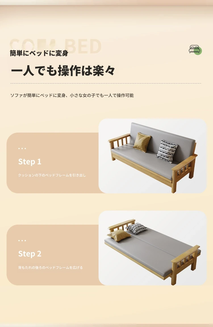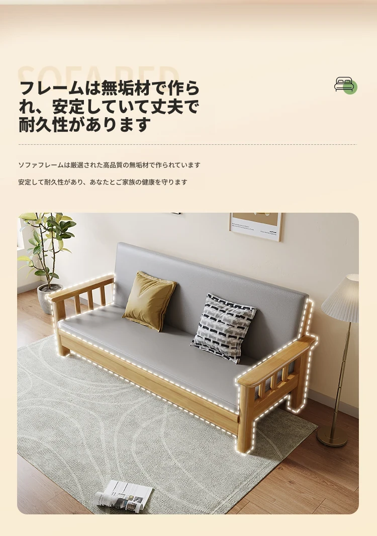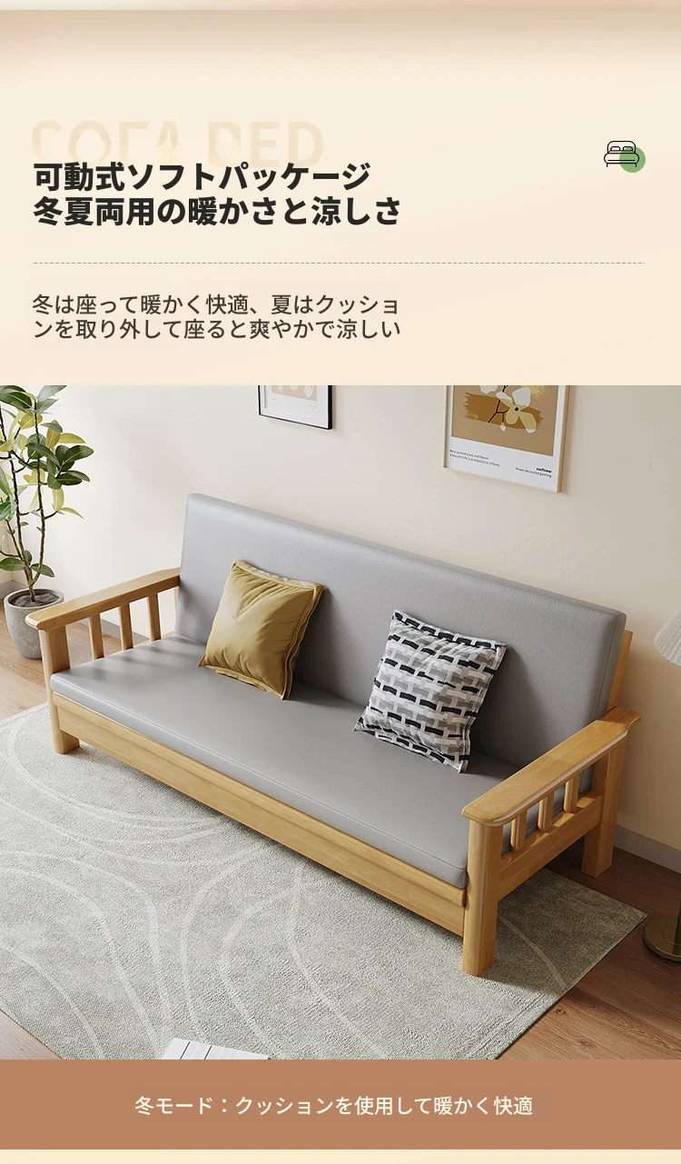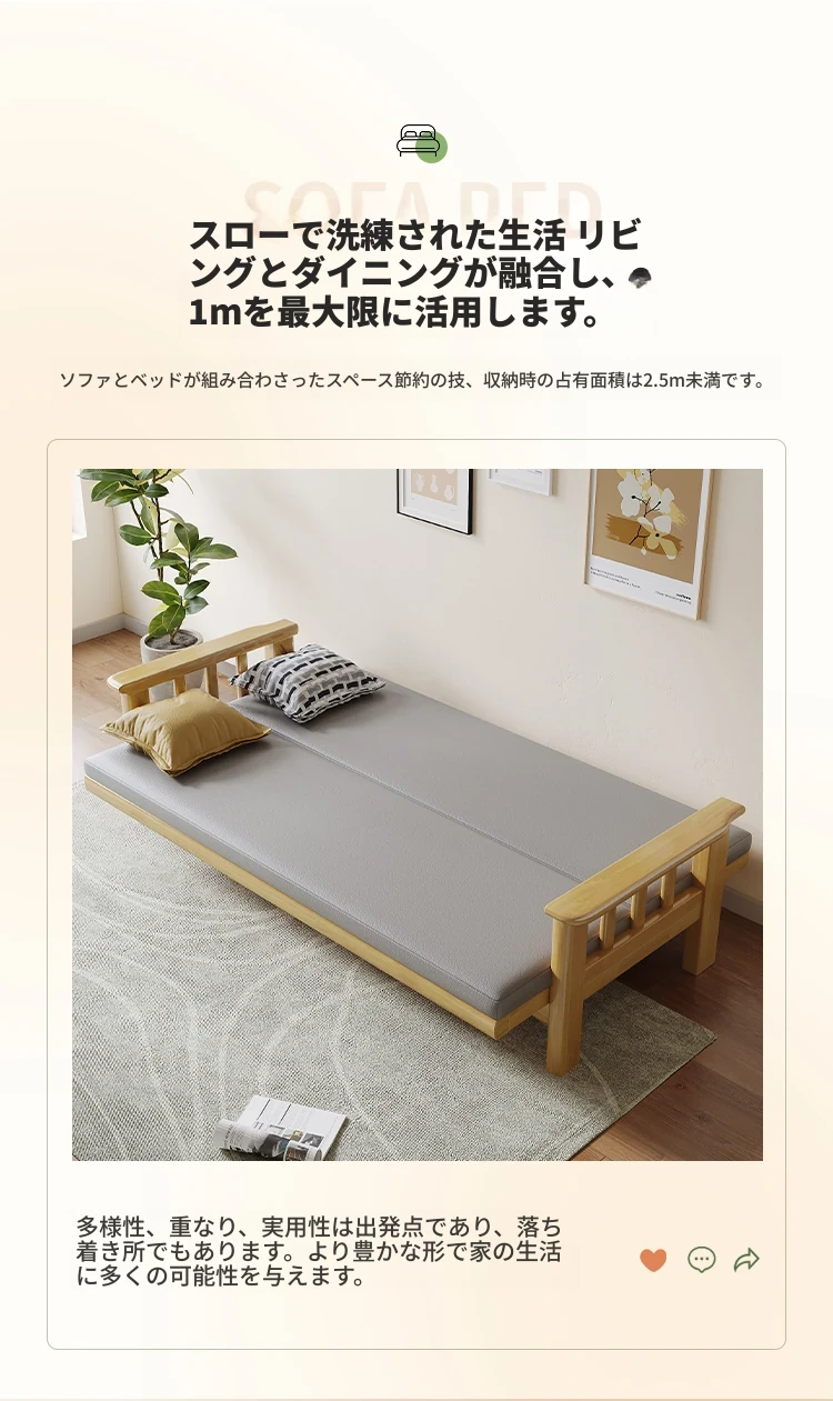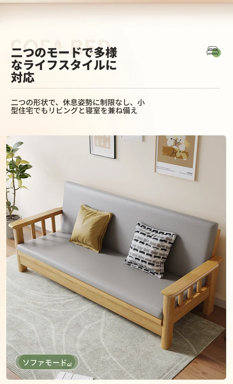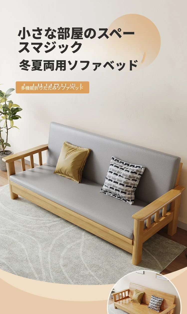 折りたたみ式ソファベッド|全木製・一体型|多機能・二人用|小型住宅に最適|2025年新作|中華スタイルでリビングを彩る!