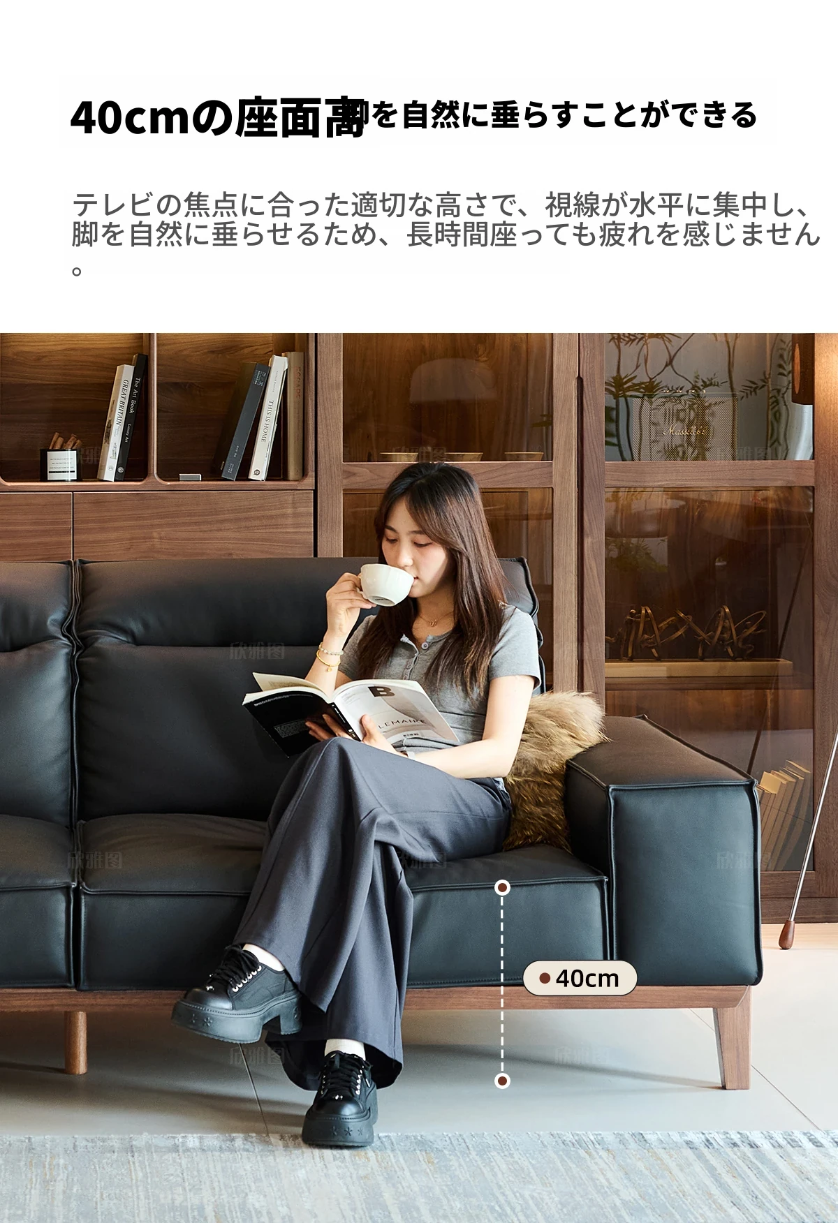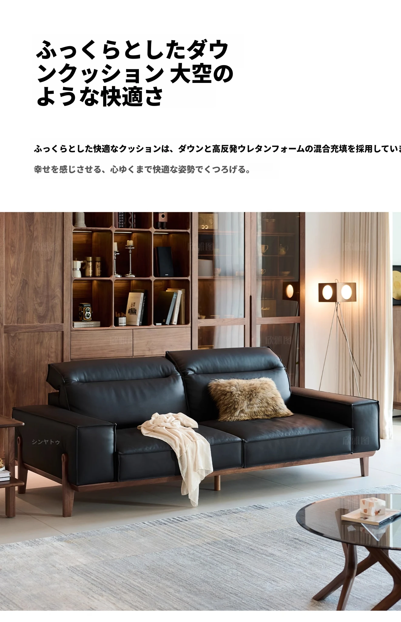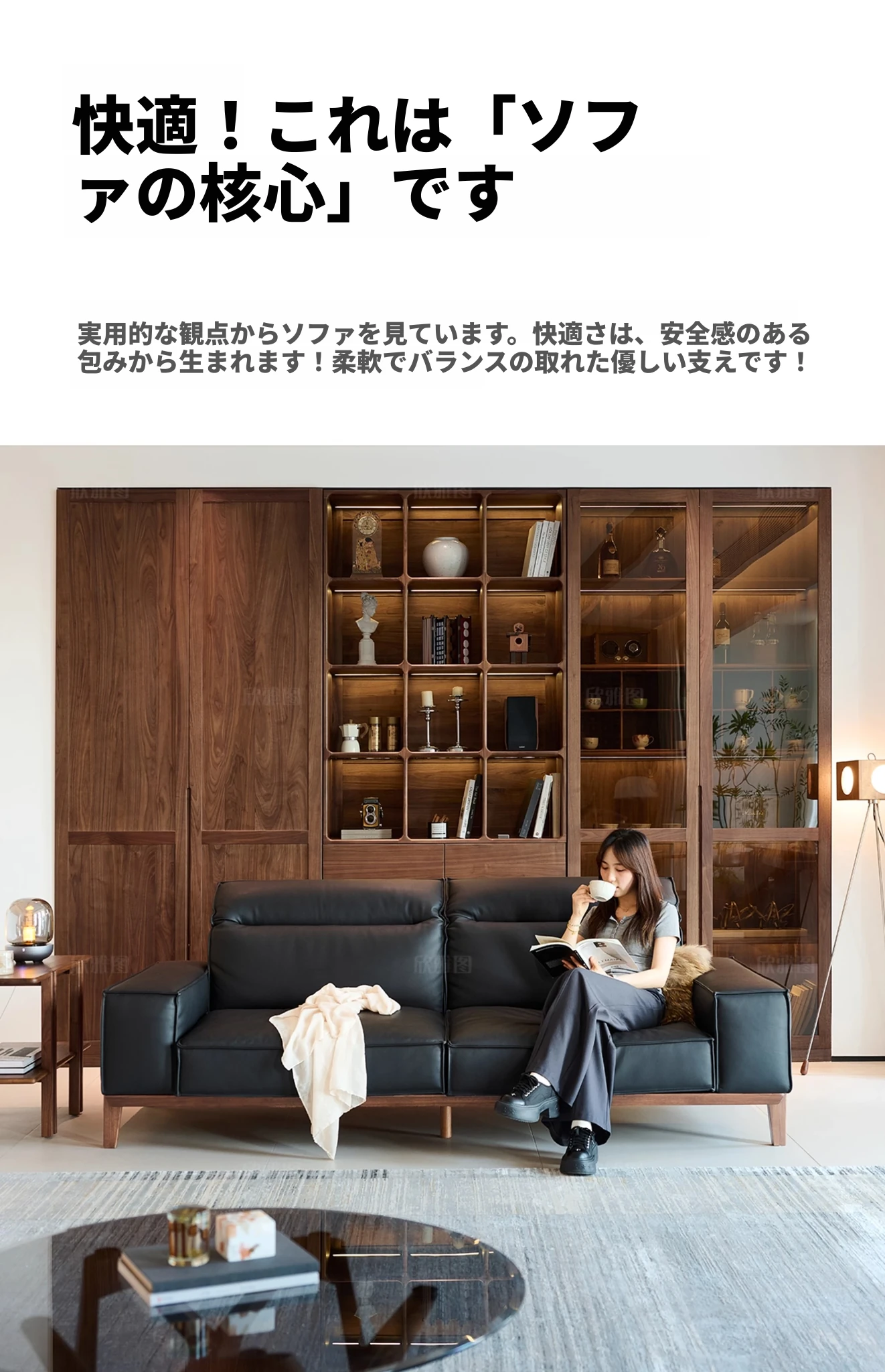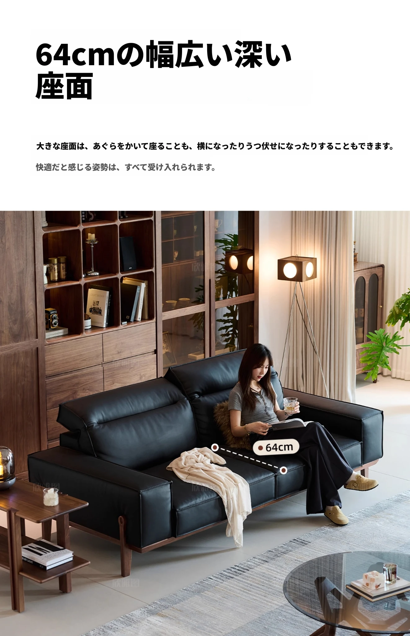 2025年新作!北米産ブラックウォールナット無垢材使用の本革ソファ。リビングにぴったりな高級感漂うシックなデザイン。直線的なラインで洗練された印象を与え、上質なひとときを演出します。