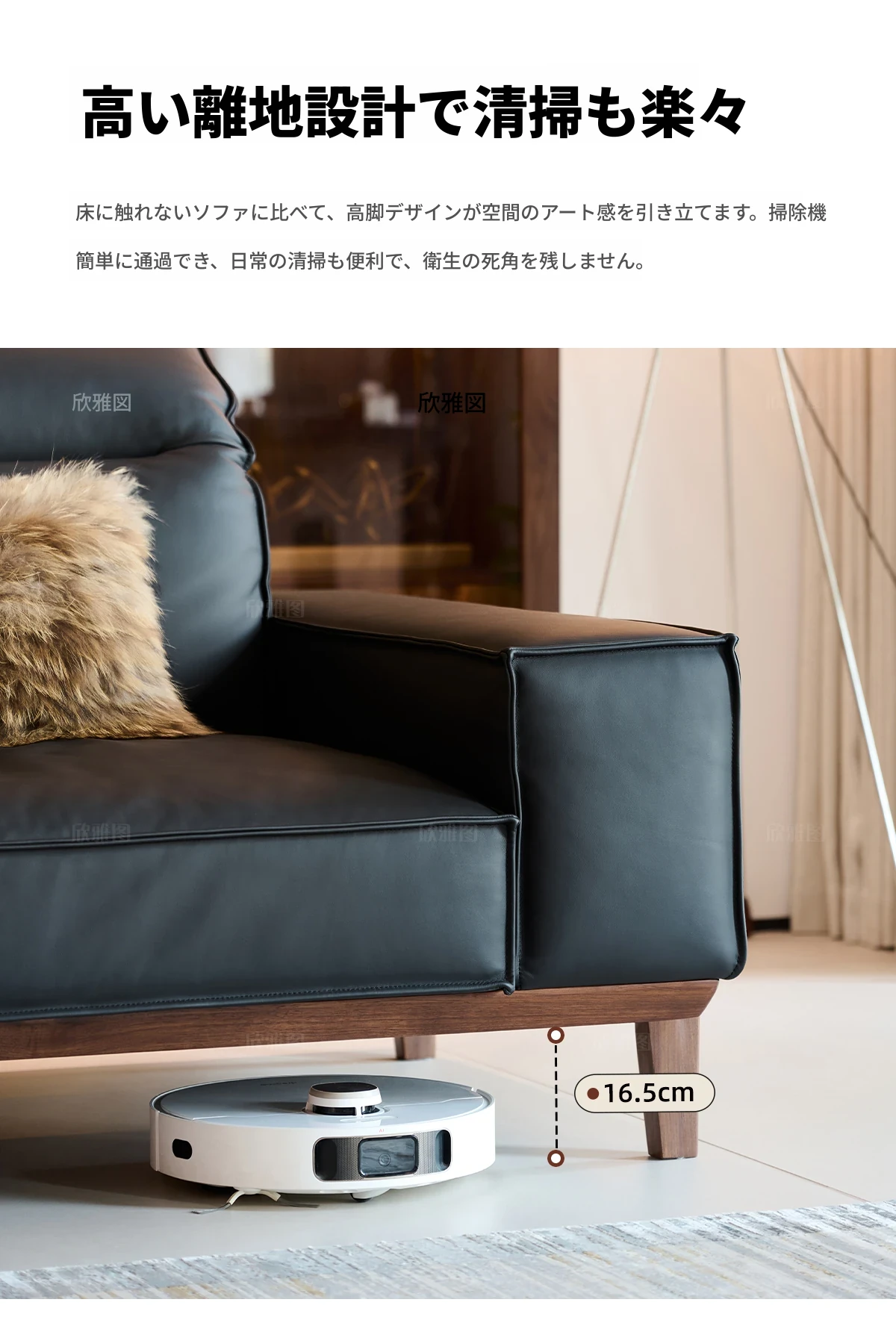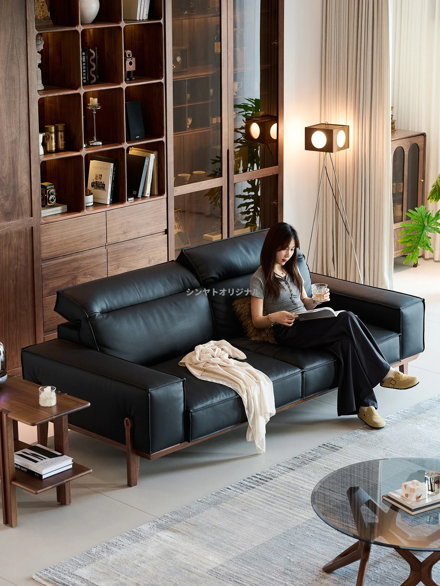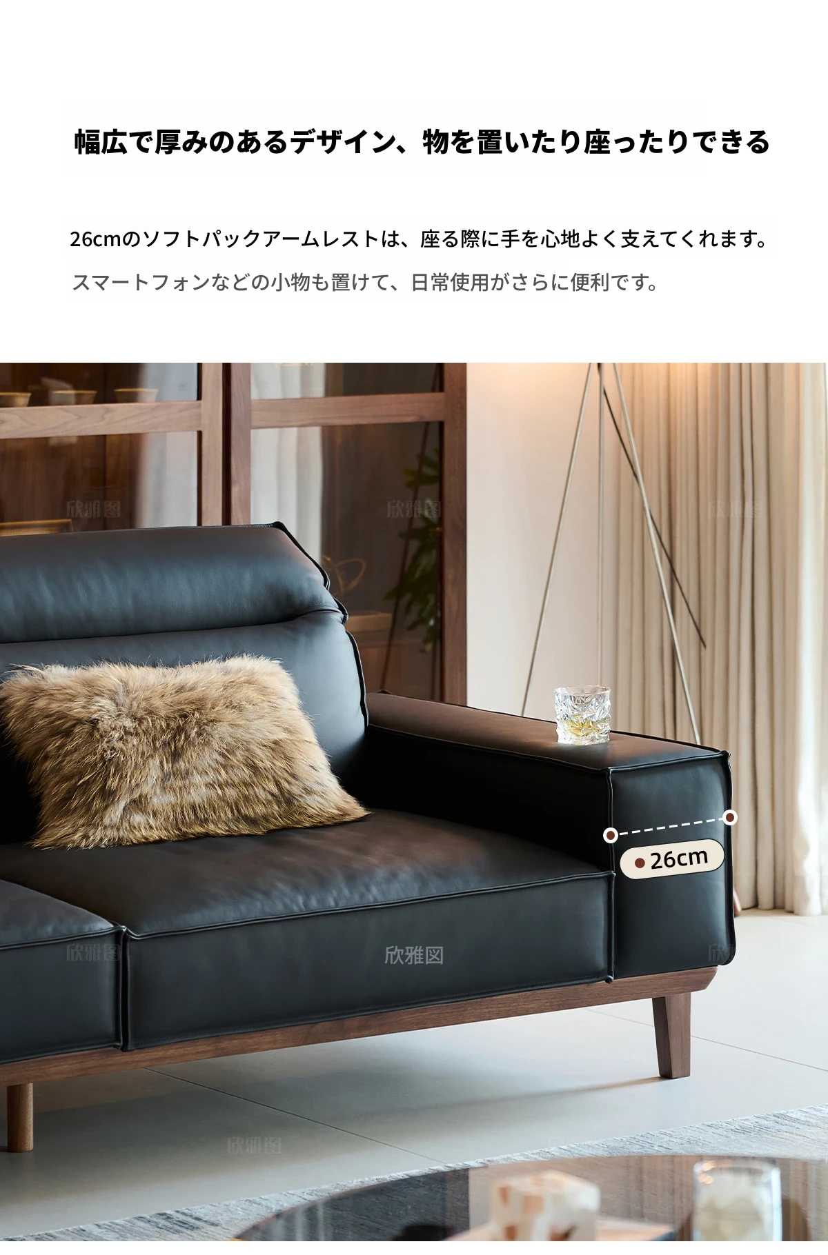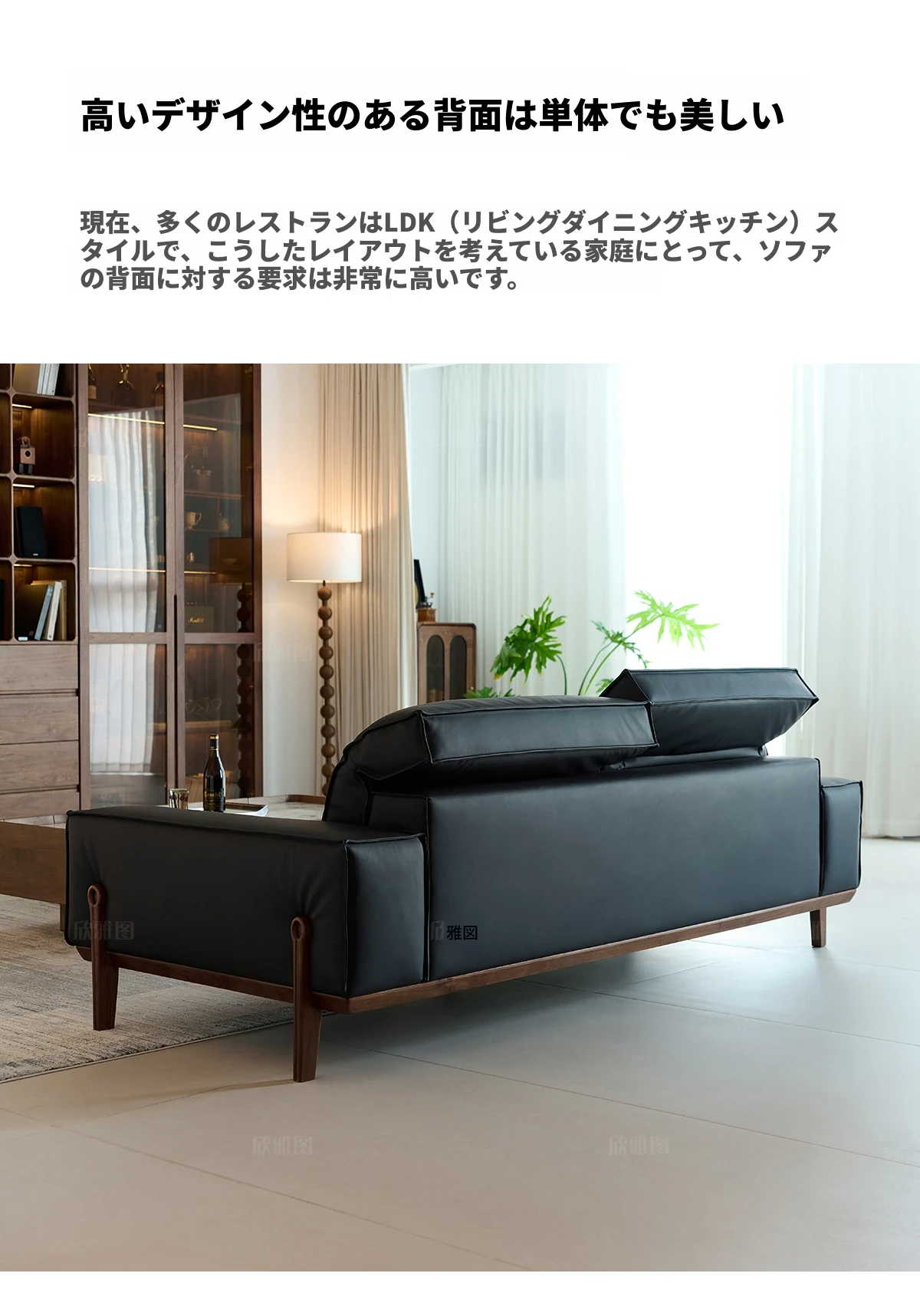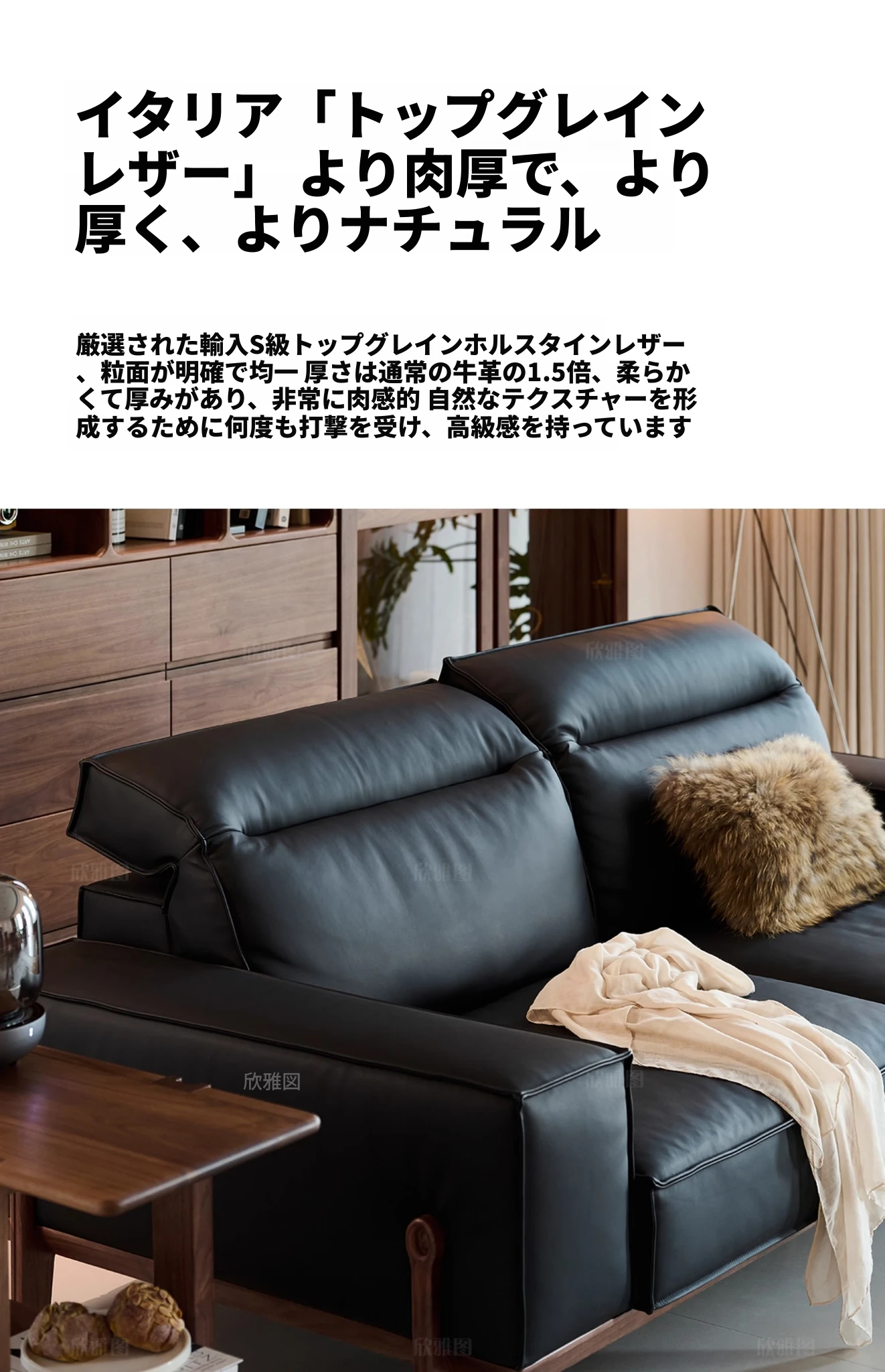2025年新作!北米産ブラックウォールナット無垢材使用の本革ソファ。リビングにぴったりな高級感漂うシックなデザイン。直線的なラインで洗練された印象を与え、上質なひとときを演出します。