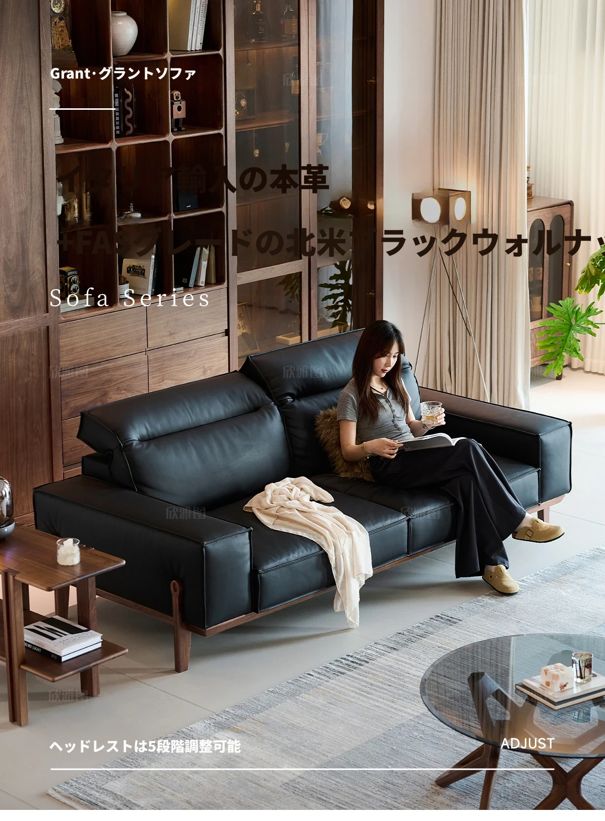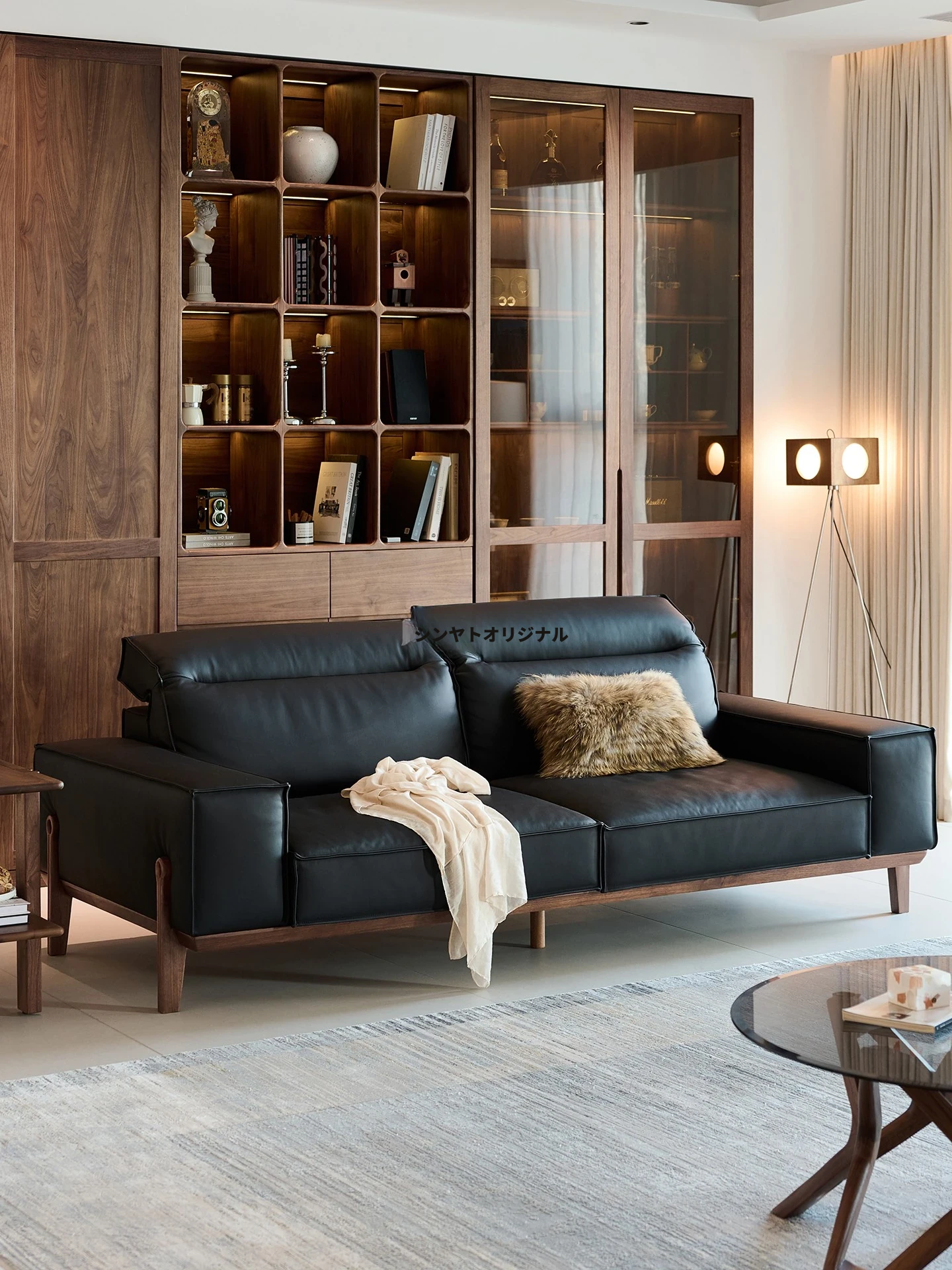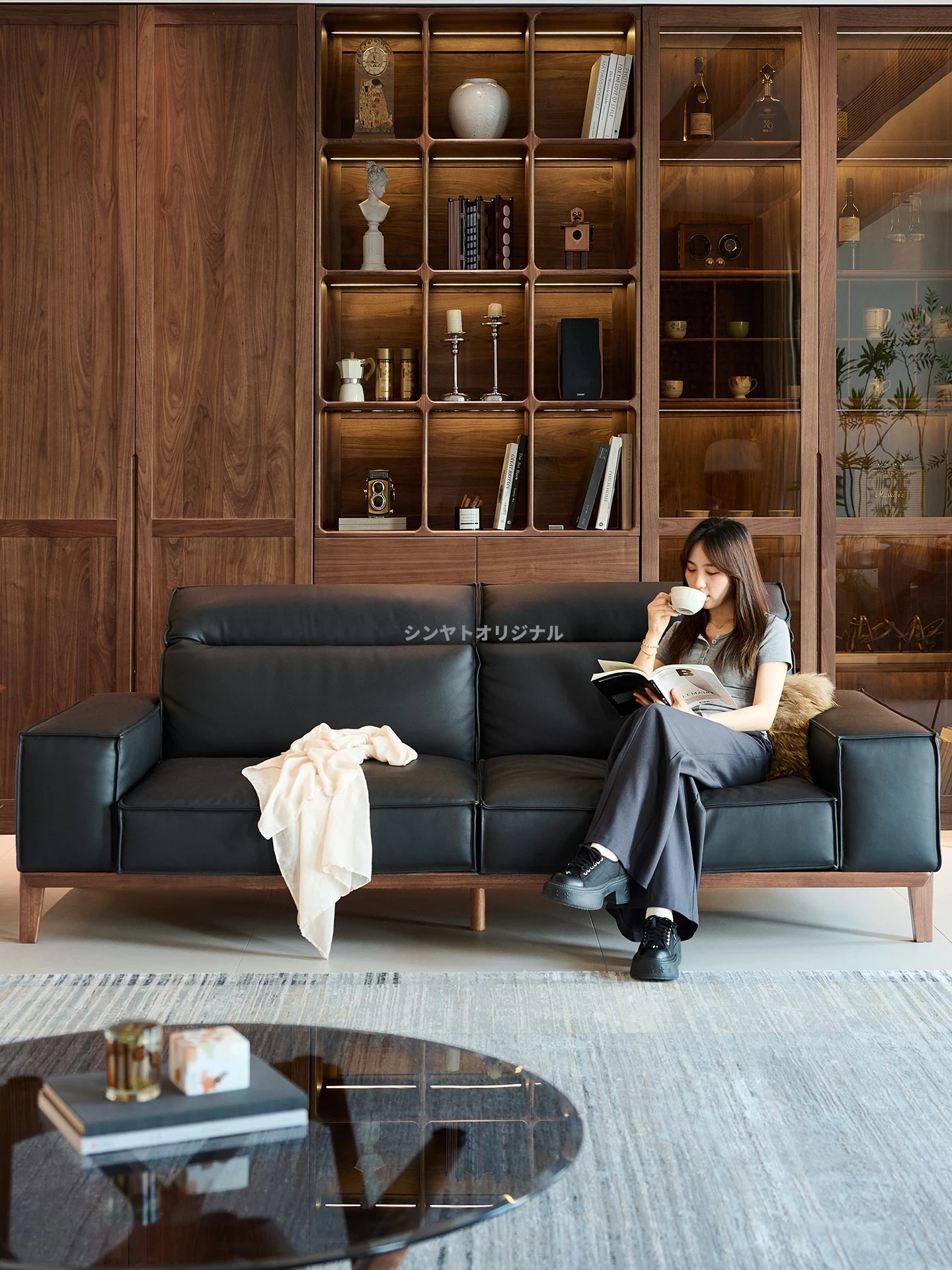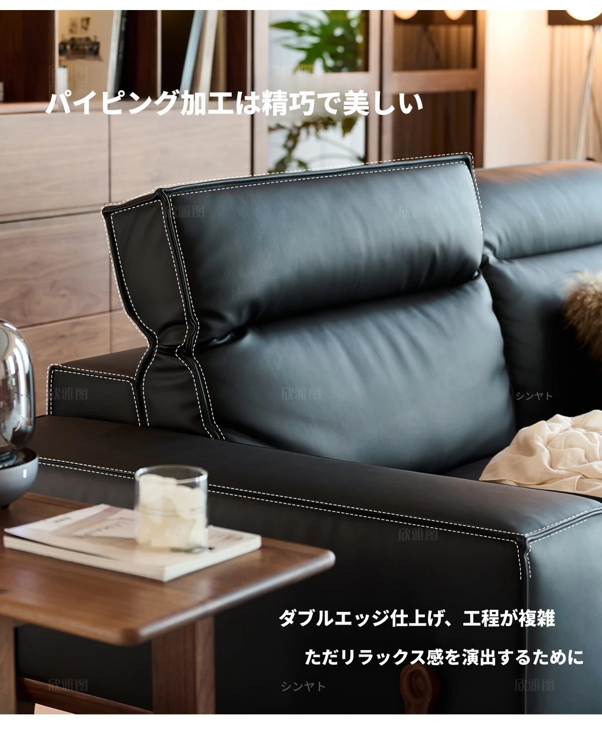 2025年新作!北米産ブラックウォールナット無垢材使用の本革ソファ。リビングにぴったりな高級感漂うシックなデザイン。直線的なラインで洗練された印象を与え、上質なひとときを演出します。