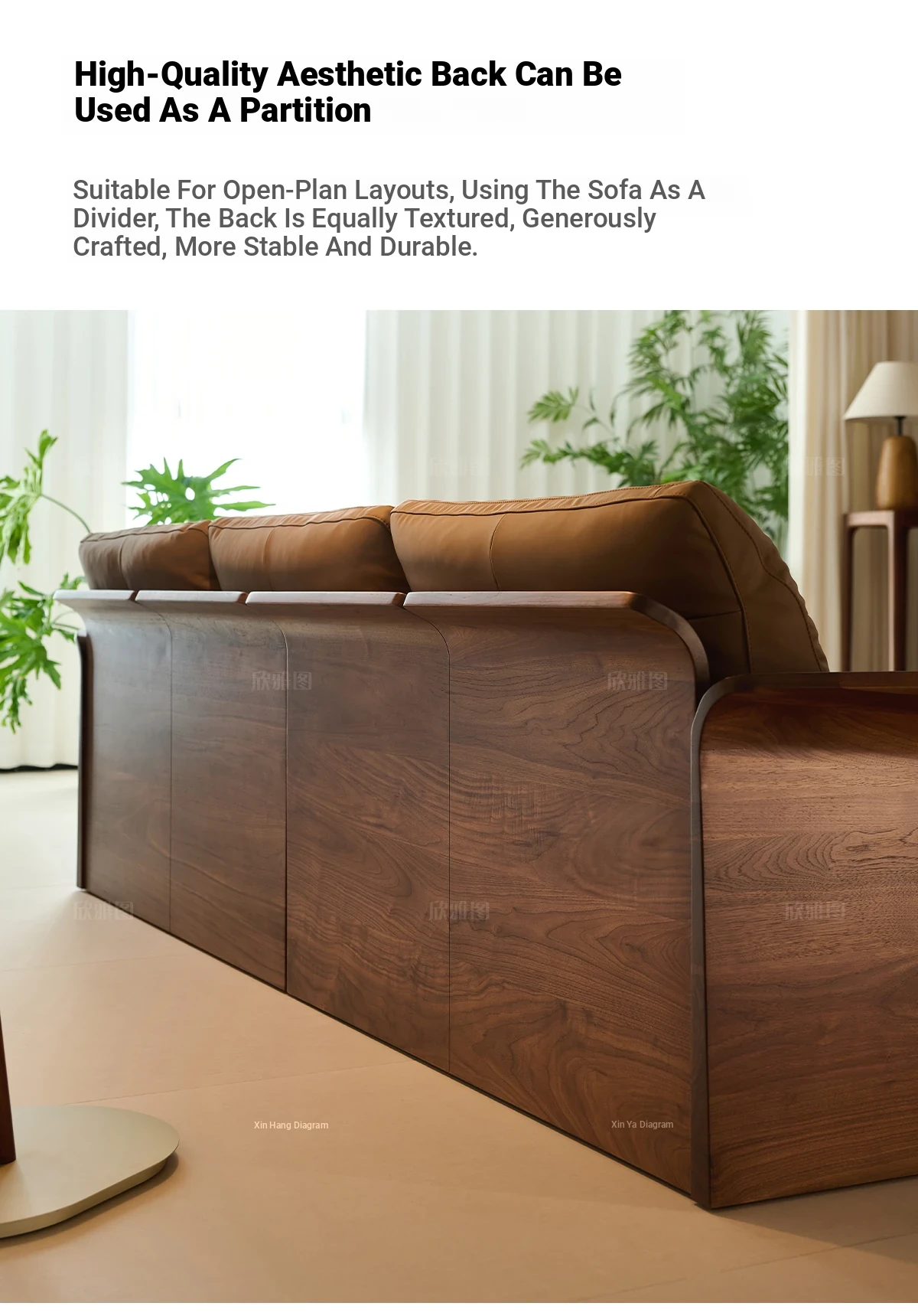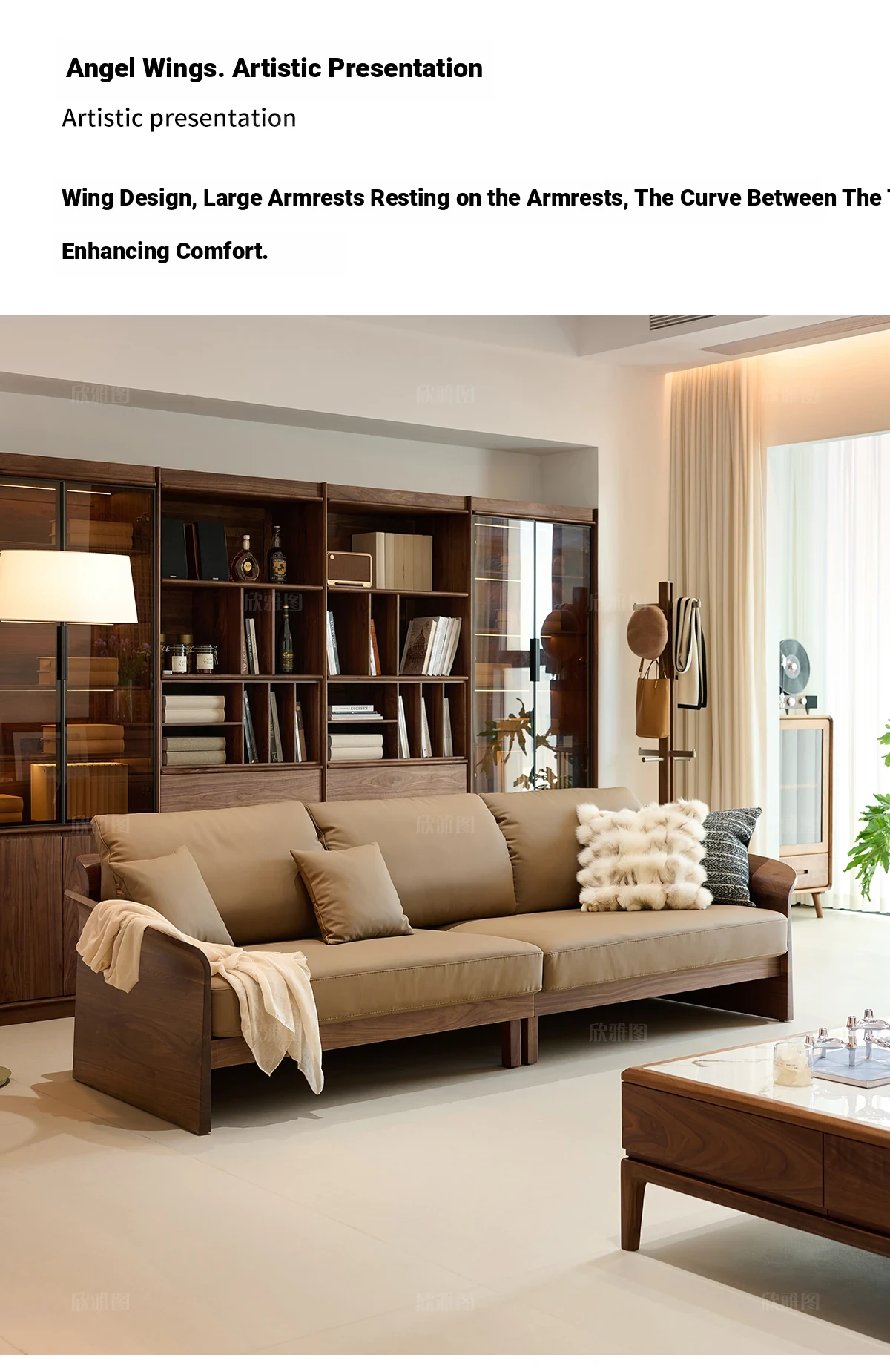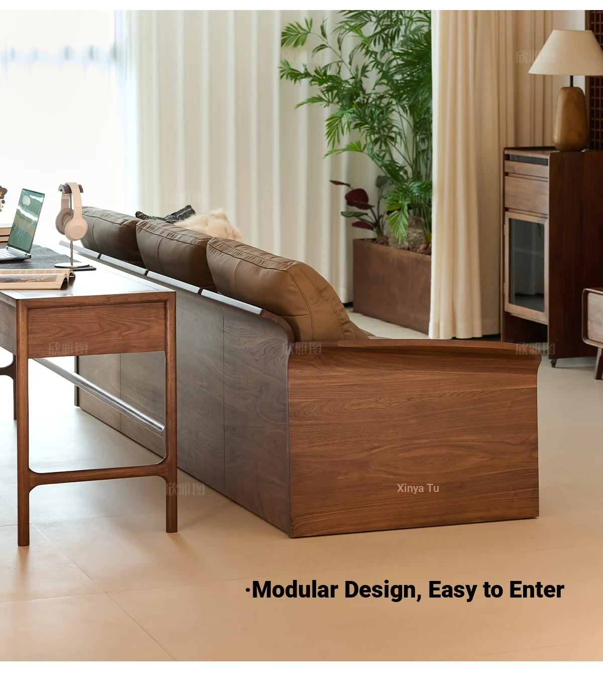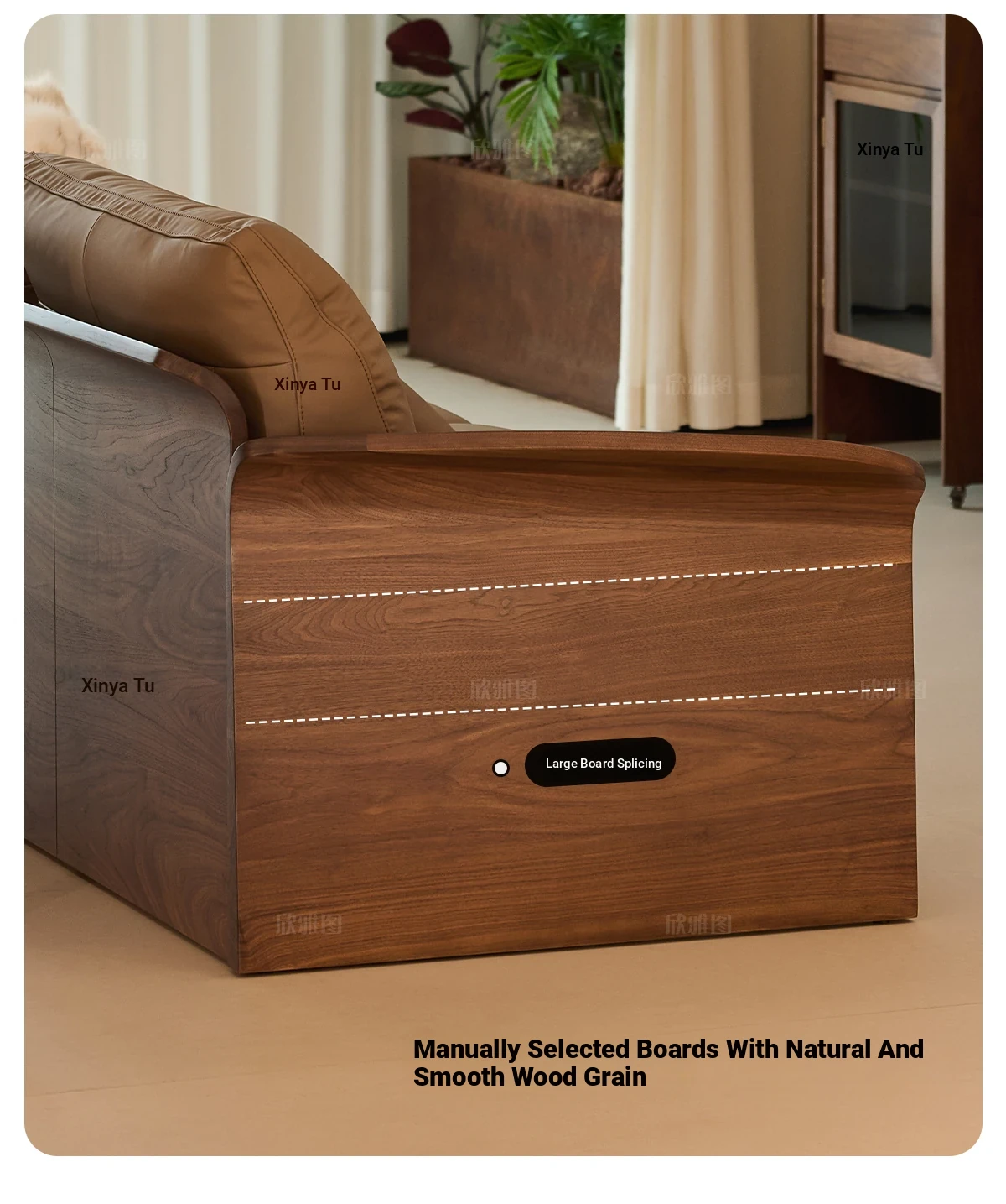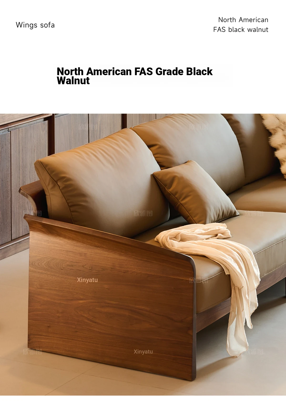 2025 New Arrival: North American Black Walnut Solid Wood Leather Sofa, Premium Top-Grain Cowhide, Stylish Four-Seat Design for Your Living Room