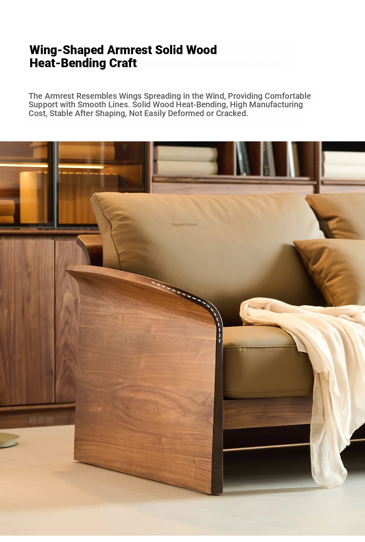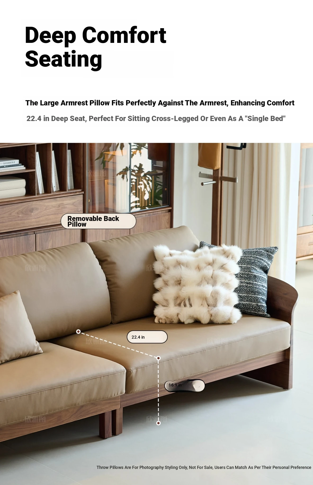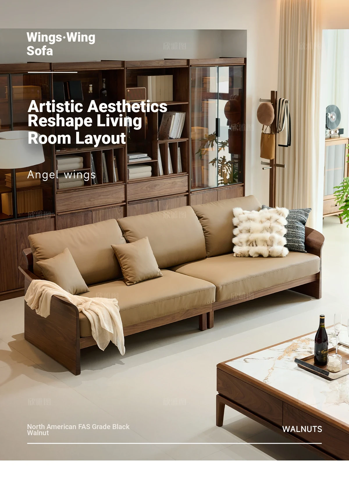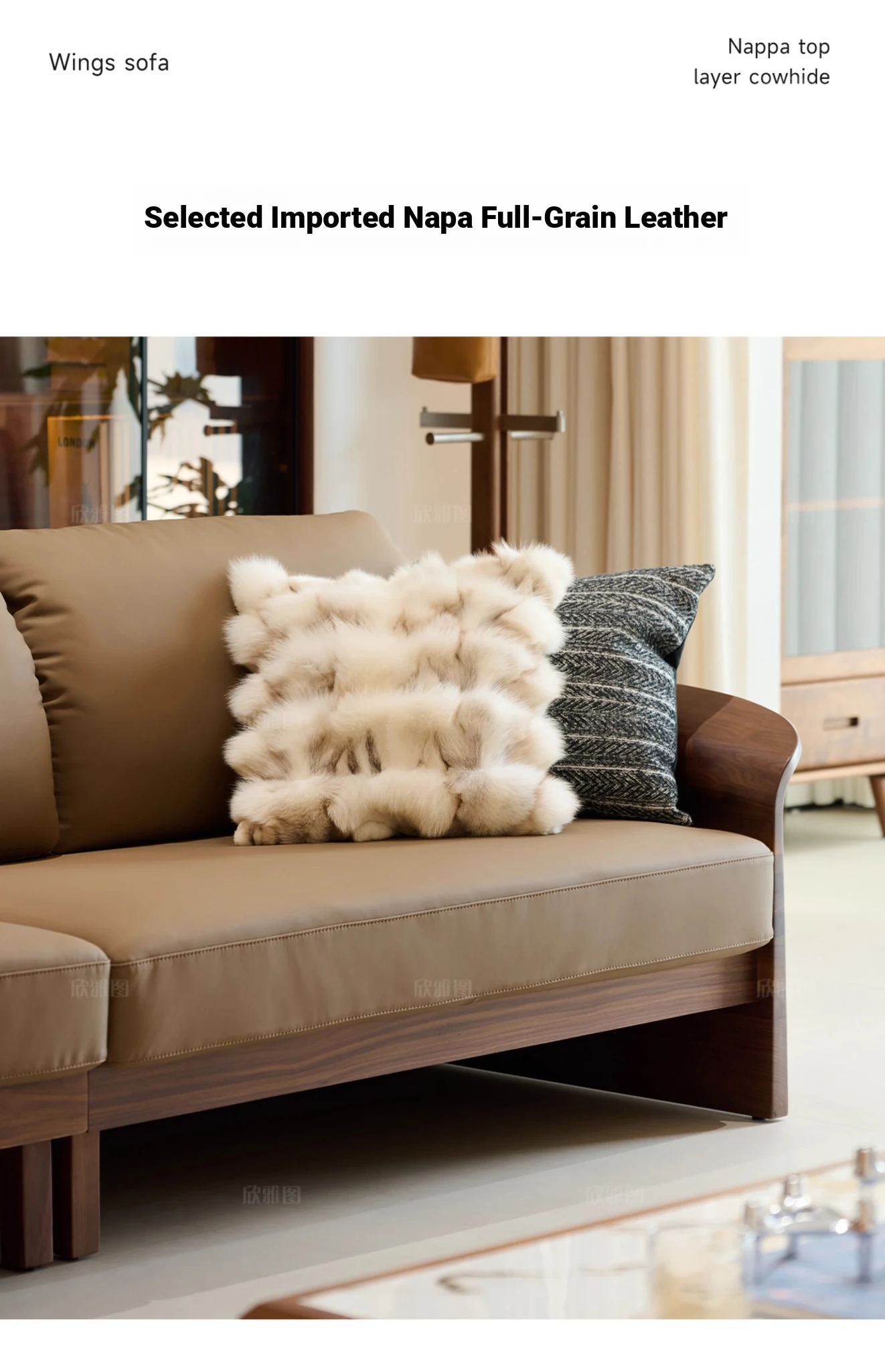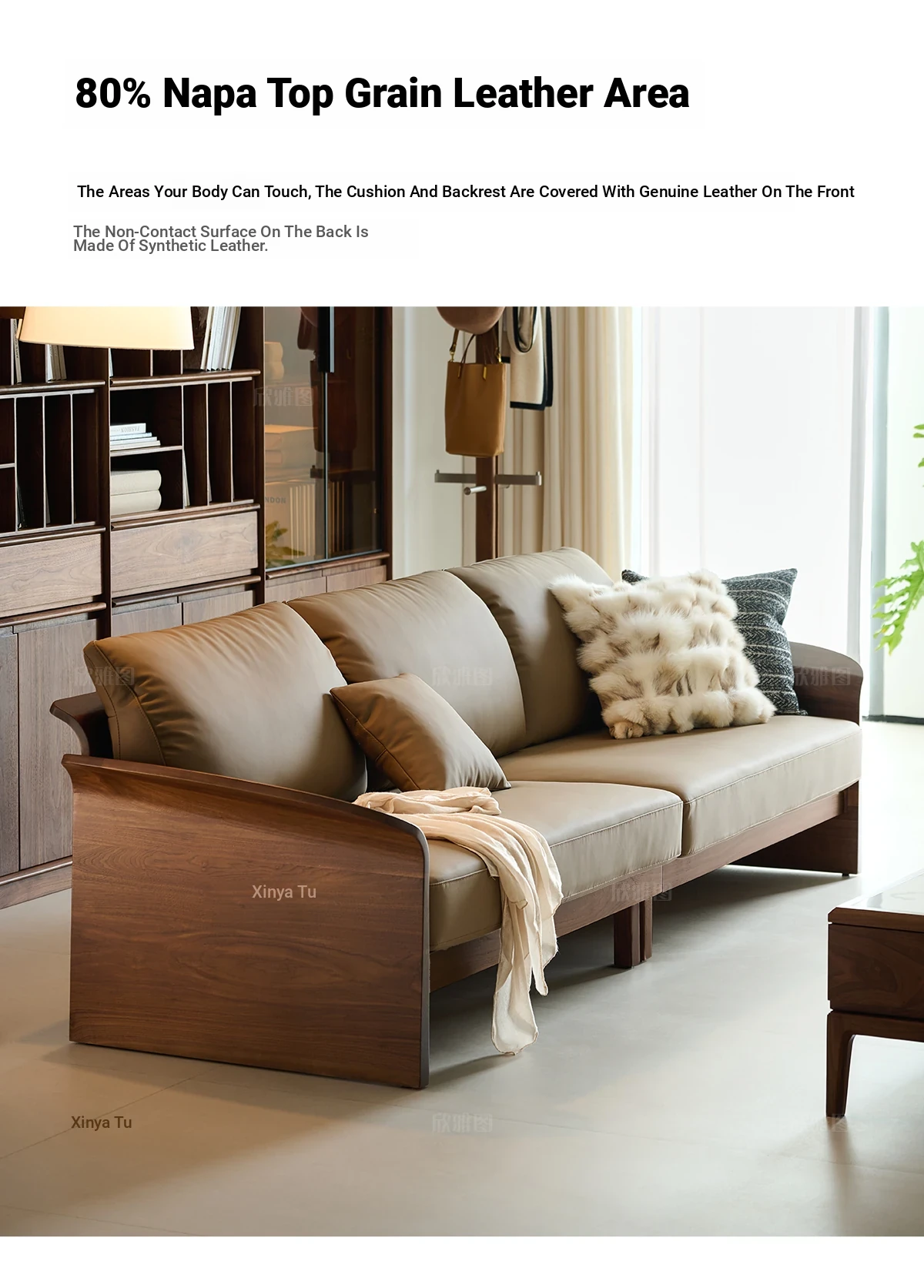 2025 New Arrival: North American Black Walnut Solid Wood Leather Sofa, Premium Top-Grain Cowhide, Stylish Four-Seat Design for Your Living Room