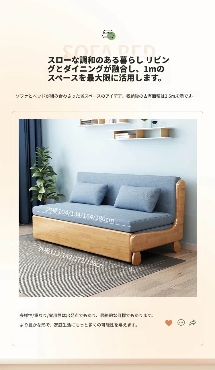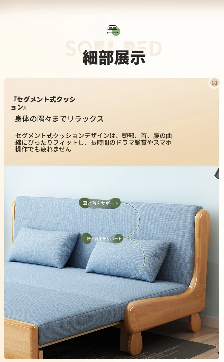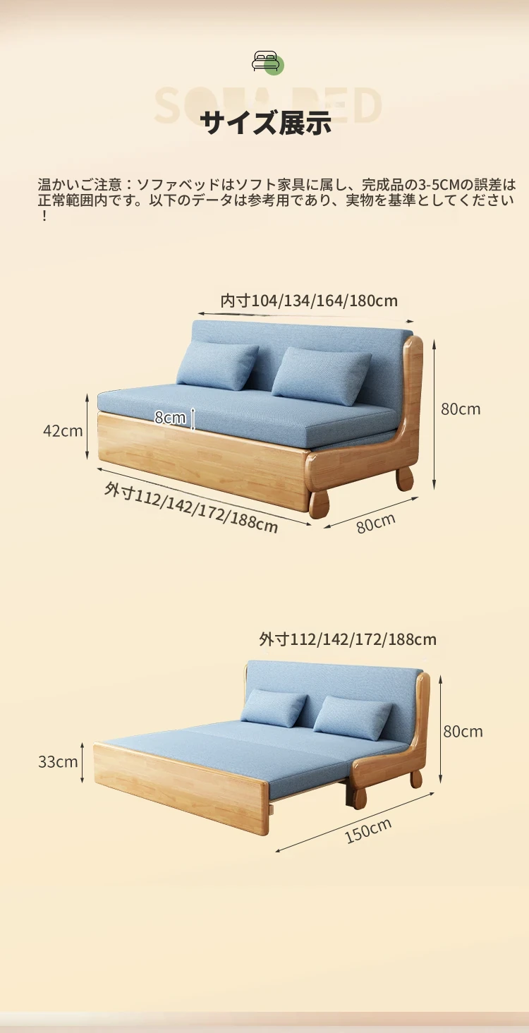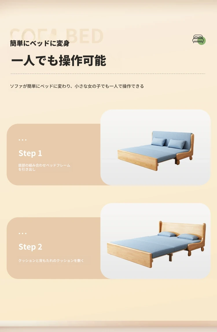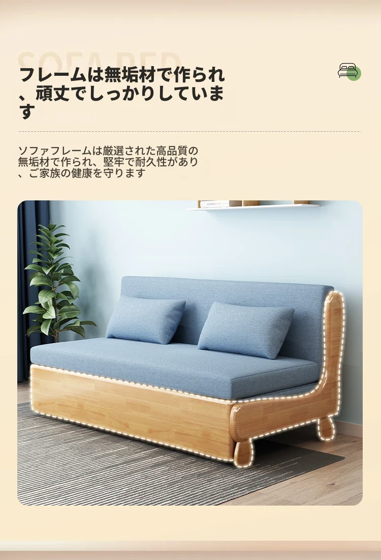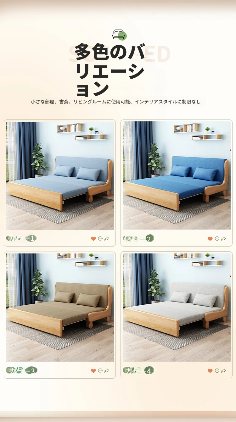 2025新作!無垢材使用の折りたたみソファベッド - 2in1多機能デザイン、アームレストなしで小さなスペースにも最適!書斎やリビングにぴったりのスタイリッシュなアイテム。