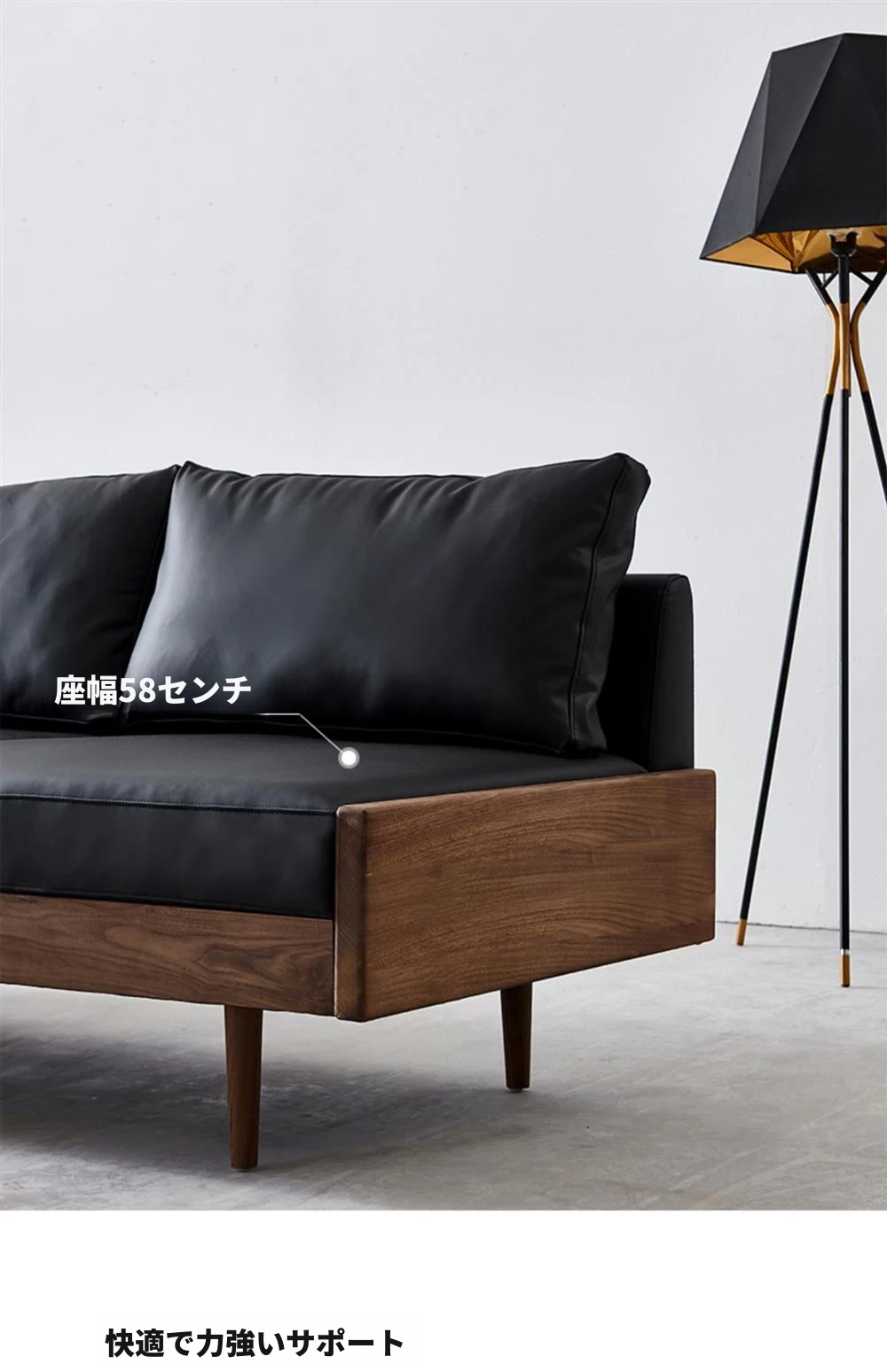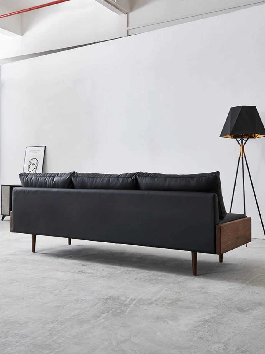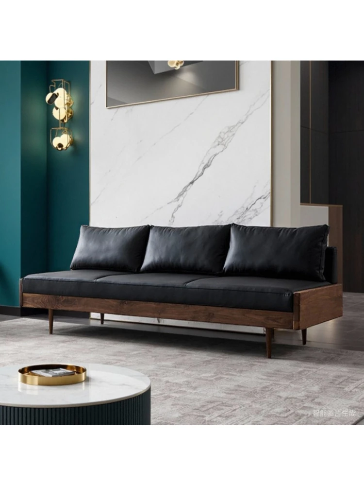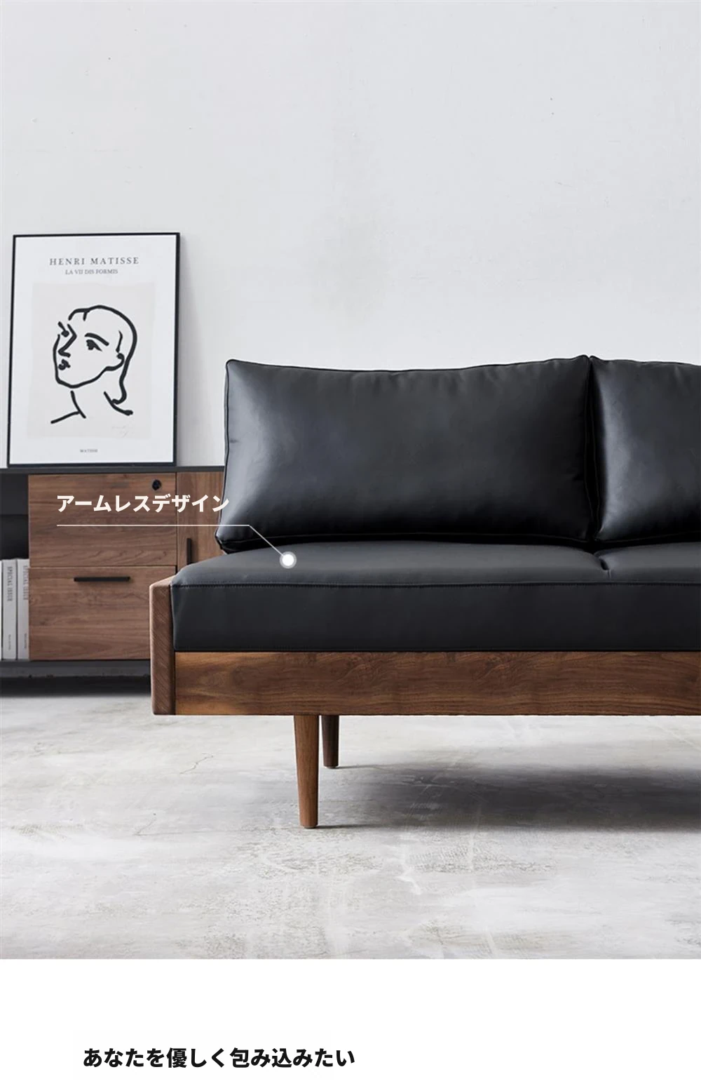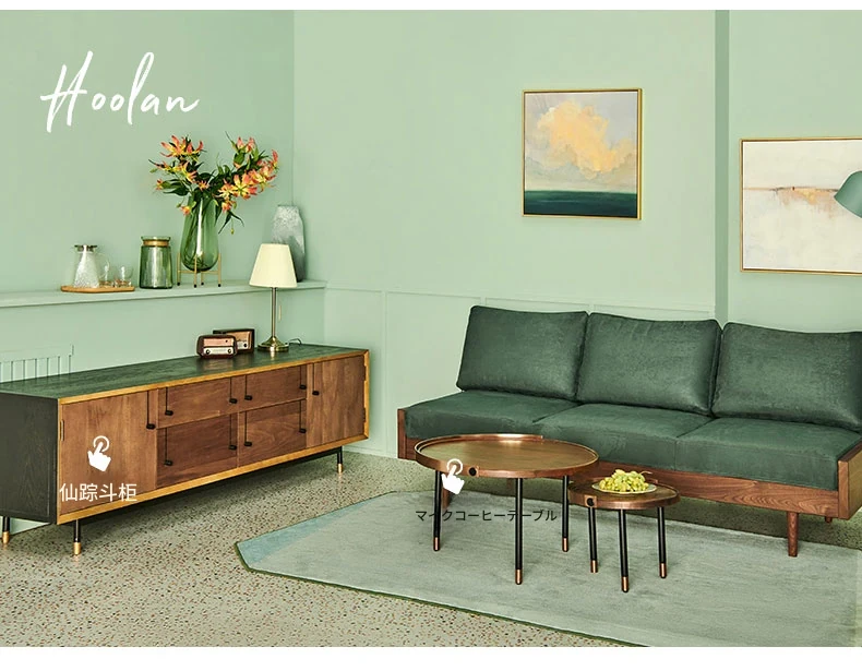 2025年新作!北欧スタイルの小型リビングソファ - アームレスデザイン、ブラックレザーとグリーンファブリックのコンビネーション、天然木フレームで優雅さと快適さを兼ね備えた一品!おしゃれな空間を演出しましょう!