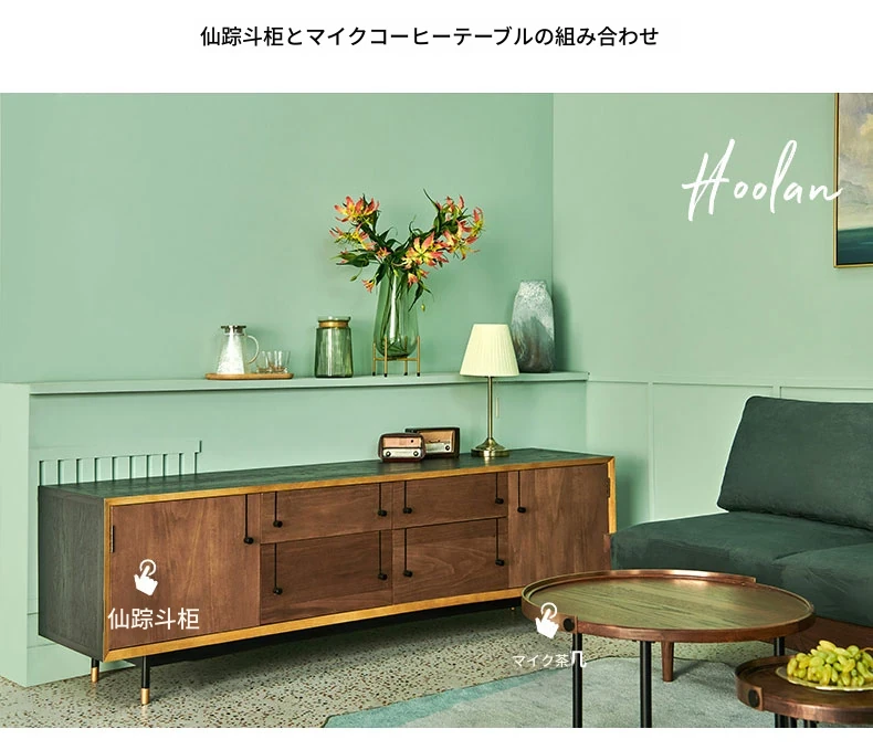 ウォールナット色+緑のベルベット