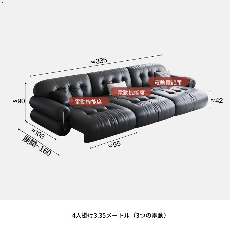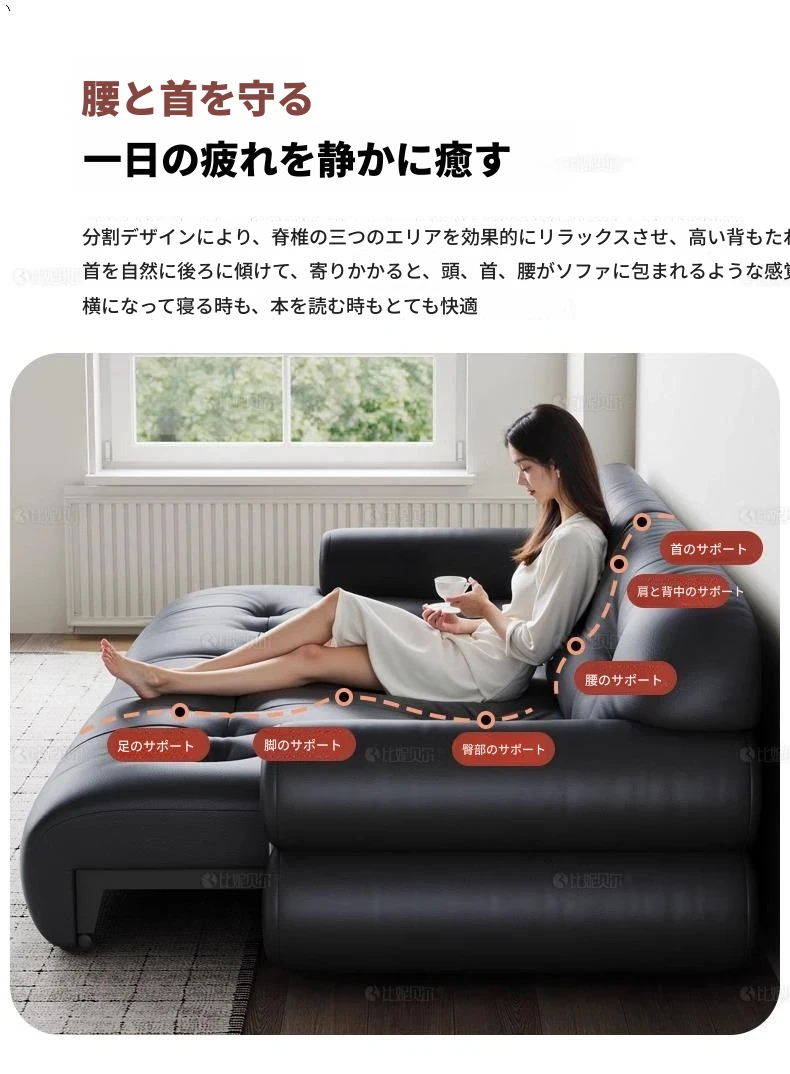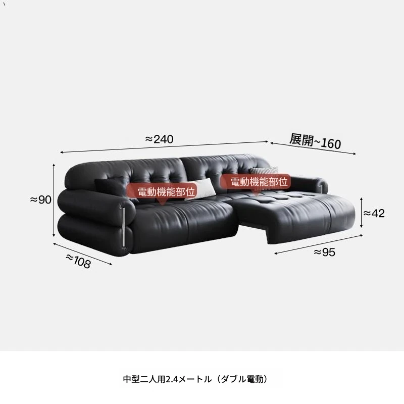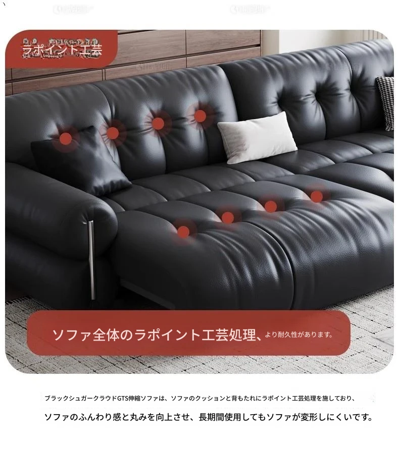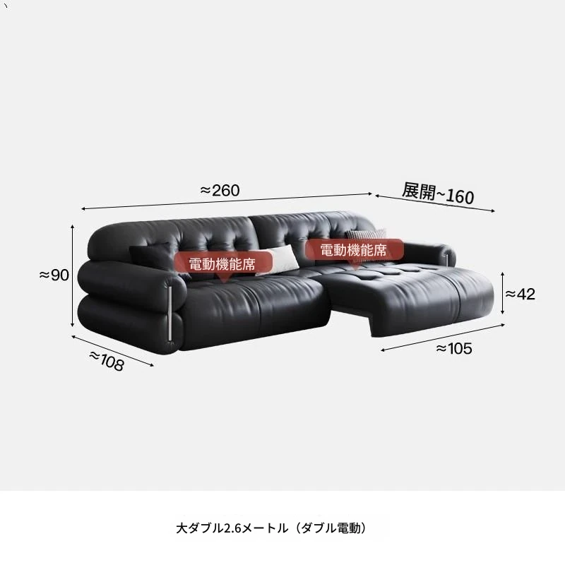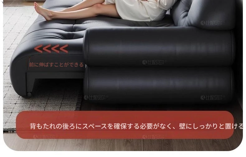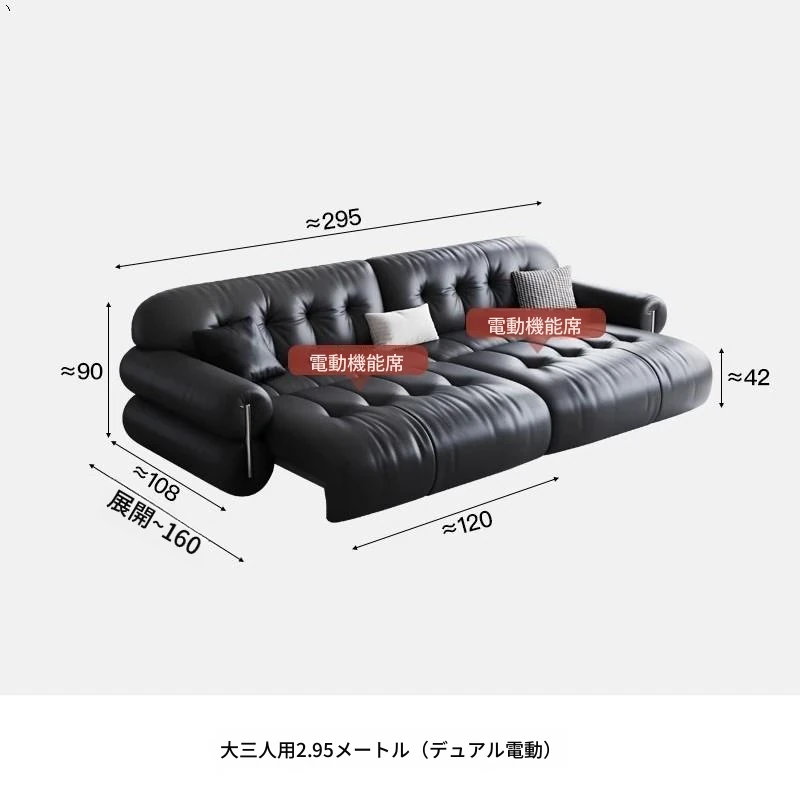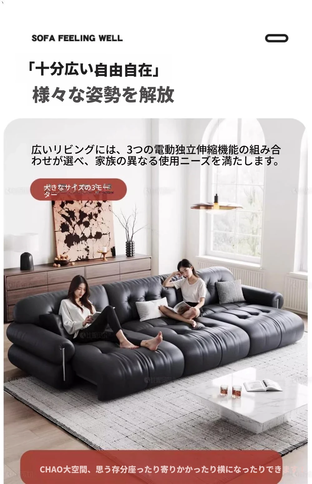 黒糖雲朵電動伸縮機能ソファ|ブラック本革製|3人掛け|電動調節可能|壁に寄せられる省スペース設計で、快適なリラックスタイムをお楽しみください!