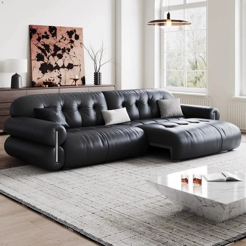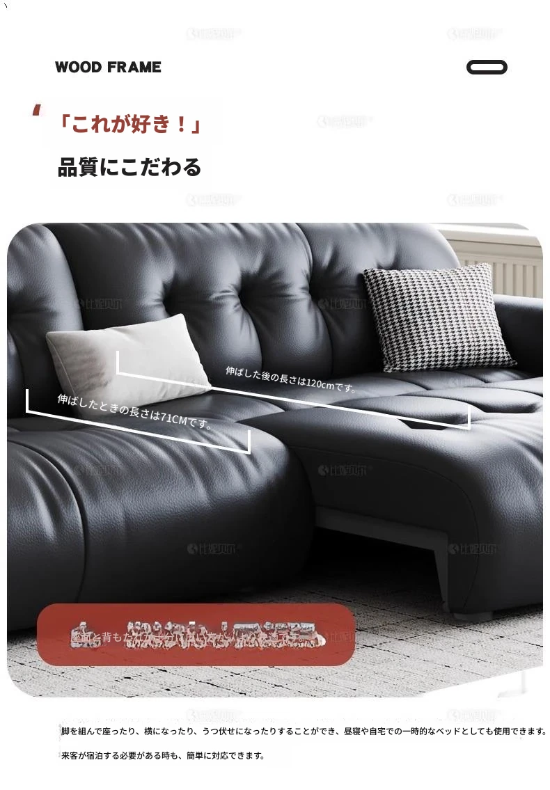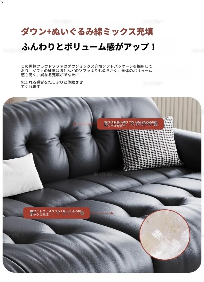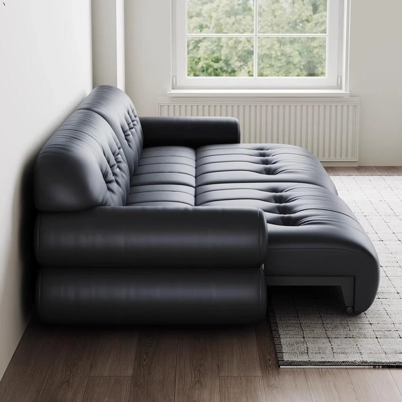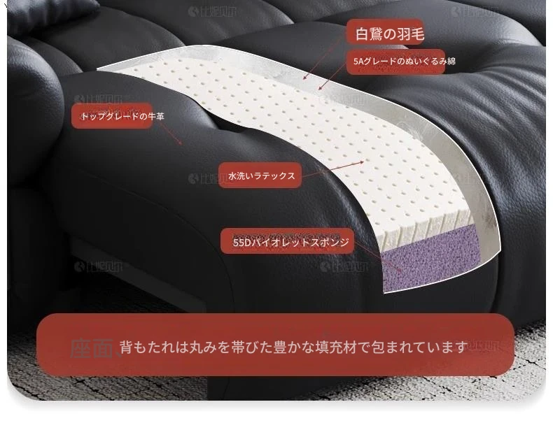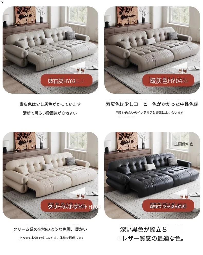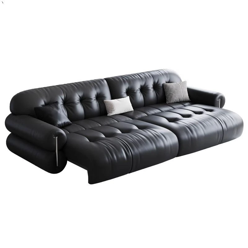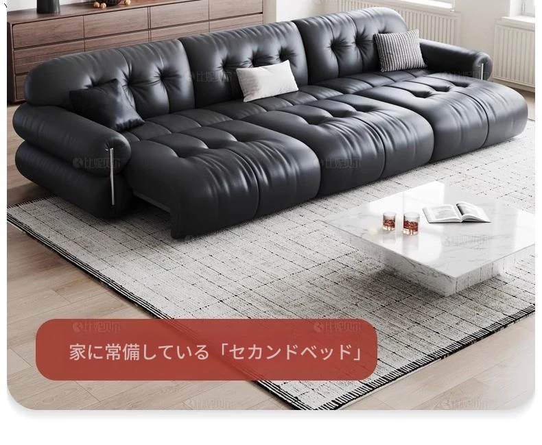 黒糖雲朵電動伸縮機能ソファ|ブラック本革製|3人掛け|電動調節可能|壁に寄せられる省スペース設計で、快適なリラックスタイムをお楽しみください!