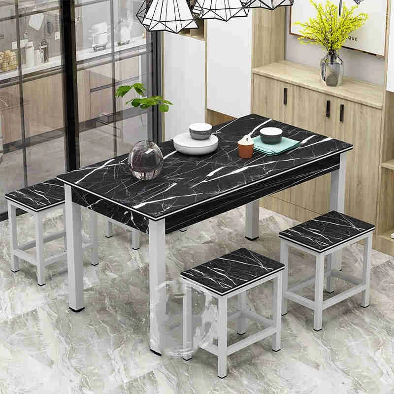 120*60に4つの椅子付き(ブラックストーン柄+ホワイトフレーム)