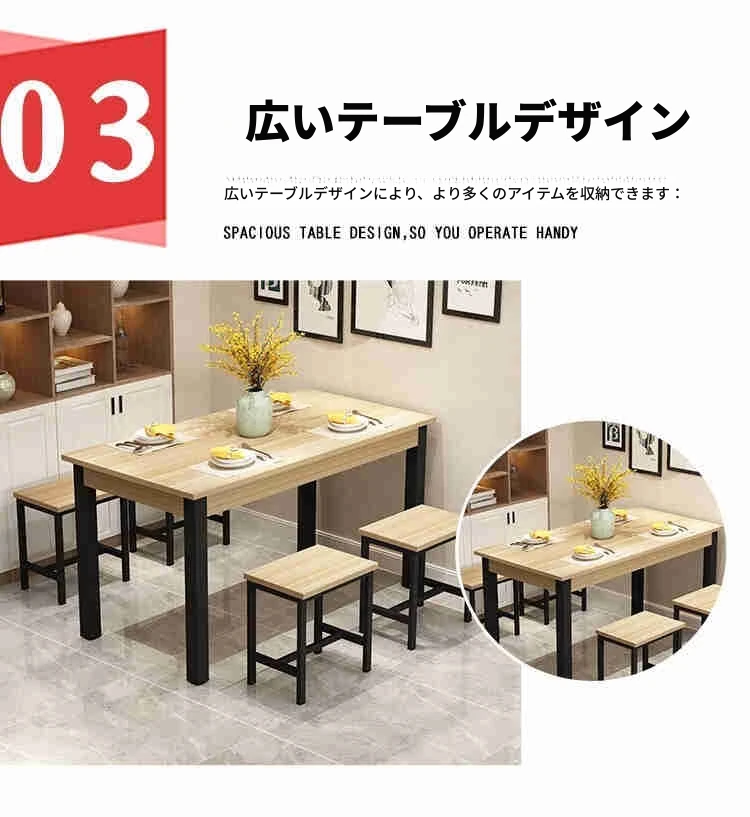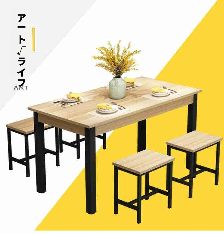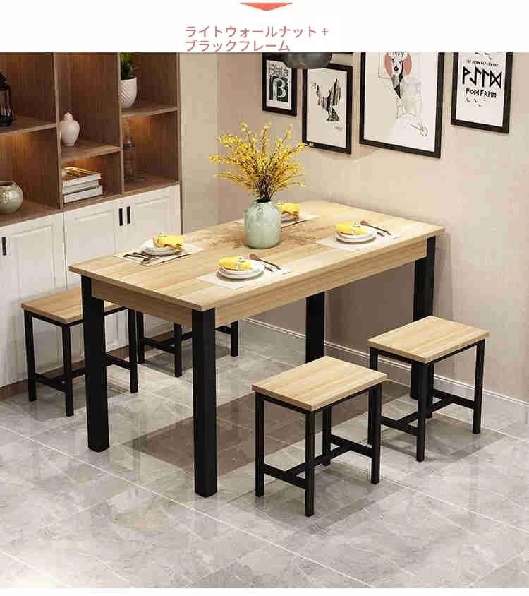 120*60に4つの椅子付き(ユズ材色+ブラックフレーム)