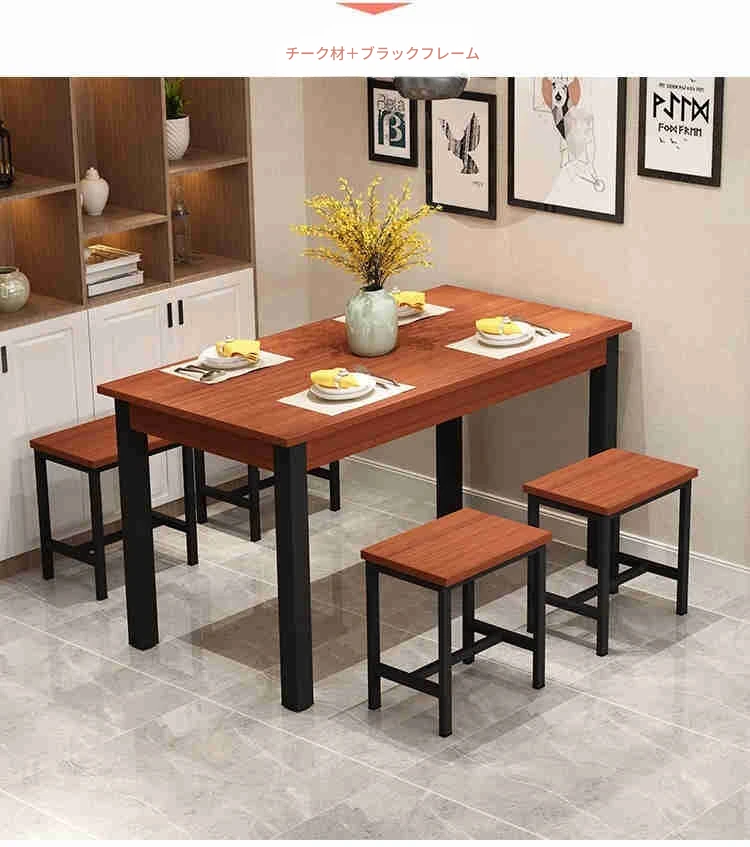 120*60に4つの椅子付き(ジェントルマンブラック+ブラックフレーム)