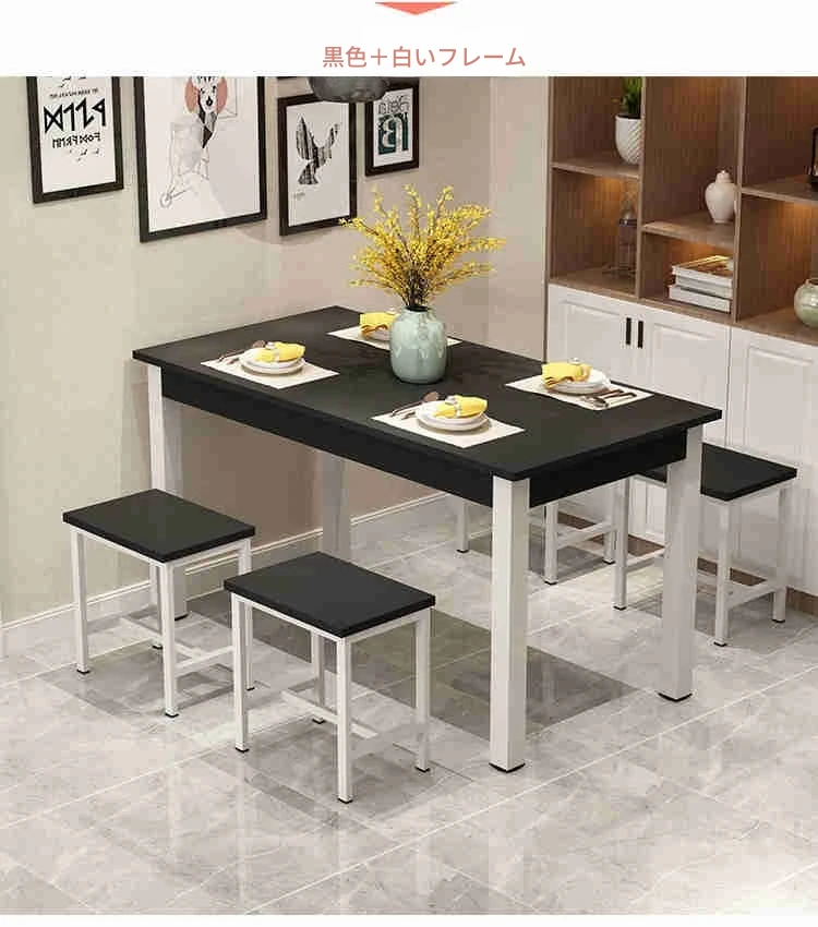 120*60に4つの椅子付き(ジェントルマンブラック+ホワイトフレーム)