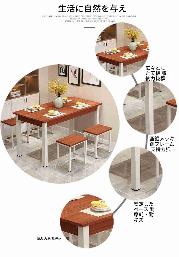 120*60に4つの椅子付き(ユズ材色+ホワイトフレーム)