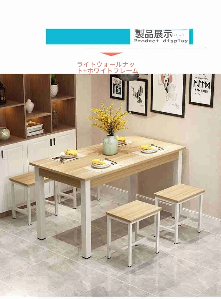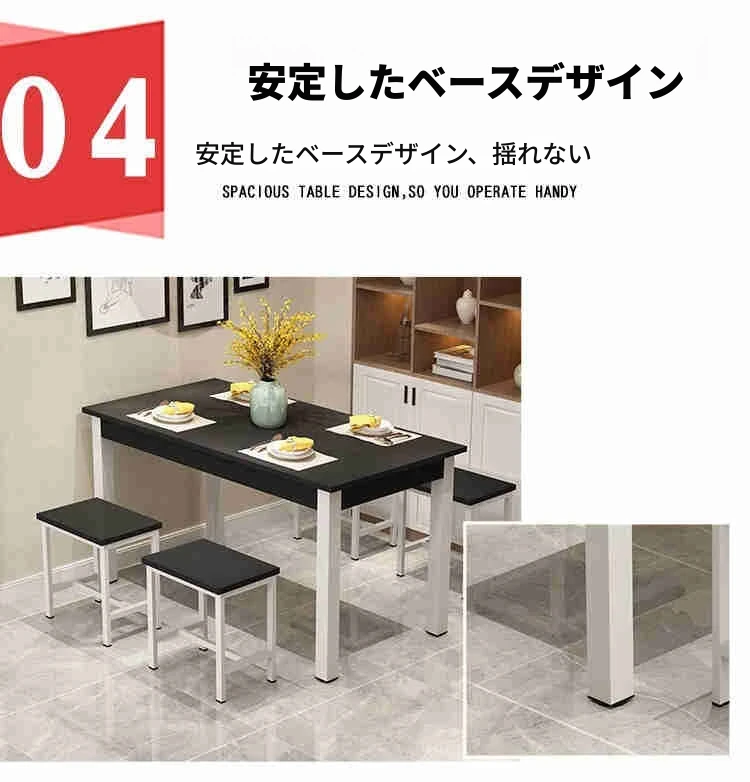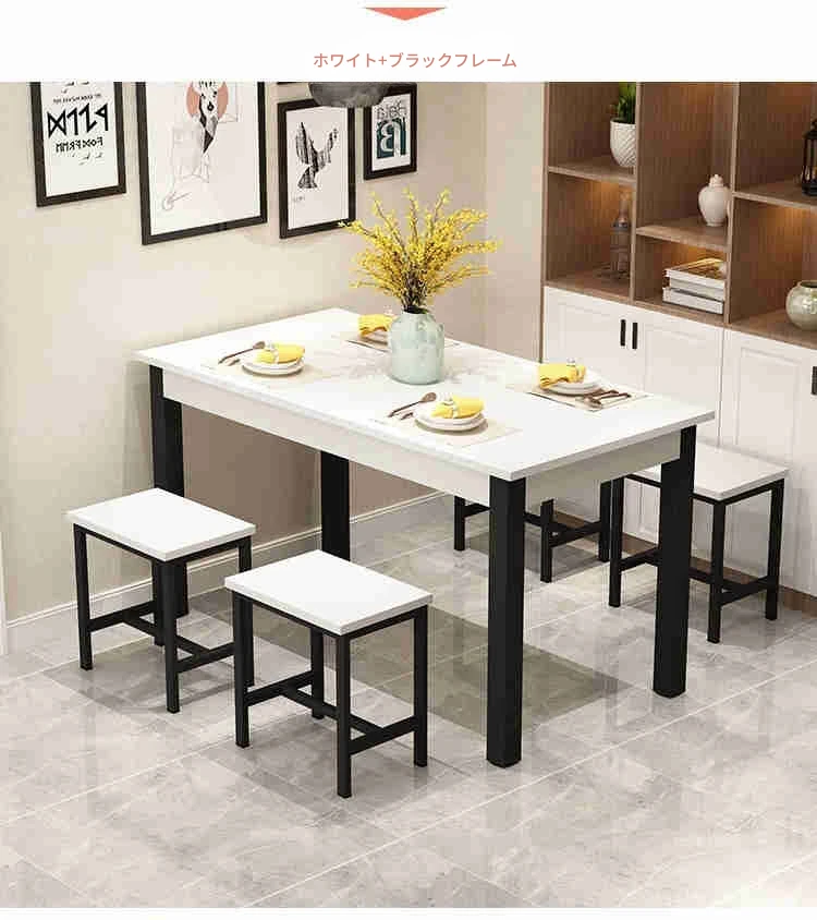 120*60に4つの椅子付き(レディホワイト+ブラックフレーム)