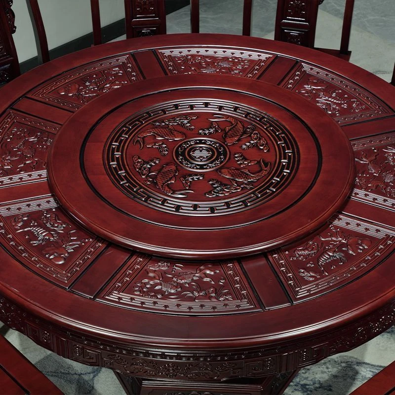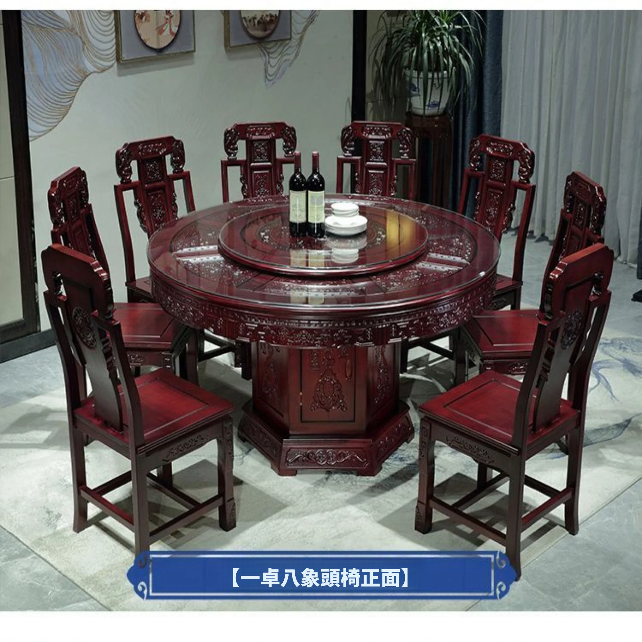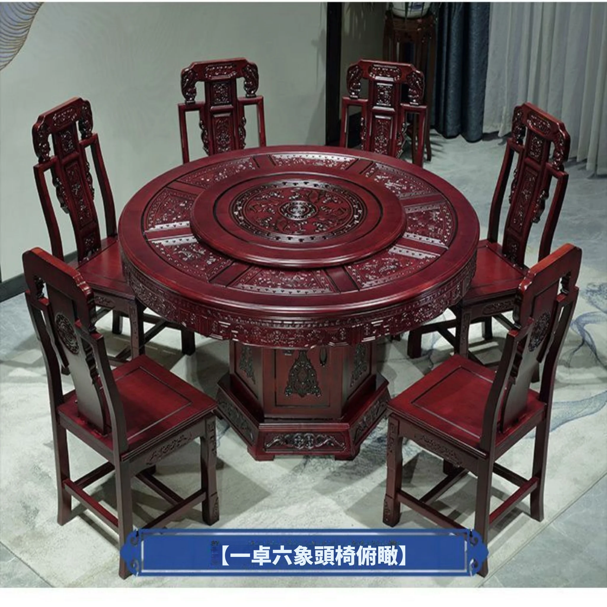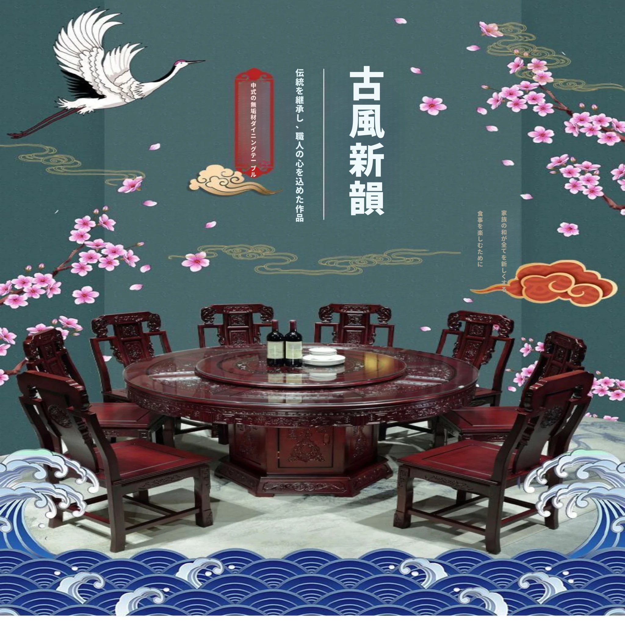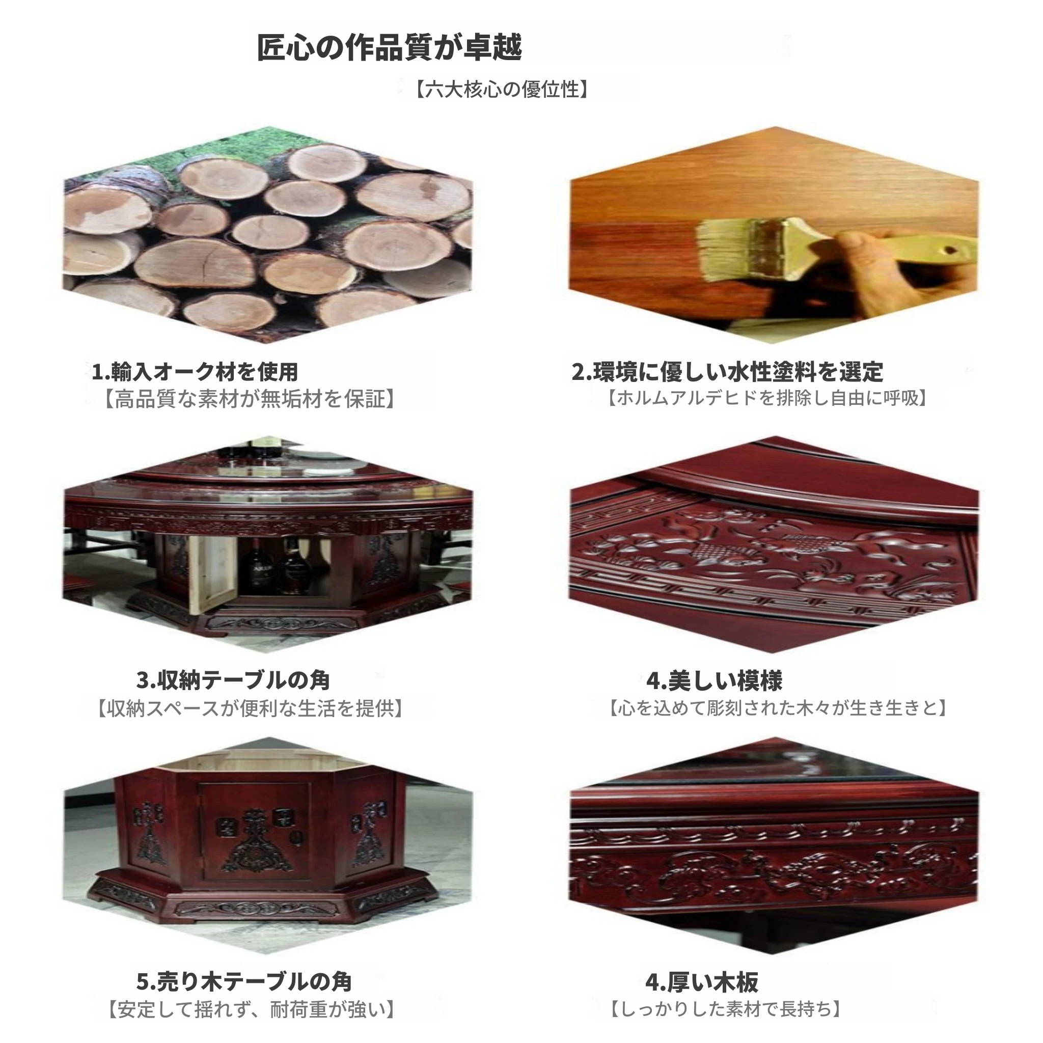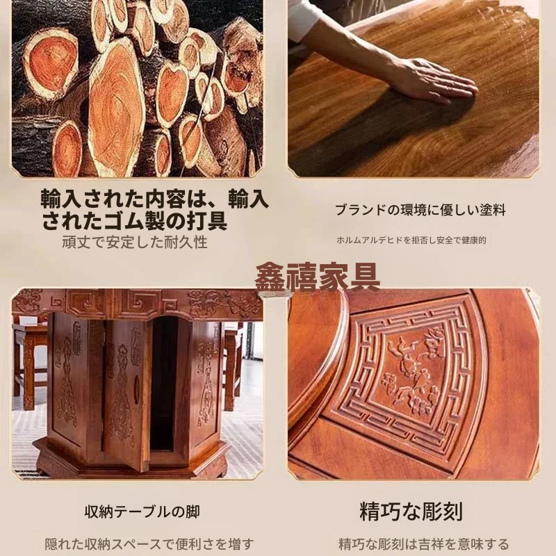 鑫禧オーク風アンティーク回転テーブル - 中華クラシックスタイルの電磁調理器付きダイニングテーブル、家庭用に最適!優雅なデザインで、食事のひと時を特別に演出します。