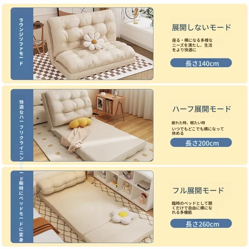 リラックスできる折りたたみソファベッド、寝転びながらくつろげるタタミスタイル!バルコニーや窓際にぴったりのコンパクトサロンチェア。快適なひとときをお楽しみください!