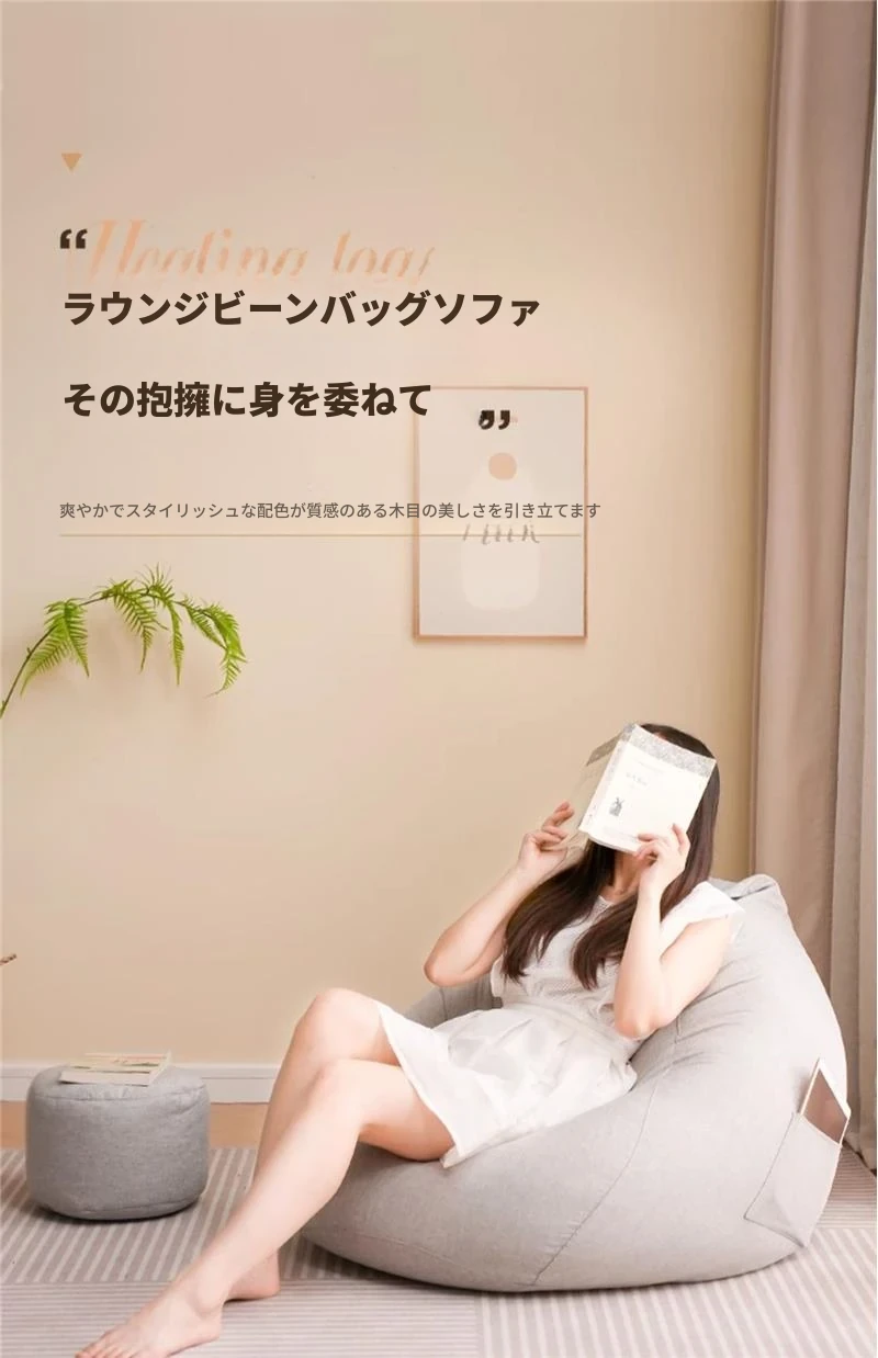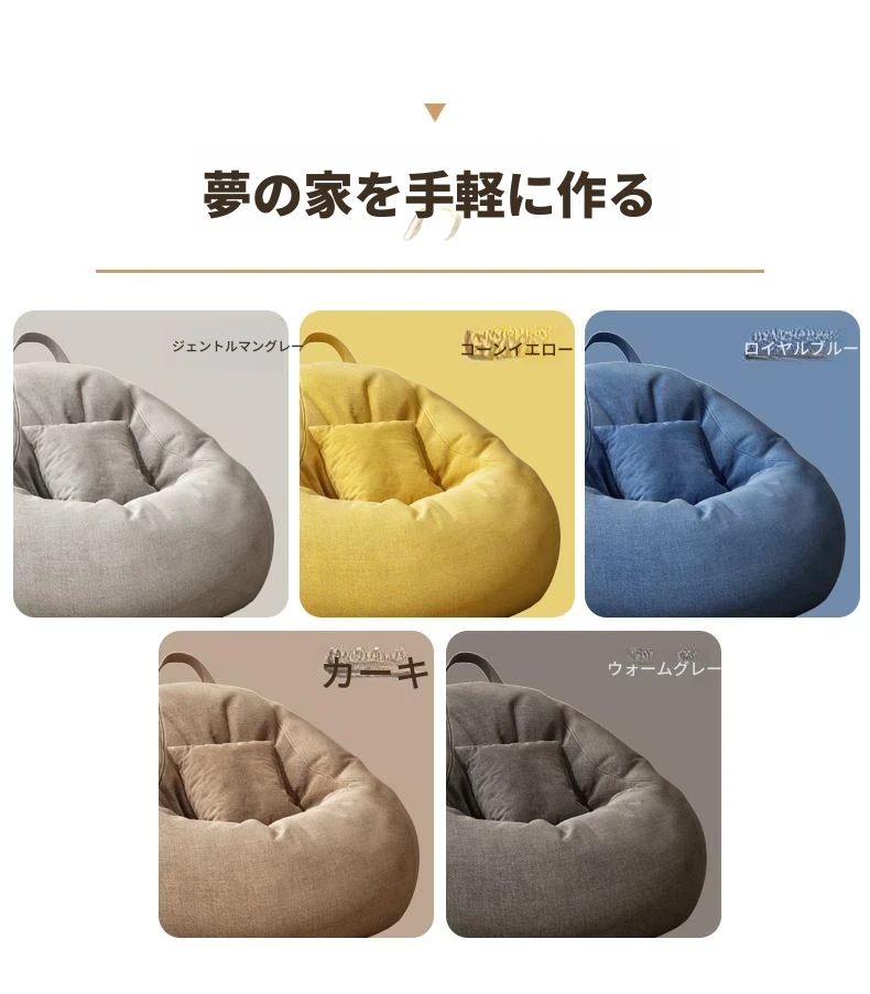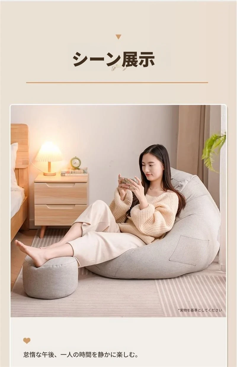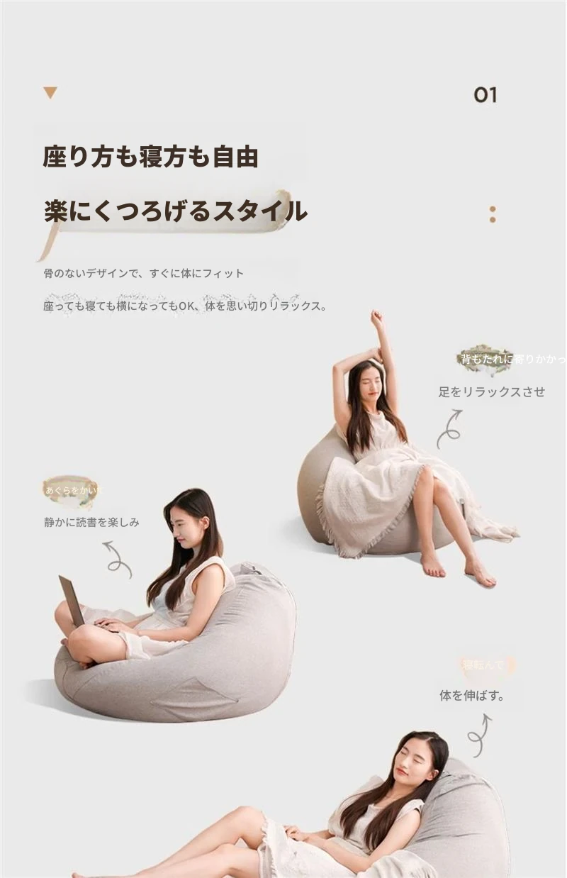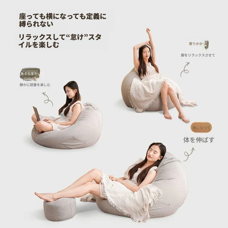 リラックスクッションソファ|豆袋タイプ|寝室・タタミ・バルコニー・出窓に最適|快適な座り心地|長時間の使用にもぴったり|小スペースでも使える!寝転びもできるマルチソファ!