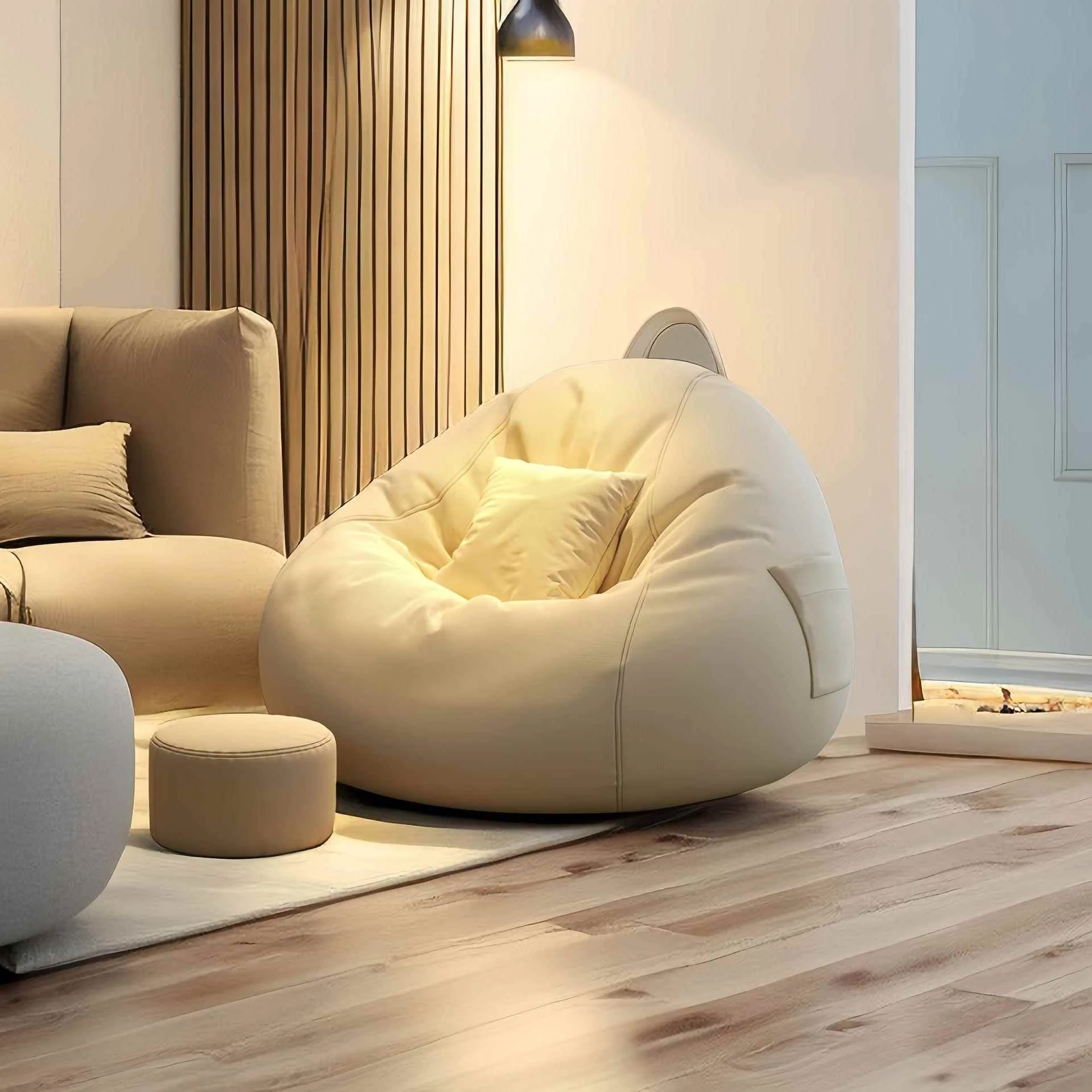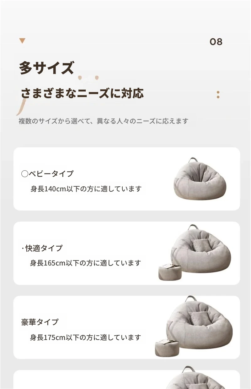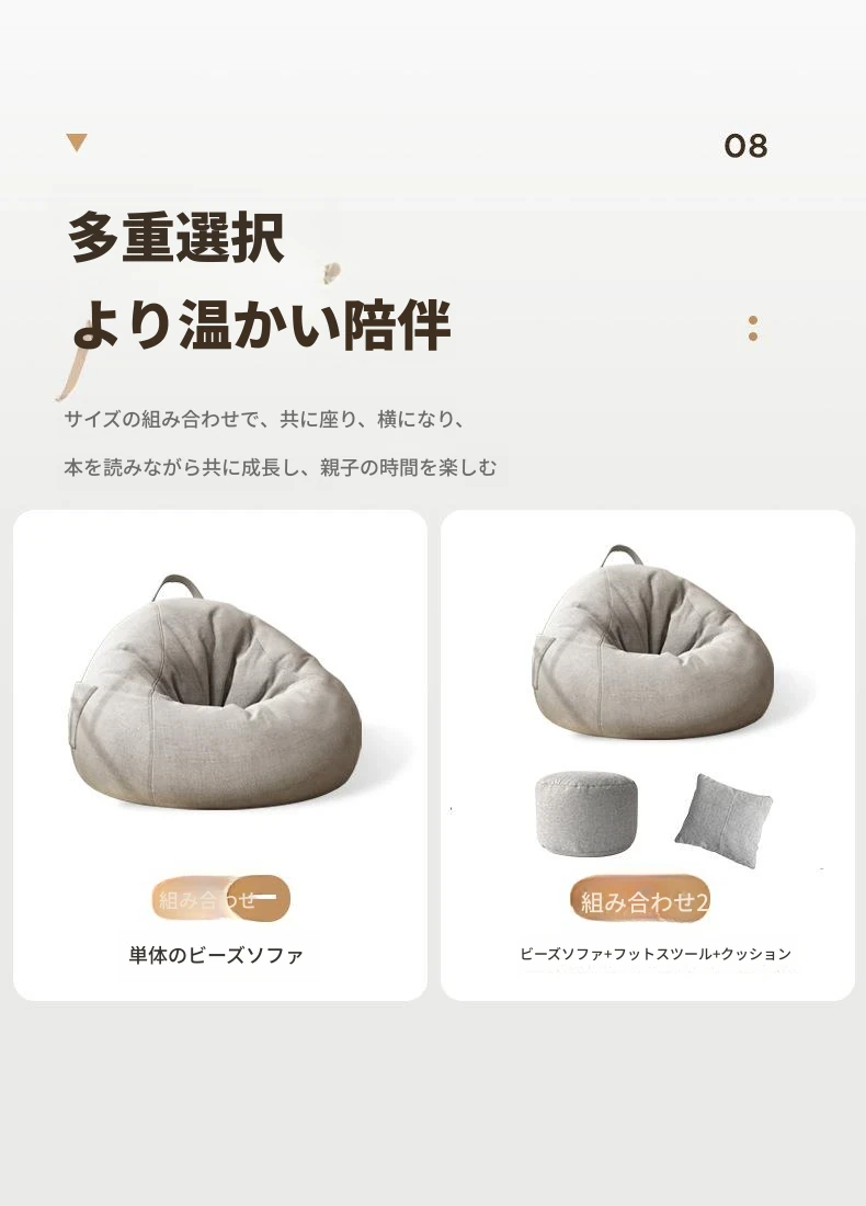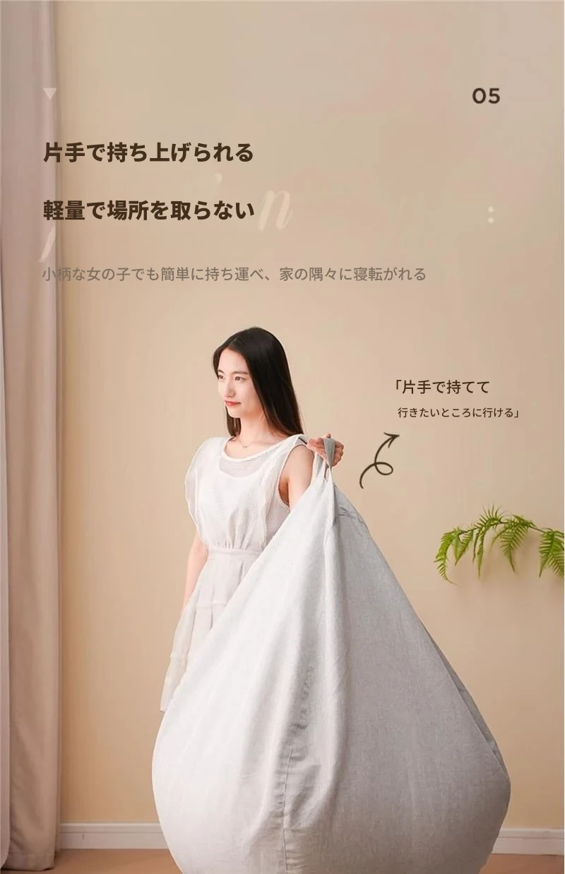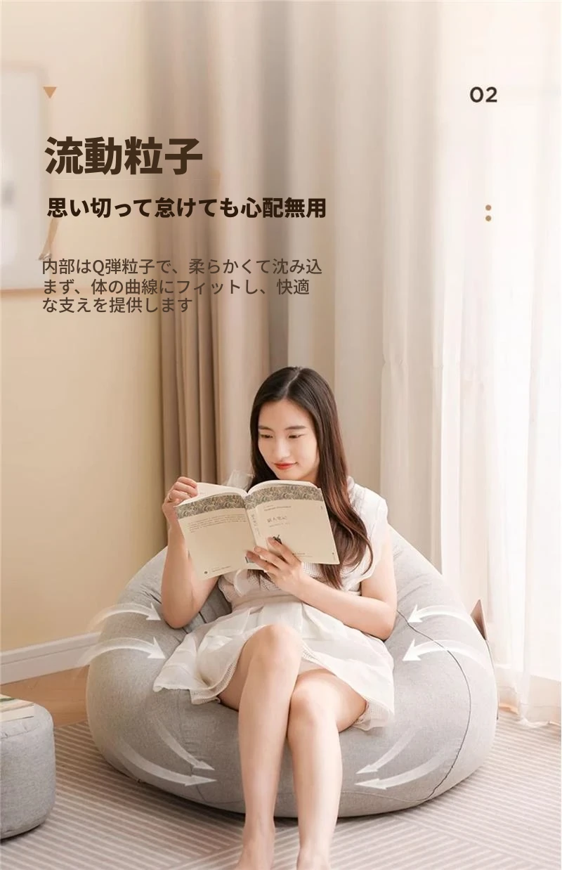 リラックスクッションソファ|豆袋タイプ|寝室・タタミ・バルコニー・出窓に最適|快適な座り心地|長時間の使用にもぴったり|小スペースでも使える!寝転びもできるマルチソファ!