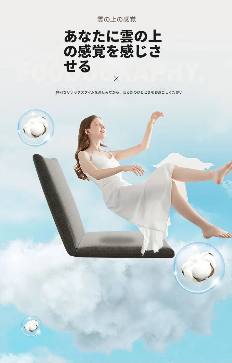 リラックスソファ・畳スタイル座椅子|地面に置いても快適!横になれる・寝れる!窓際やベッドサイドに最適な背もたれ付き|折りたたみ可能で収納も簡単!あなたのくつろぎ空間を演出します。