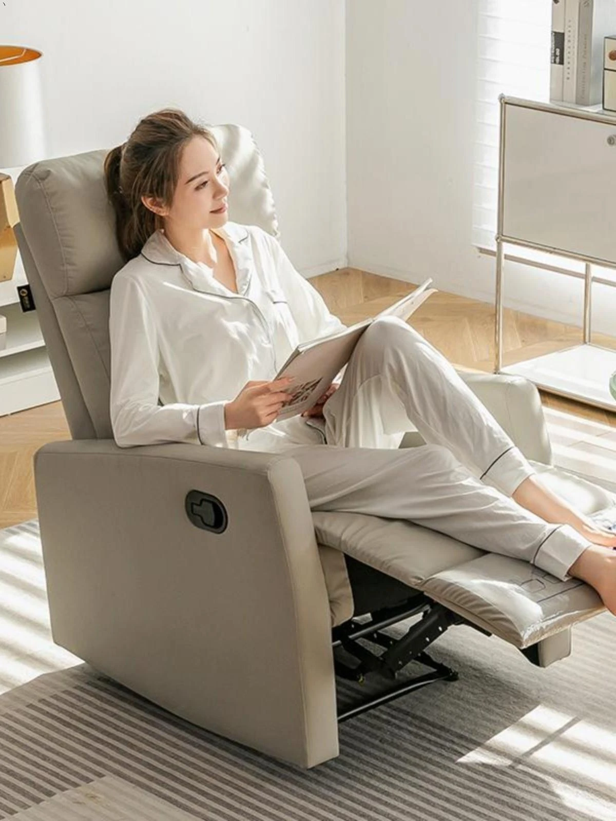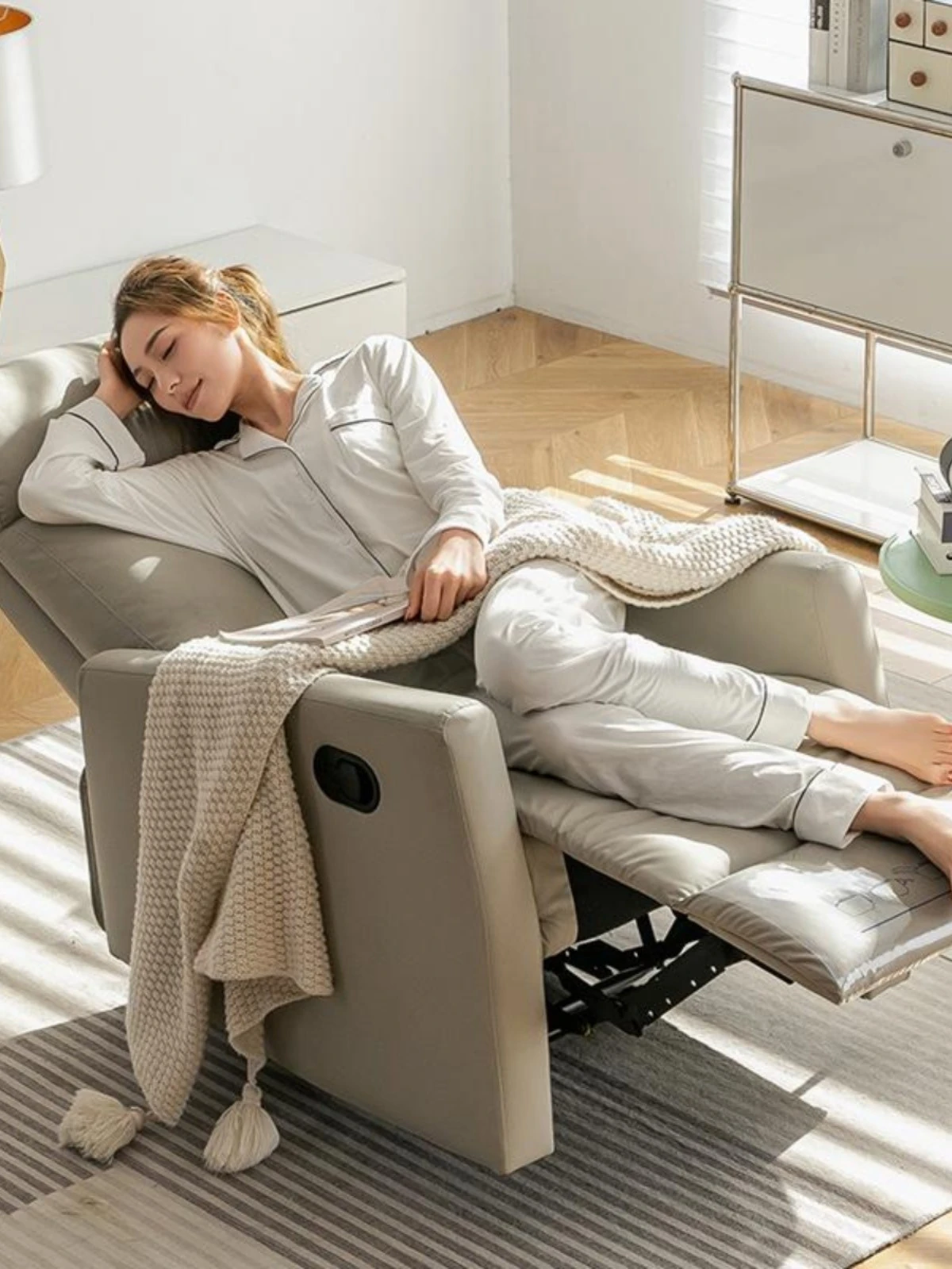 一人用エレガントな宇宙ソファー - 小型スペースに最適!リラックスできる電動リクライニング機能搭載、映画鑑賞やお昼寝、美容ネイルにもぴったりな快適な椅子です。あなたの特別な時間を演出します!