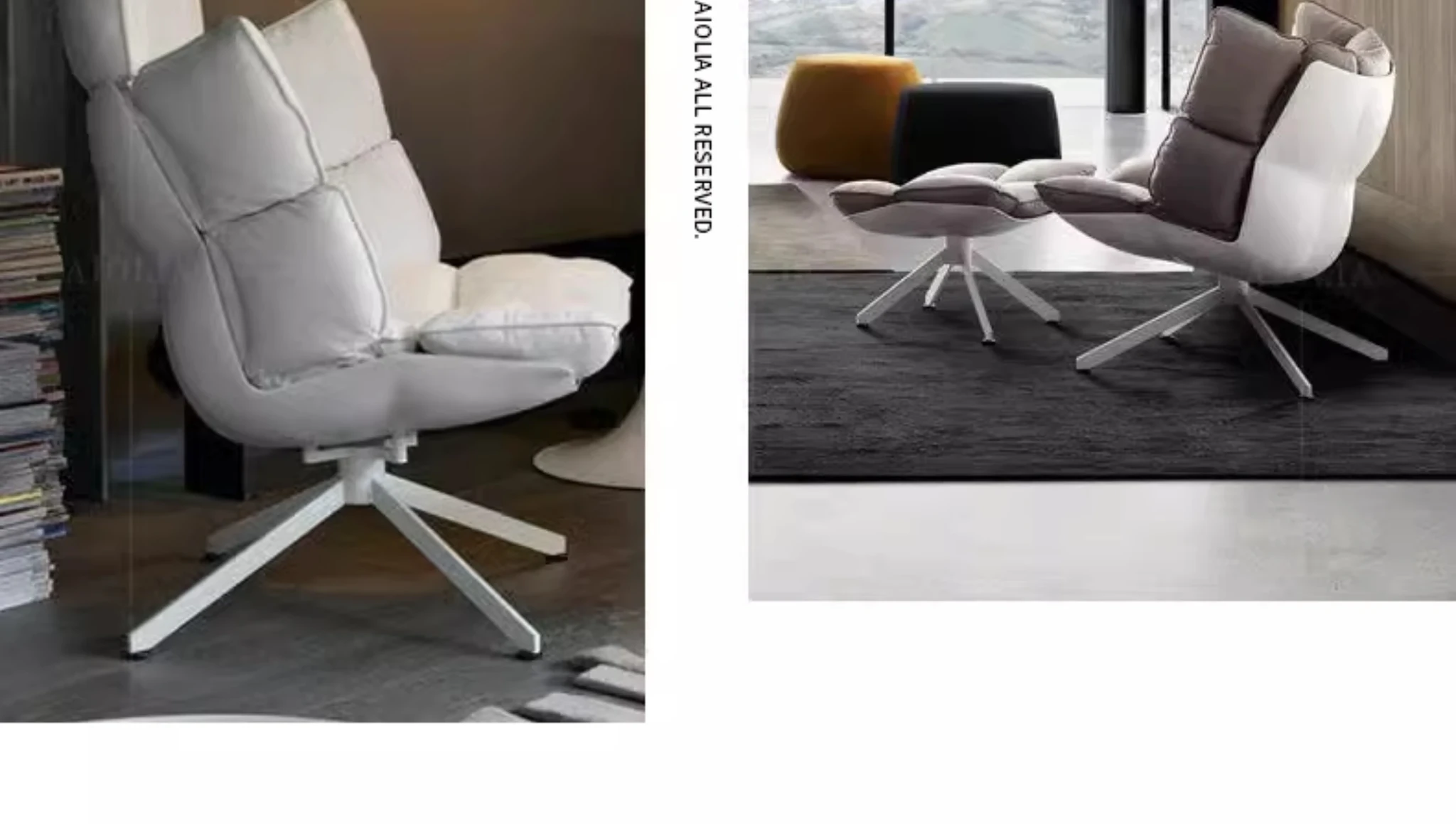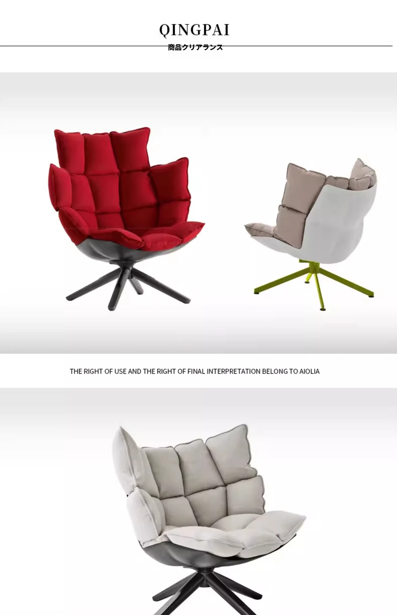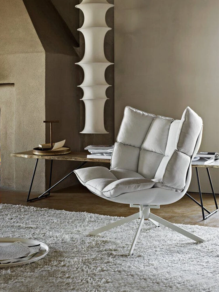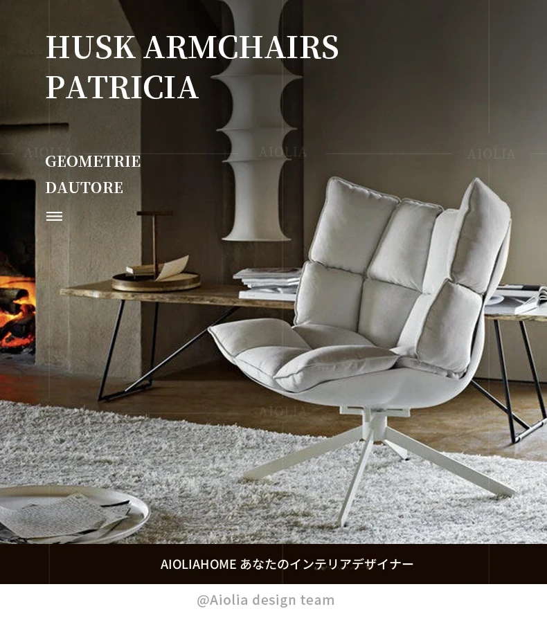 デザイナー一人掛けソファ|人気のバルコニー用ベージュの筋肉ライスシェル|民宿の侘寂風リビング休憩チェアで、心地よいひとときをお楽しみください!