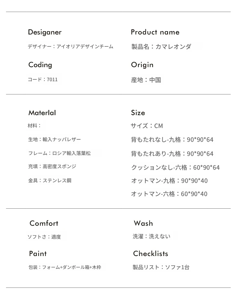 【背もたれなし9格】イタリア輸入ナッパ牛革/90cm