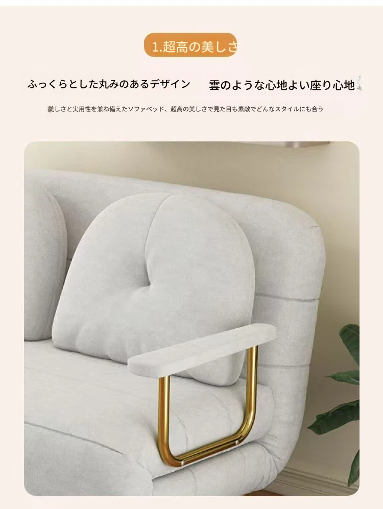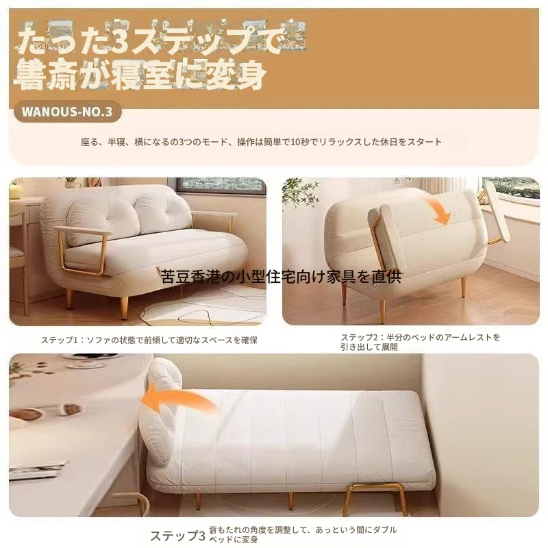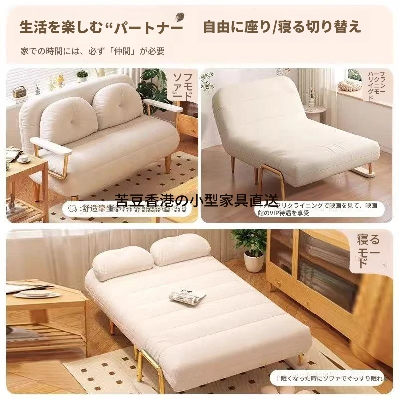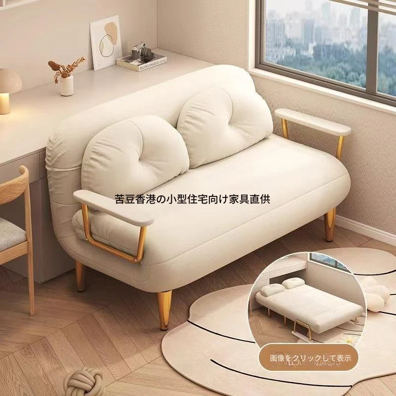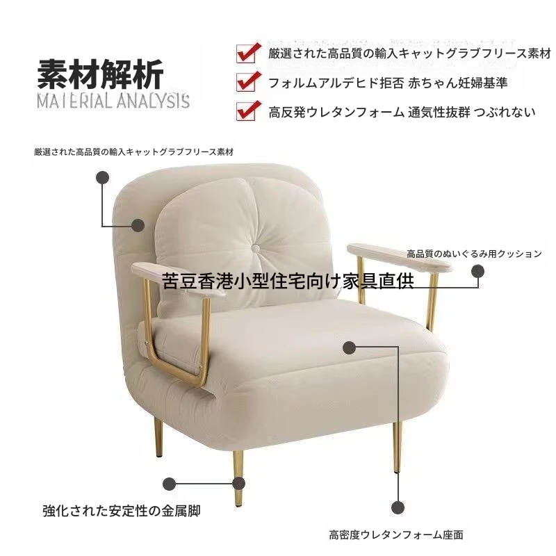 香港・マカオ直供!折りたたみ式ソファベッド - クリーム色の一人用、狭いスペースにぴったりな多機能ソファ!バルコニーやリビングに最適です!