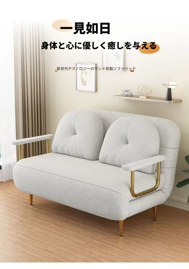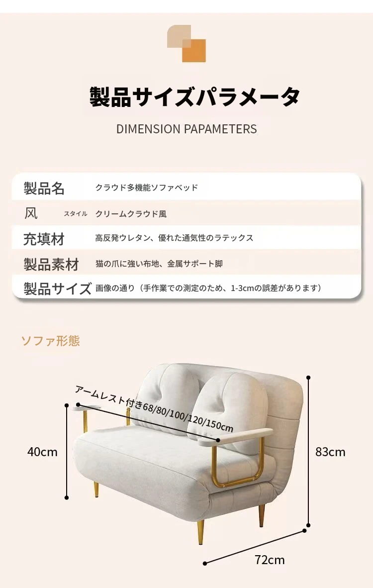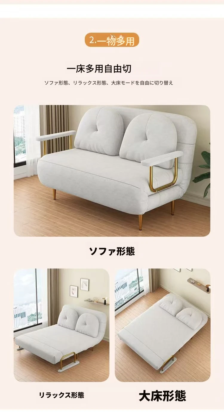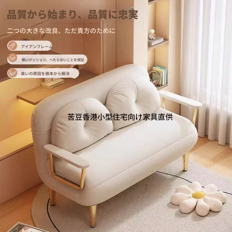 香港・マカオ直供!折りたたみ式ソファベッド - クリーム色の一人用、狭いスペースにぴったりな多機能ソファ!バルコニーやリビングに最適です!