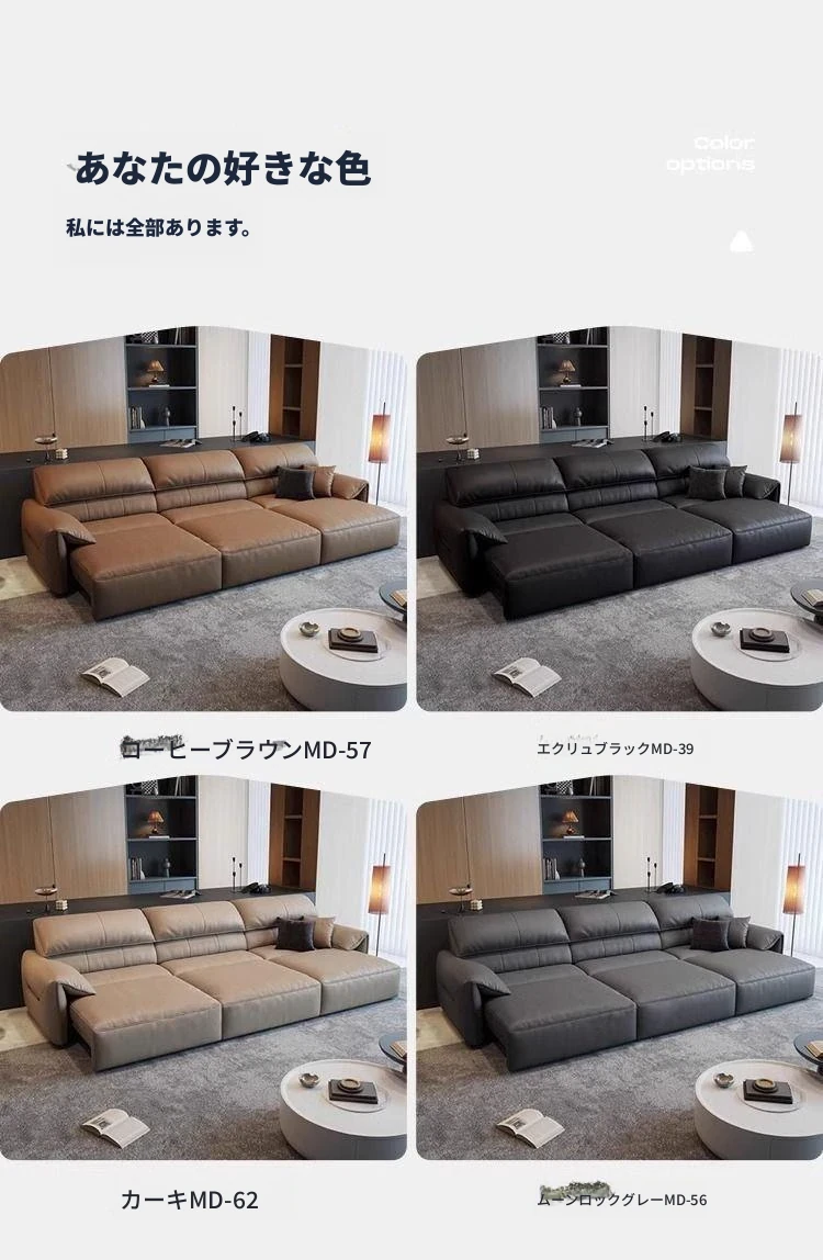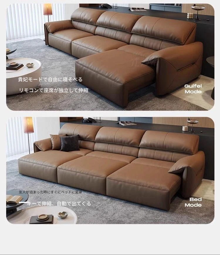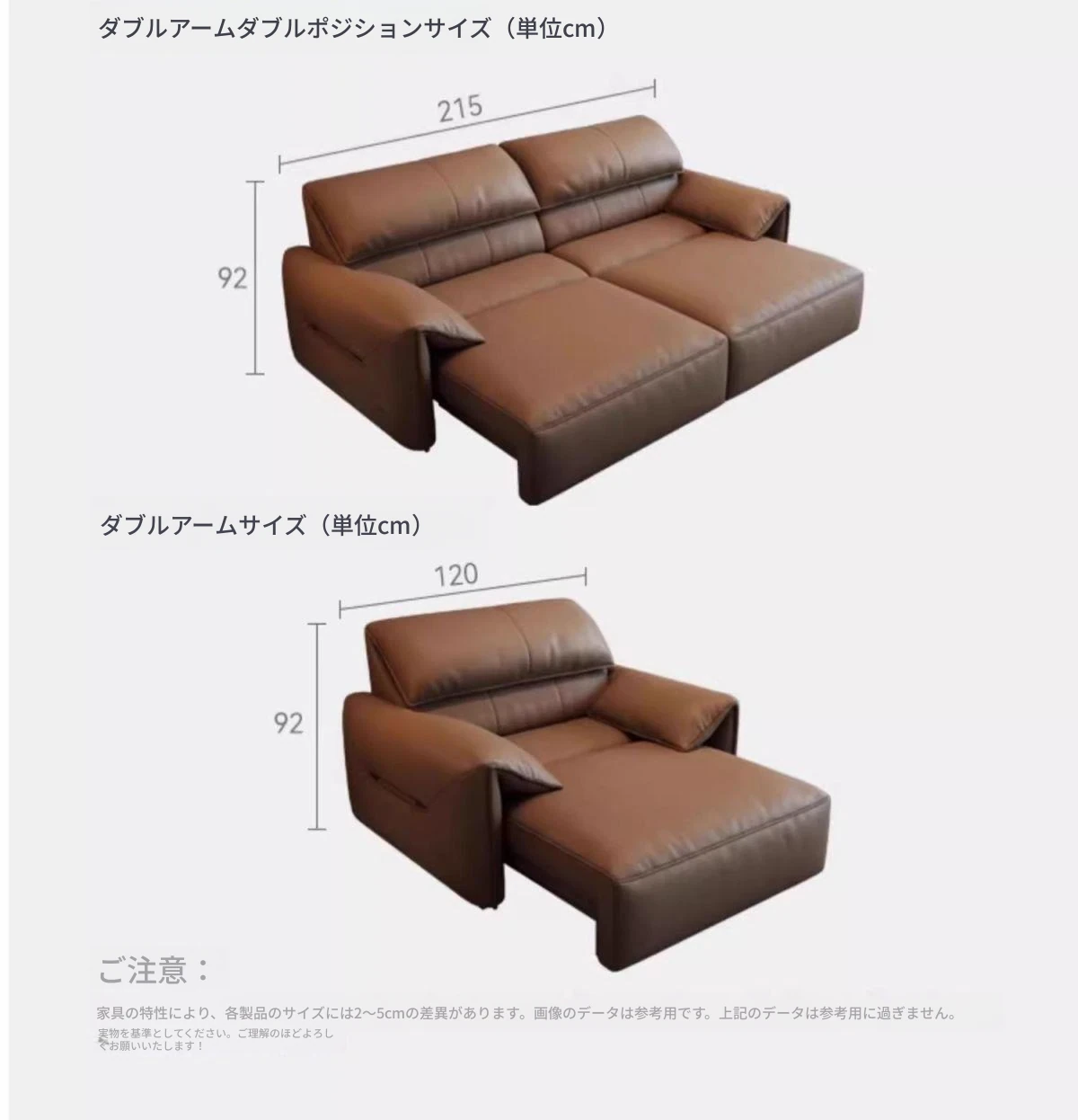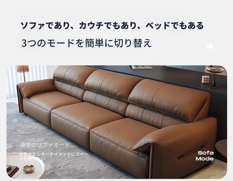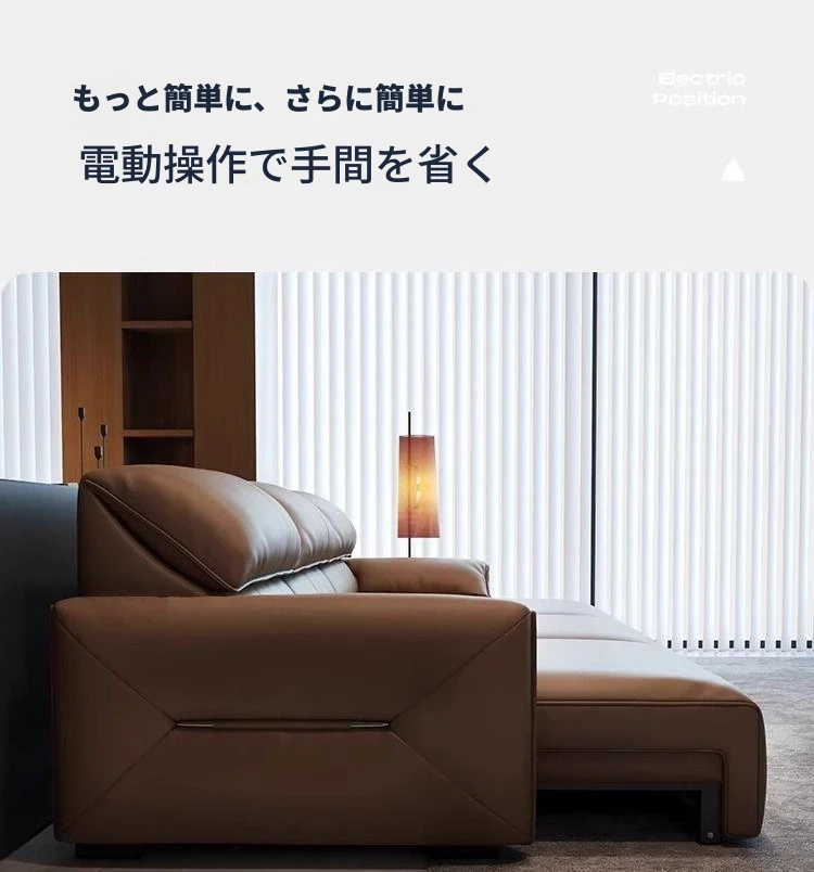 電動機能付き本革ソファー|シンプルでスタイリッシュなリビングに最適!イタリアンミニマルデザインの象の耳スタイル|コンパクトなスペースにもぴったりな伸縮式ソファベッド。快適なひとときをお届けします。