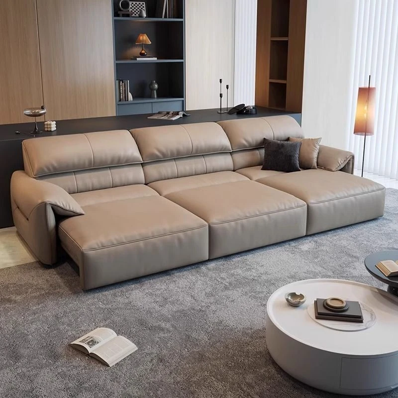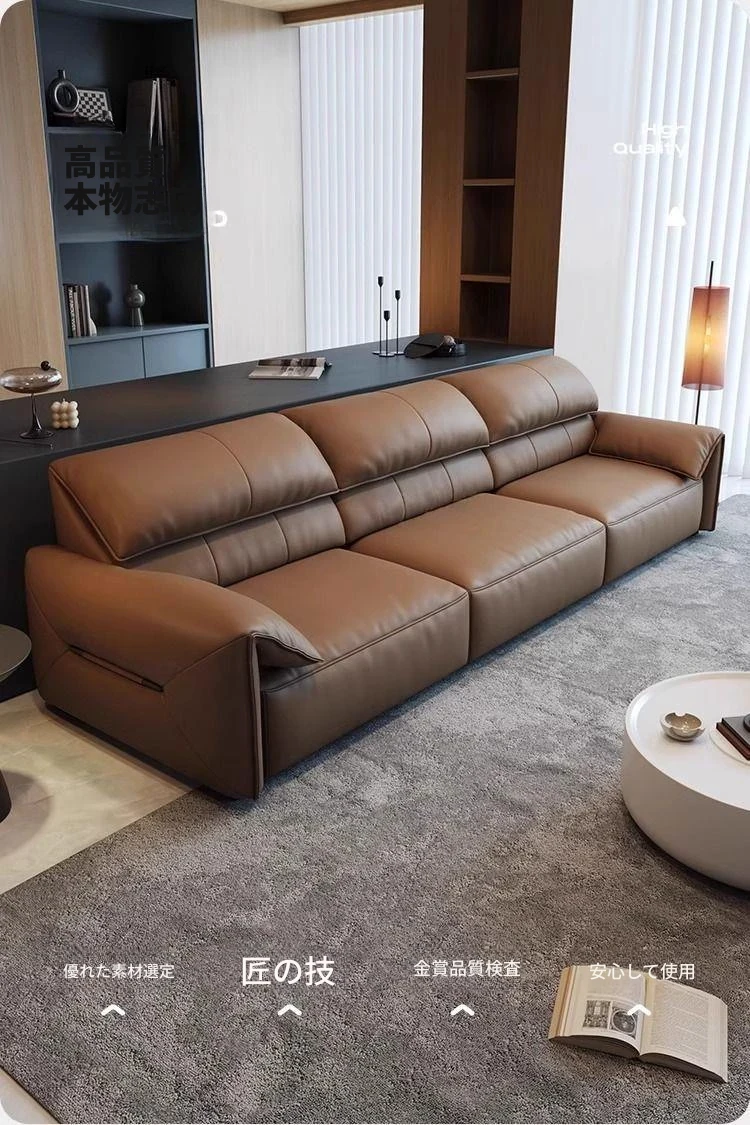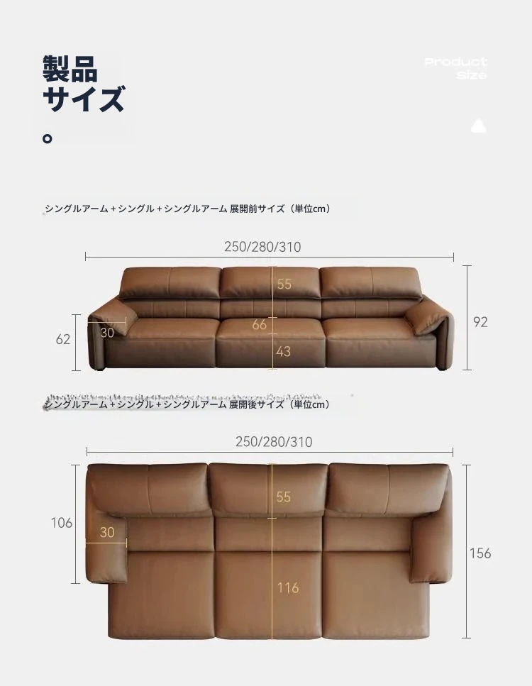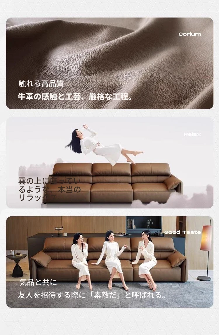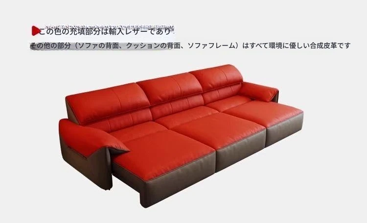 電動機能付き本革ソファー|シンプルでスタイリッシュなリビングに最適!イタリアンミニマルデザインの象の耳スタイル|コンパクトなスペースにもぴったりな伸縮式ソファベッド。快適なひとときをお届けします。