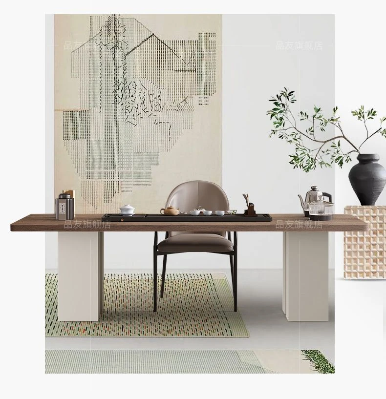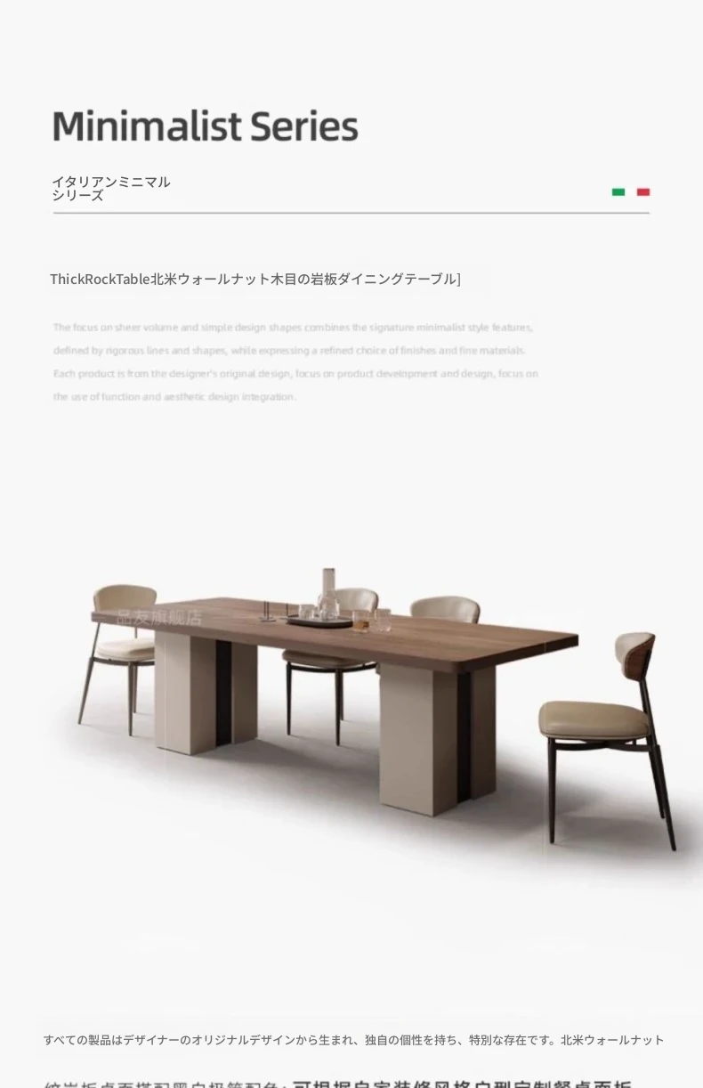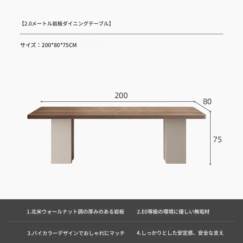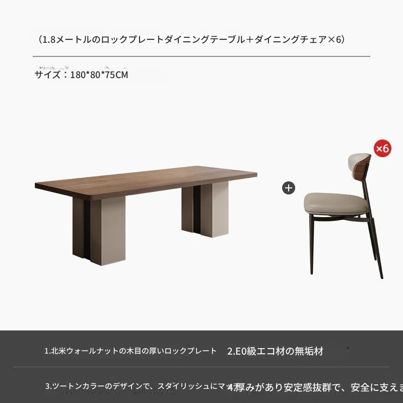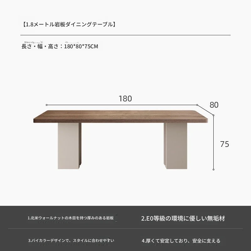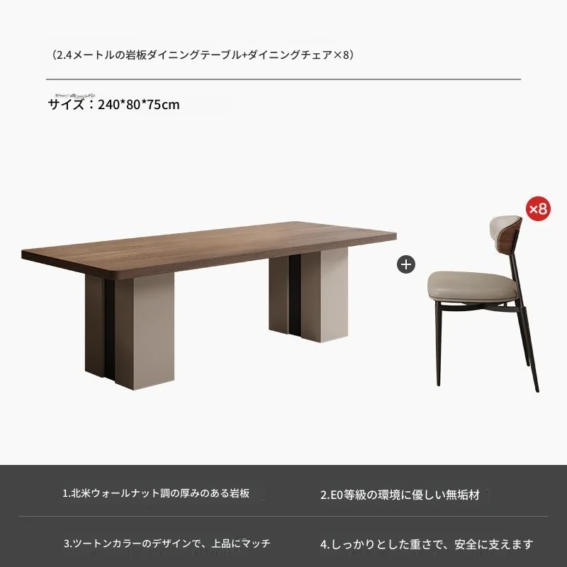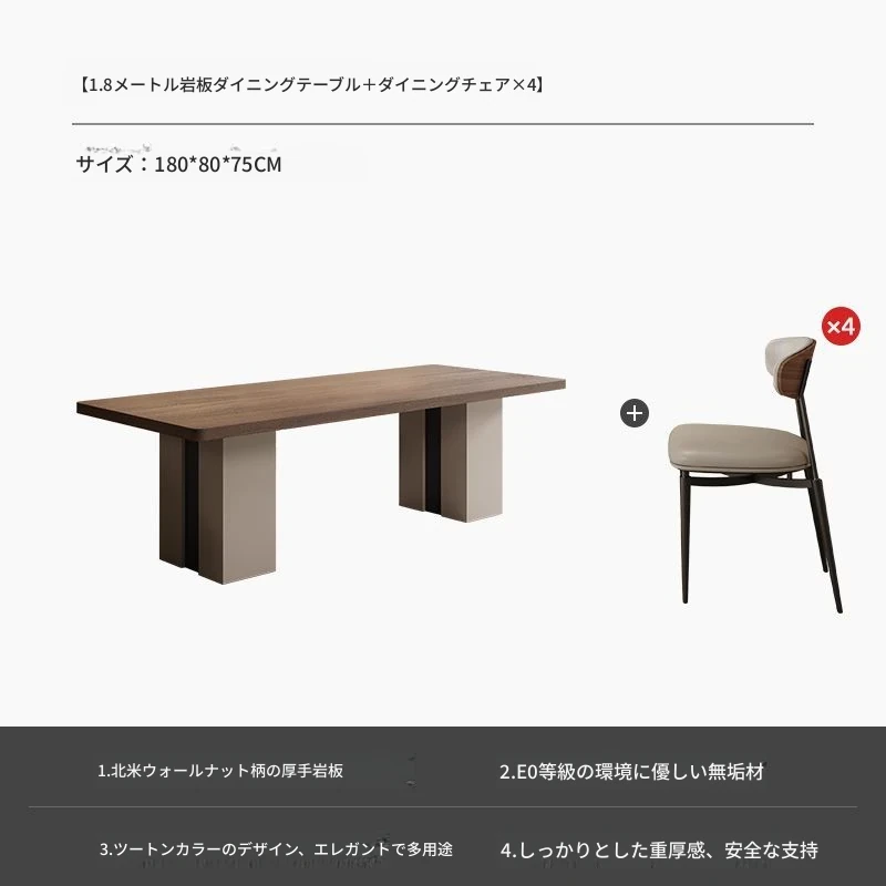 イタリアンミニマリズムのダイニングテーブル&チェアセット|高級ブラックウォールナットの木目とスタイリッシュな岩板デザイン|省スペースに最適な長方形テーブル|おしゃれで快適な食卓を演出します!