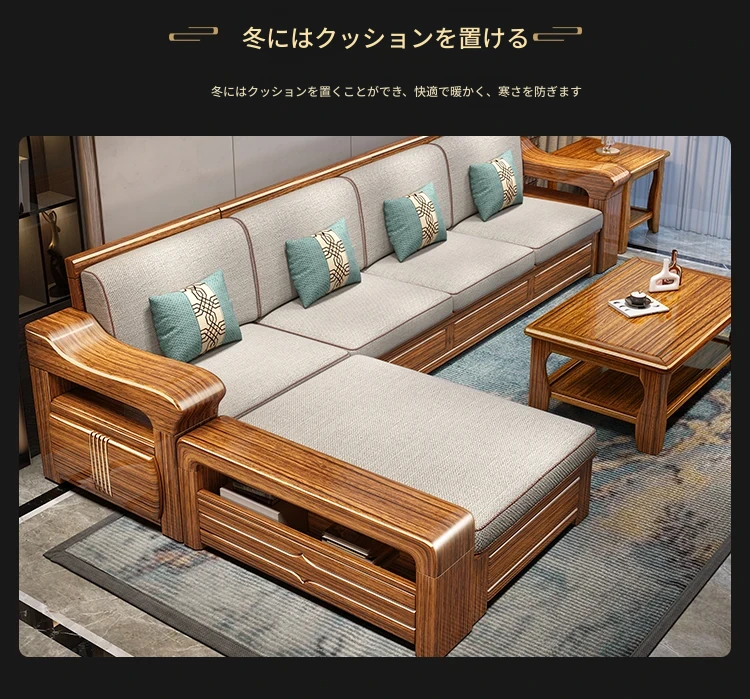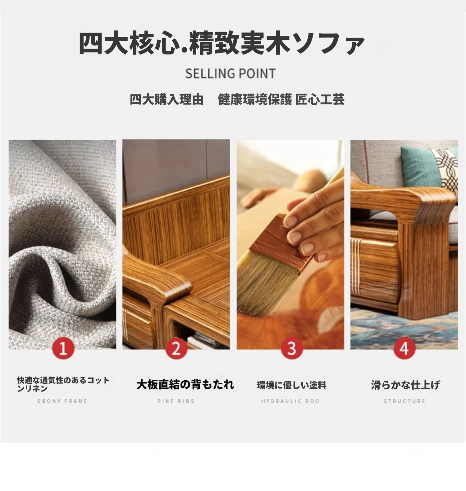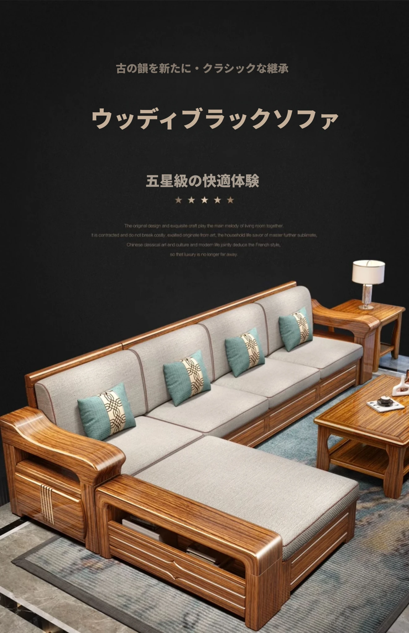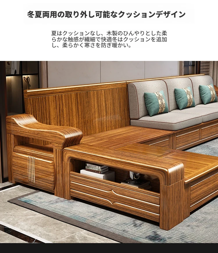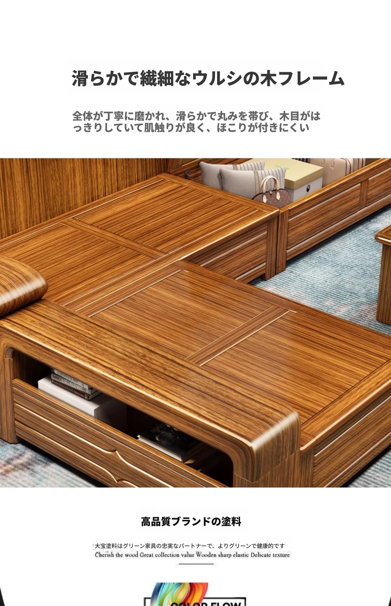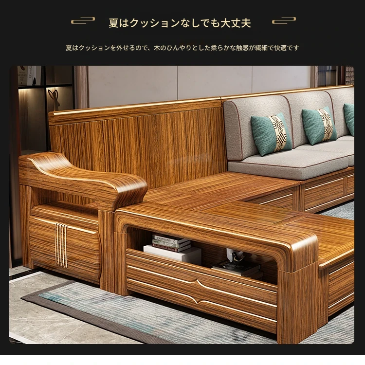 ウコンウッド無垢材ソファ 冬夏兼用 中式リビング全室セット モダンシンプル収納付き全無垢家具 - 高級感あふれるデザインで、快適な空間を演出します!